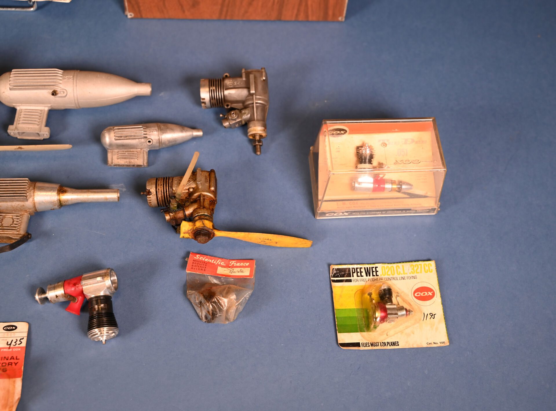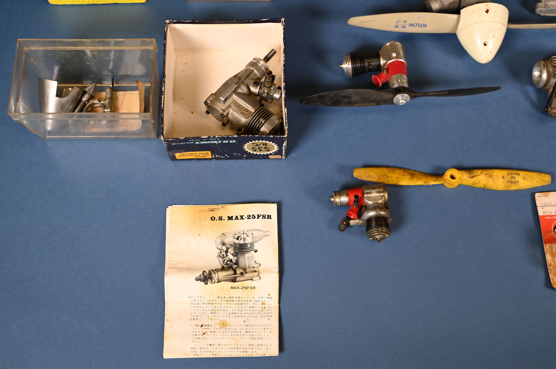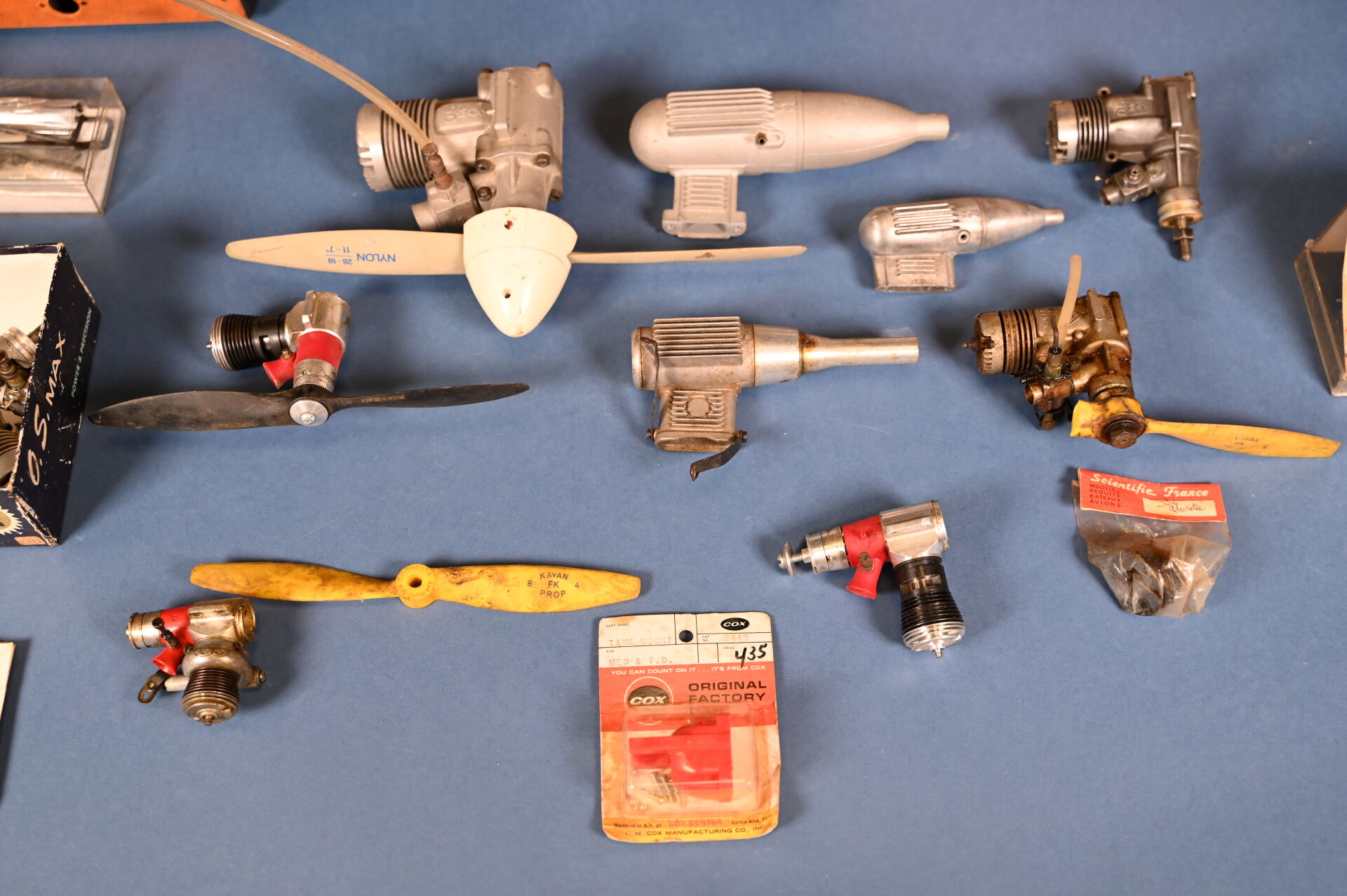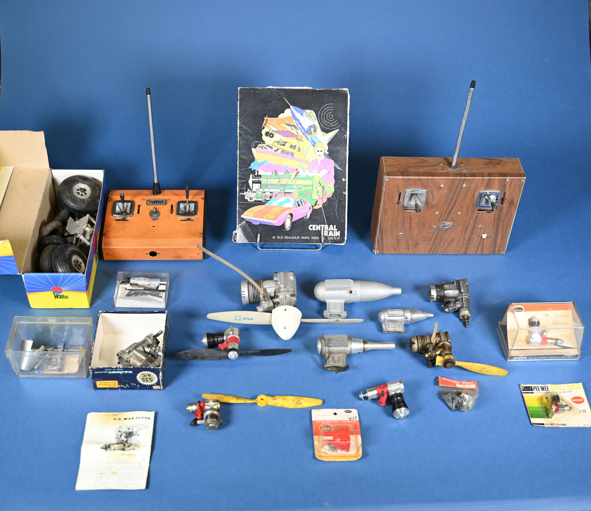 AEROMODELISME. Lot de moteurs d’avions, marques O.S MAX, COX…. On joint des pneus et 2 télécoamndes. 1 carton.