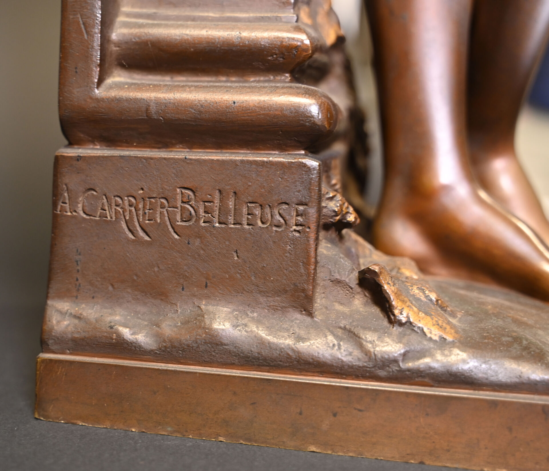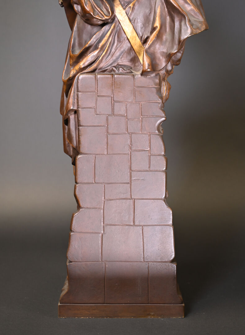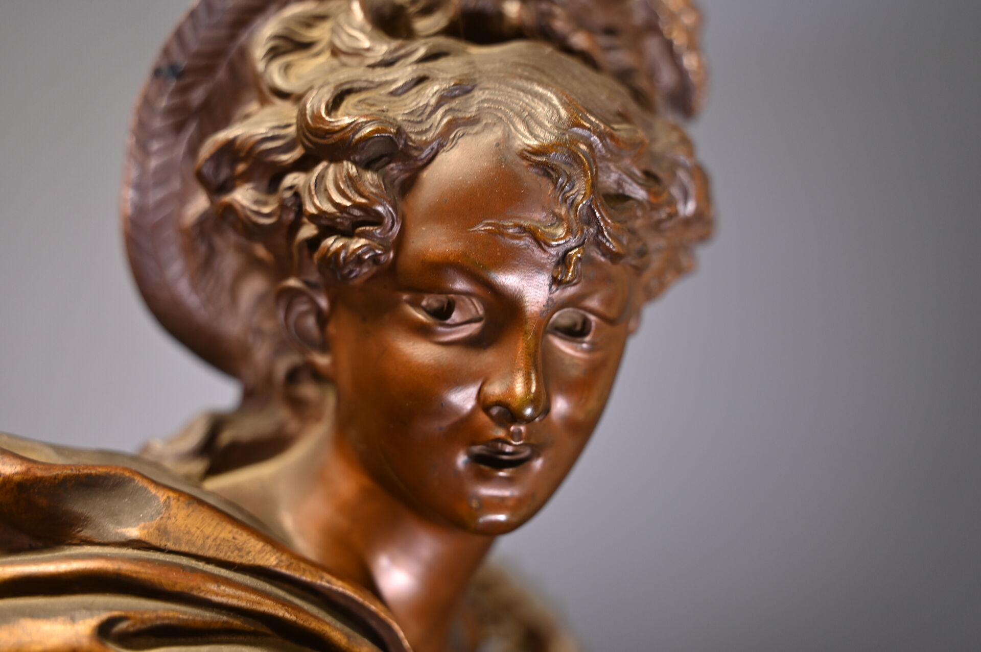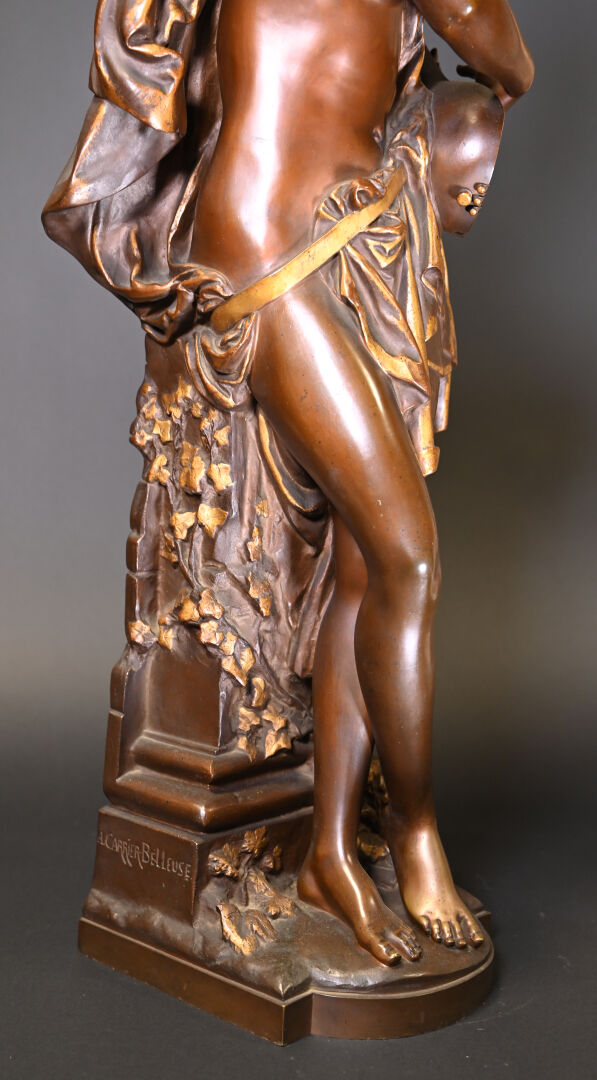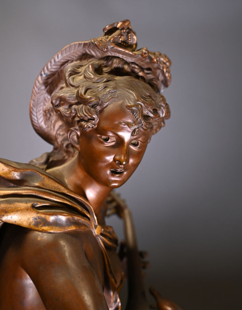 Albert CARRIER BELLEUSE (1824-1887). Joueuse de mandoline en bronze patiné médaille et or. Signé à la base. Haut. : 91,5 cm.