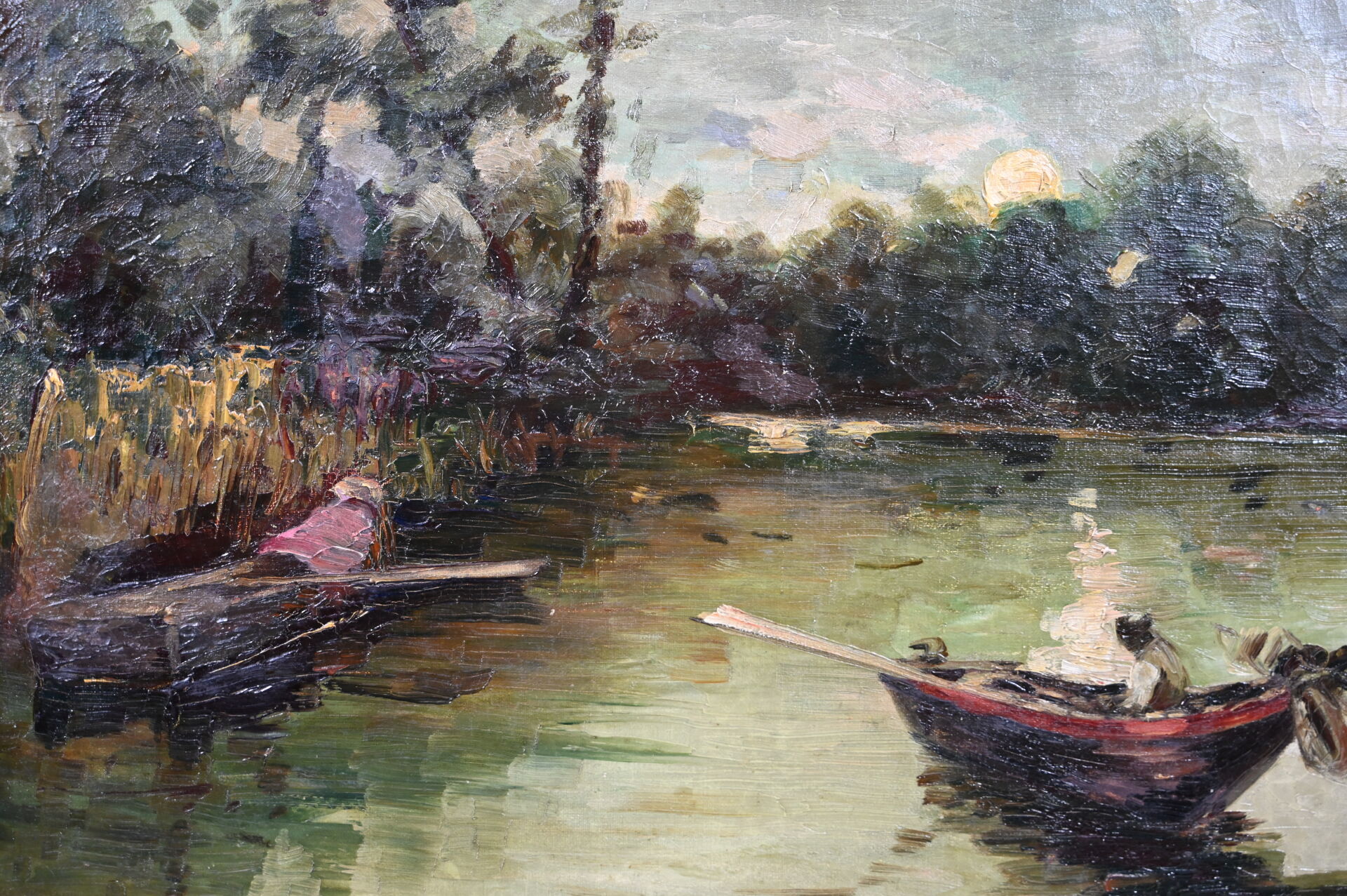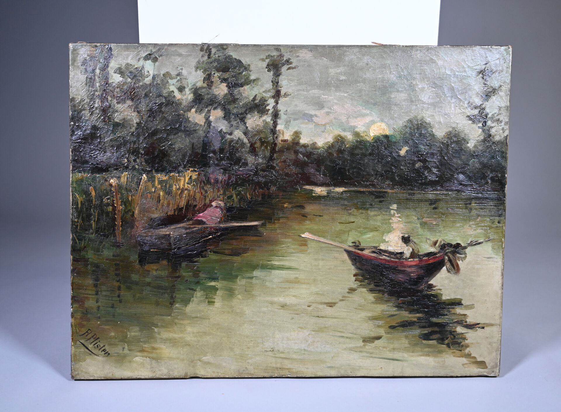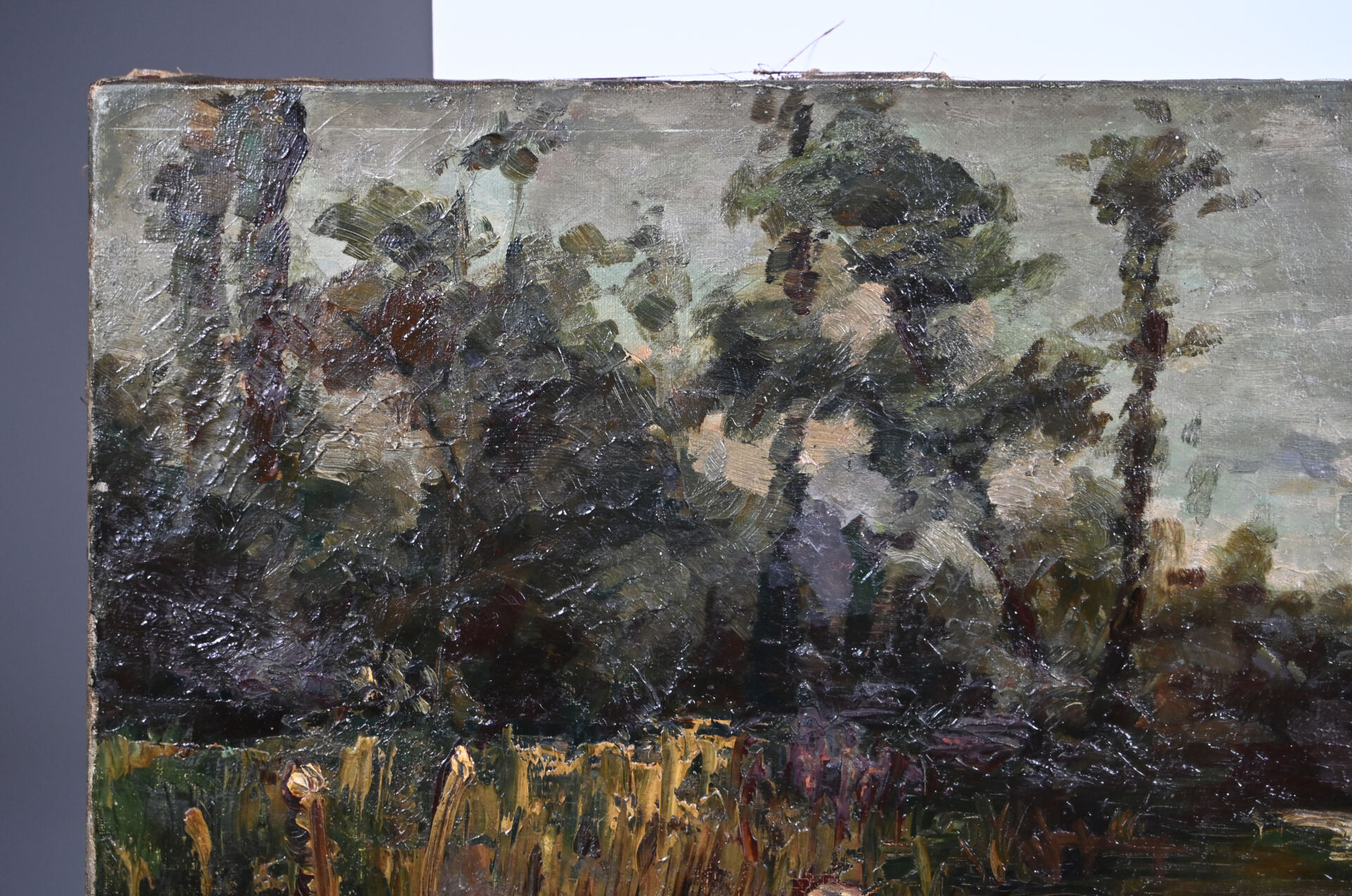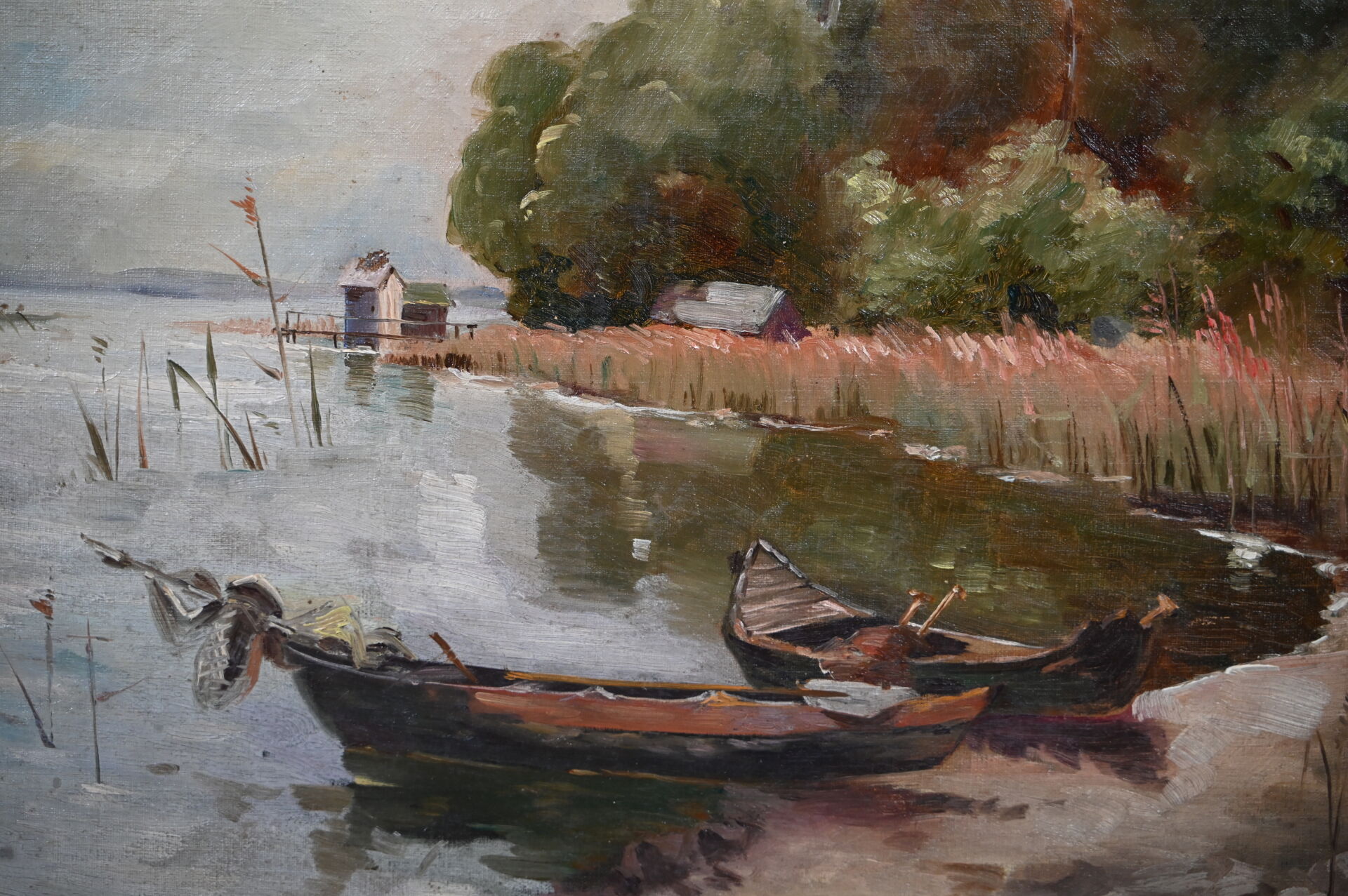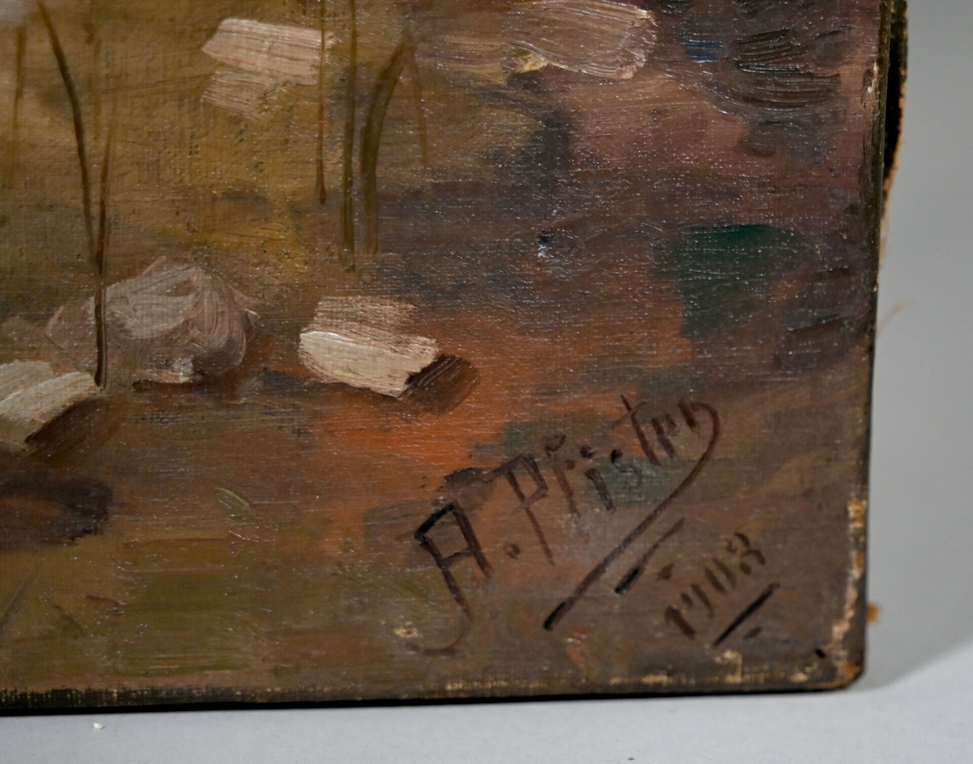 Albert PFISTER (1884-1978). Bords de lac. Deux huiles sur toiles signées et bas à gauche et en bas à droite et une datée 1908 (restaurations). 50,5 x 65 cm.