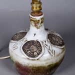 Albert THIRY (1932 – 2009). Pied de lampe en céramique émaillée à décor en brun en creux de végétaux. Signé sous la base. Haut. 21 cm (sans la douille).