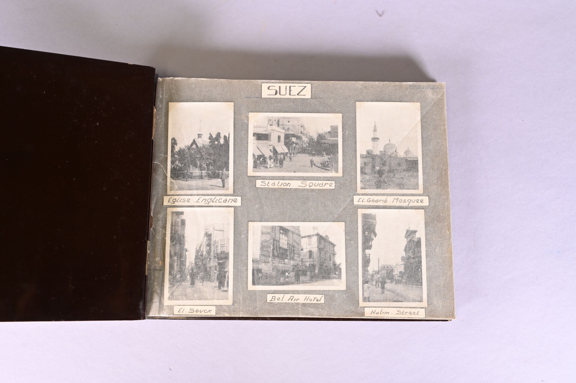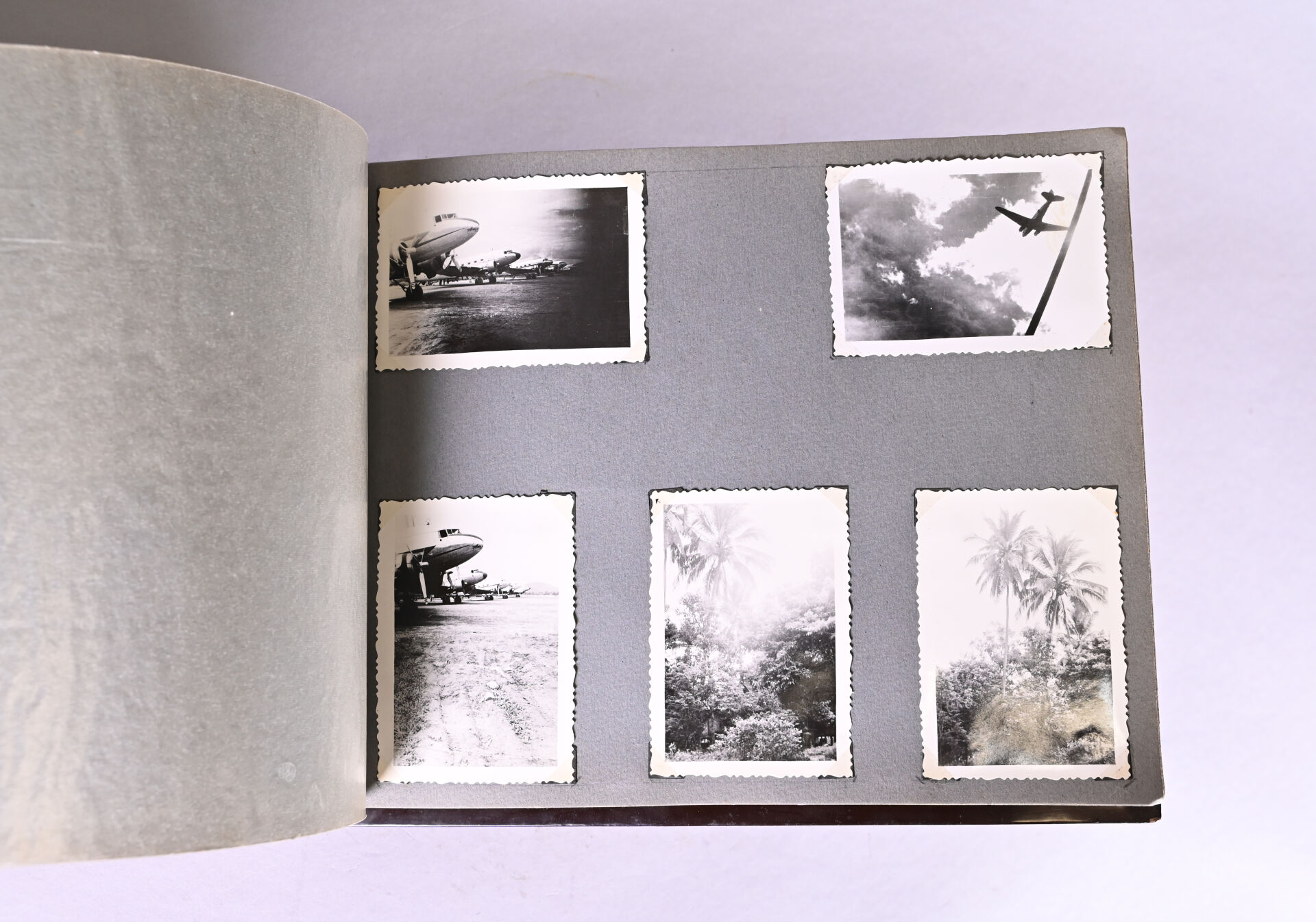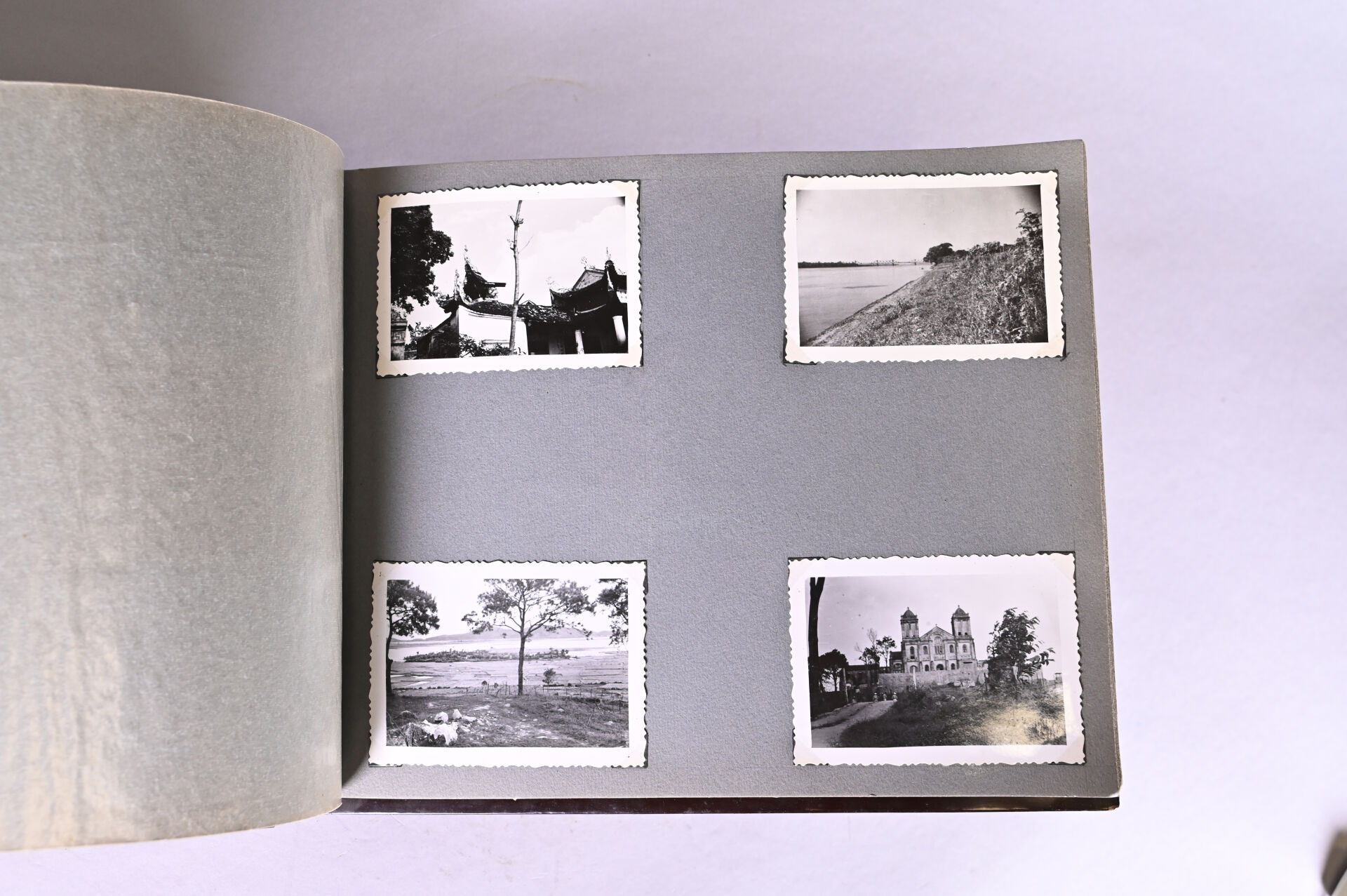 Album photo laqué à décor de poissons rouges contenant des photos des anciennes colonies dont Tonkin, Laos, Suez, Hanoï, Viet Nam (104 photos). Dim. de l’album : 25 x 35 cm.