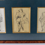 Six dessins au fusain signés et datés 1940, dans un même cadre.