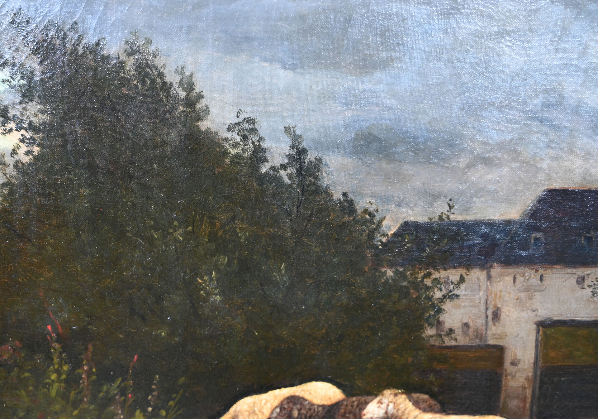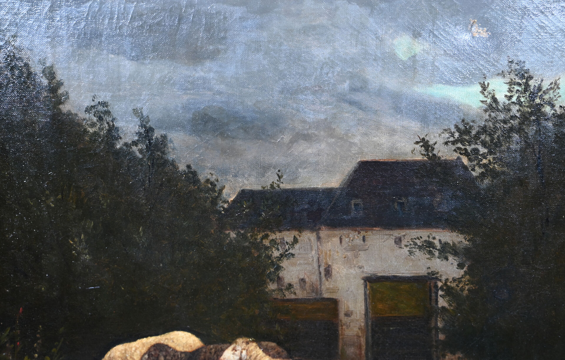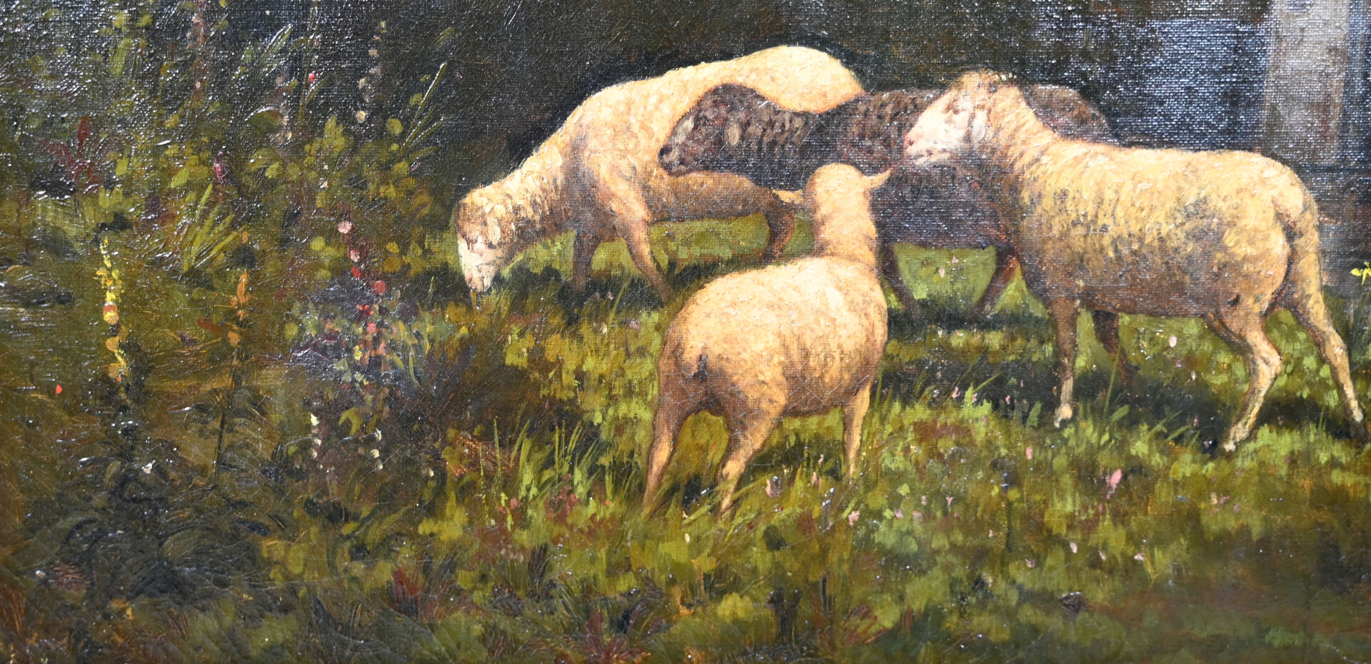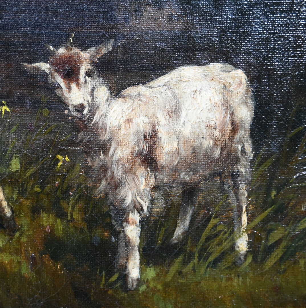 ALLARD ( XIXe-XXe). Les moutons. Huile sur toile signée en bas à droite (percée, restaurations). 54,5 x 65 cm.