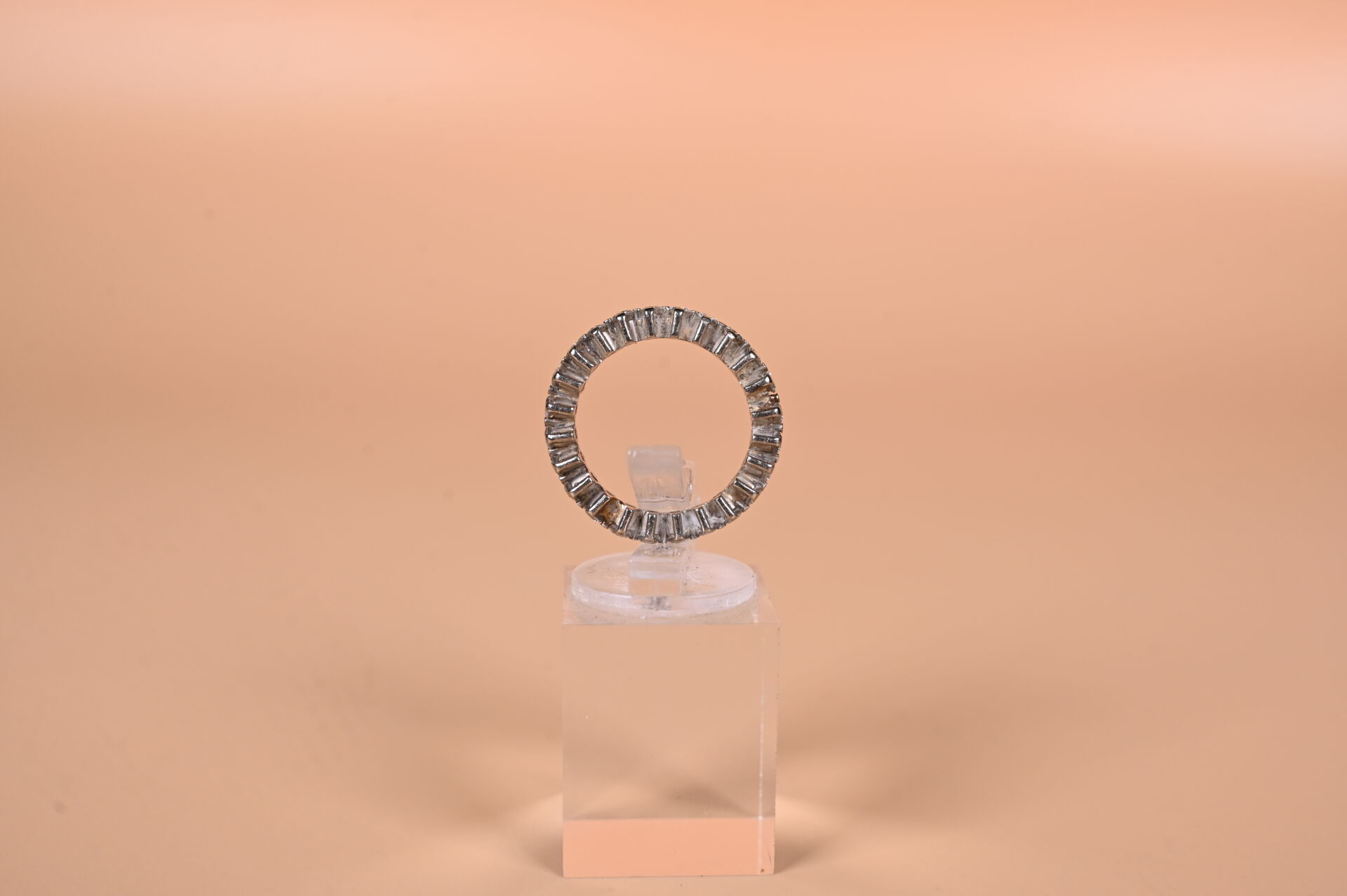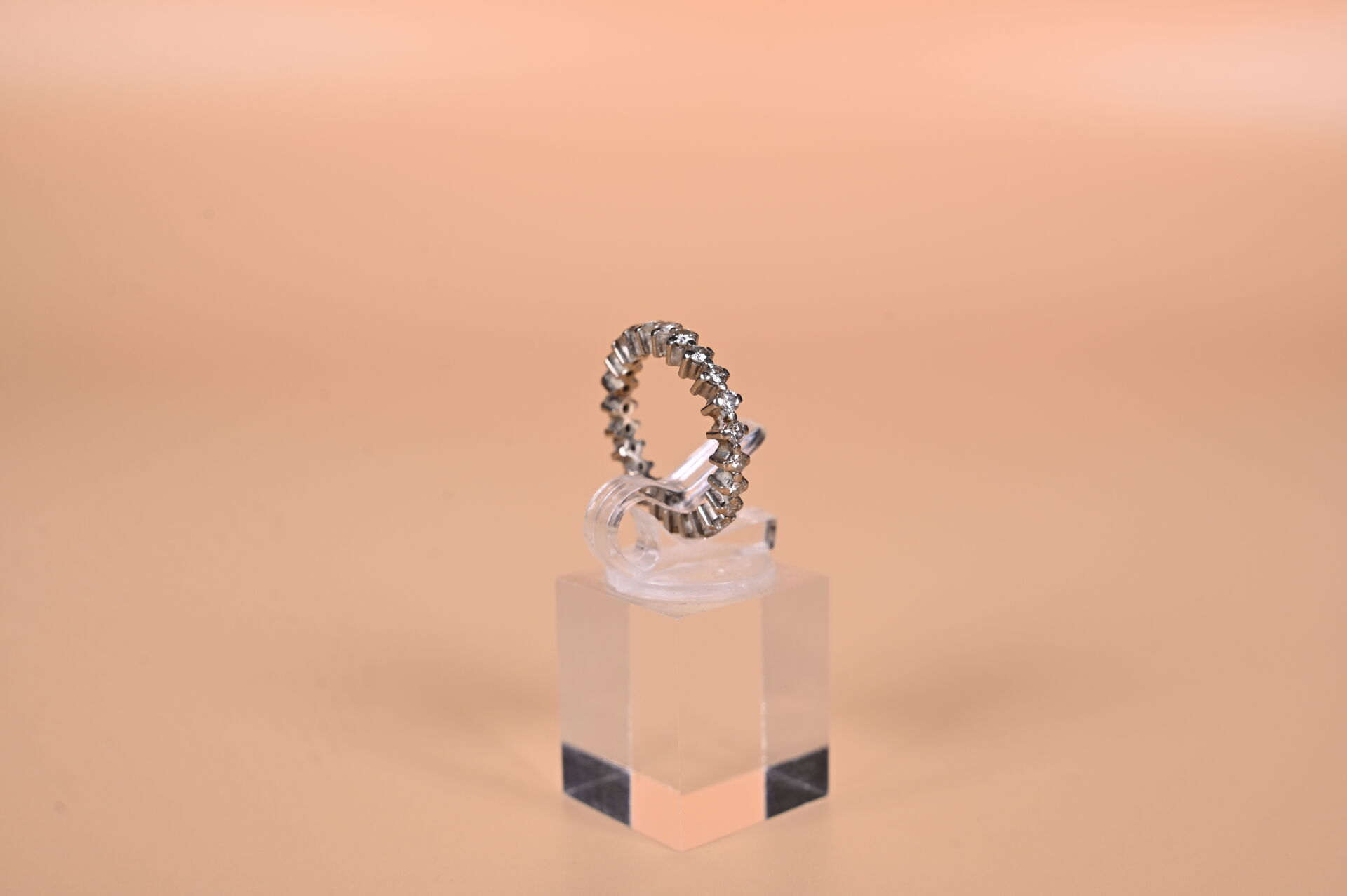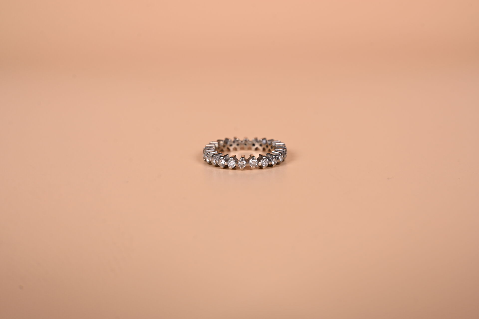 Alliance américaine (tour complet) en or gris 18K 750/1000e sertie de 24 diamants de taille brillant d’environ 0,05 carat chaque (usures, petites égrisures). TDD 52. Poids brut. : 3,97 g.