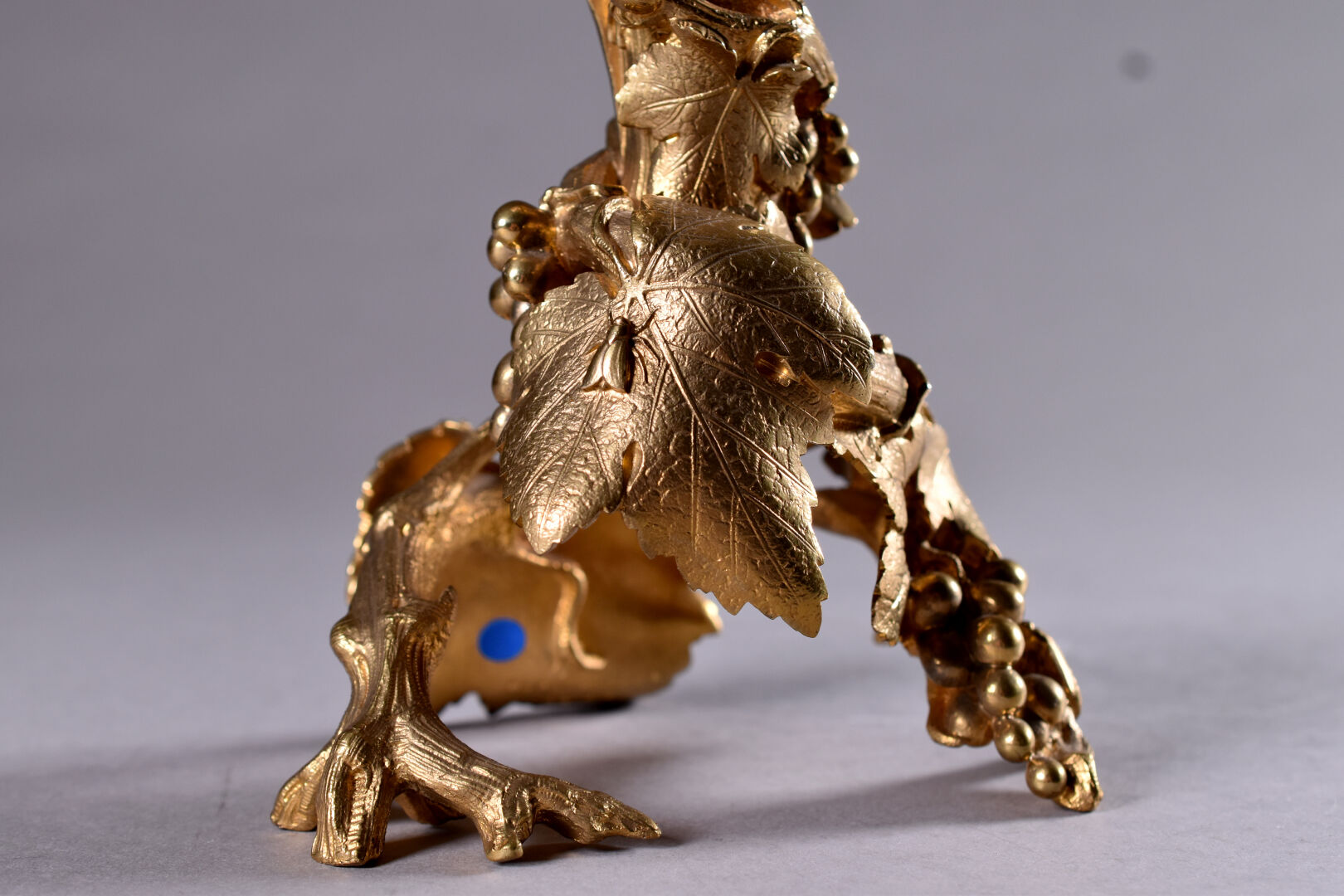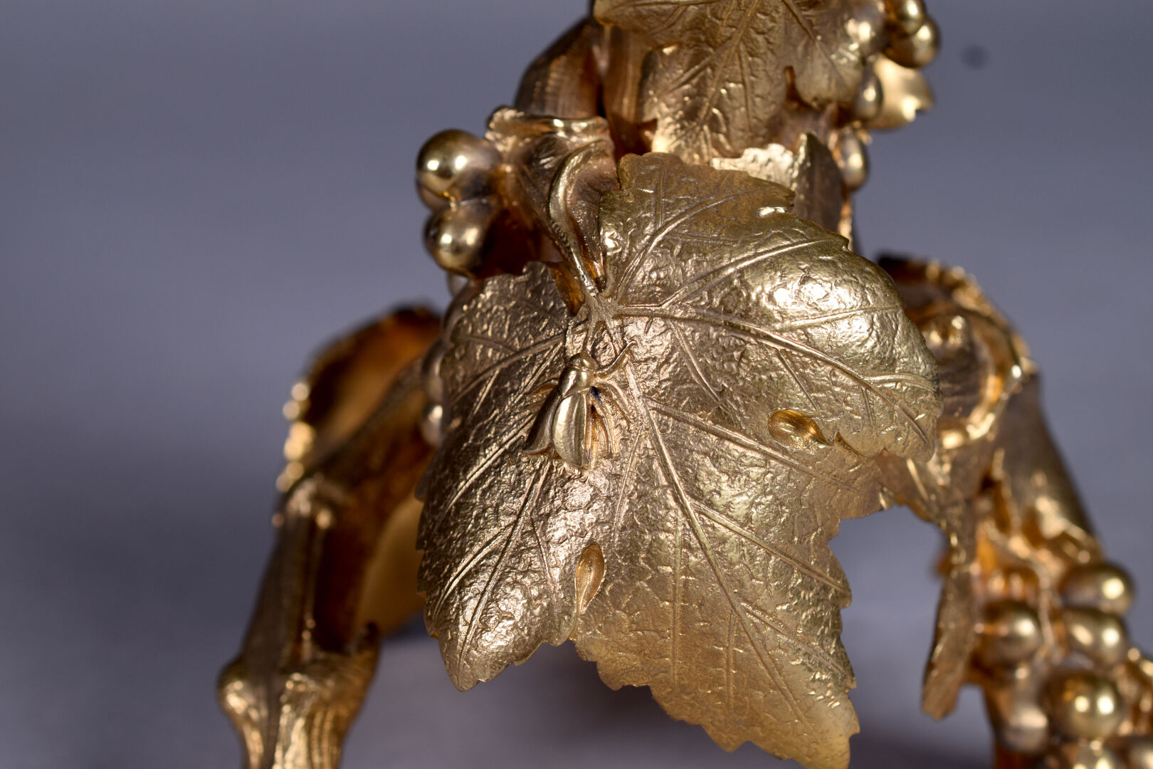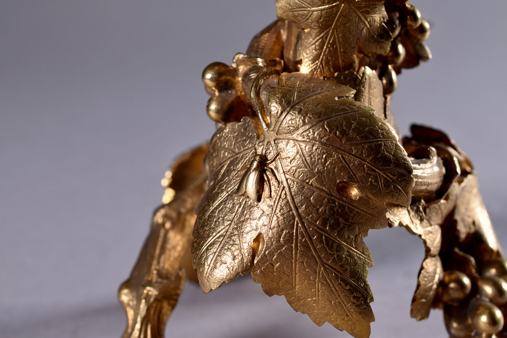 Alphonse GIROUX et Cie. Vase cornet à cotes pincées en cristal. La monture en bronze ciselé doré figurant des pampres de vignes avec des insectes. Haut. :