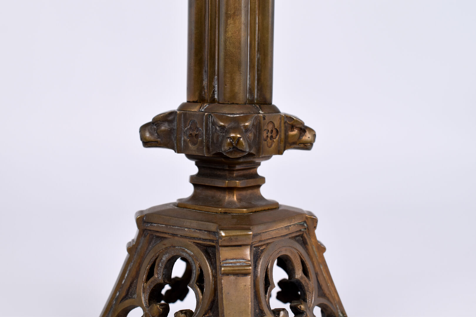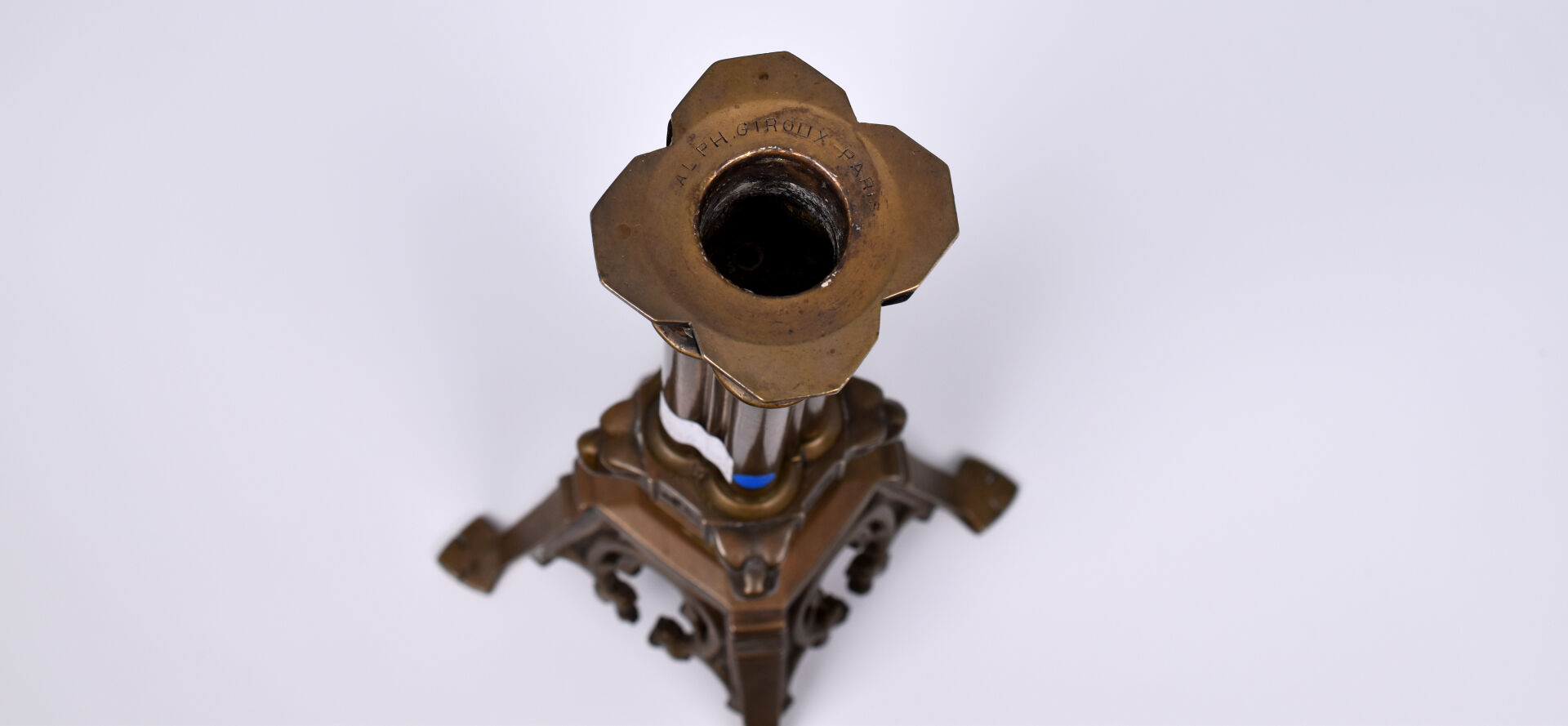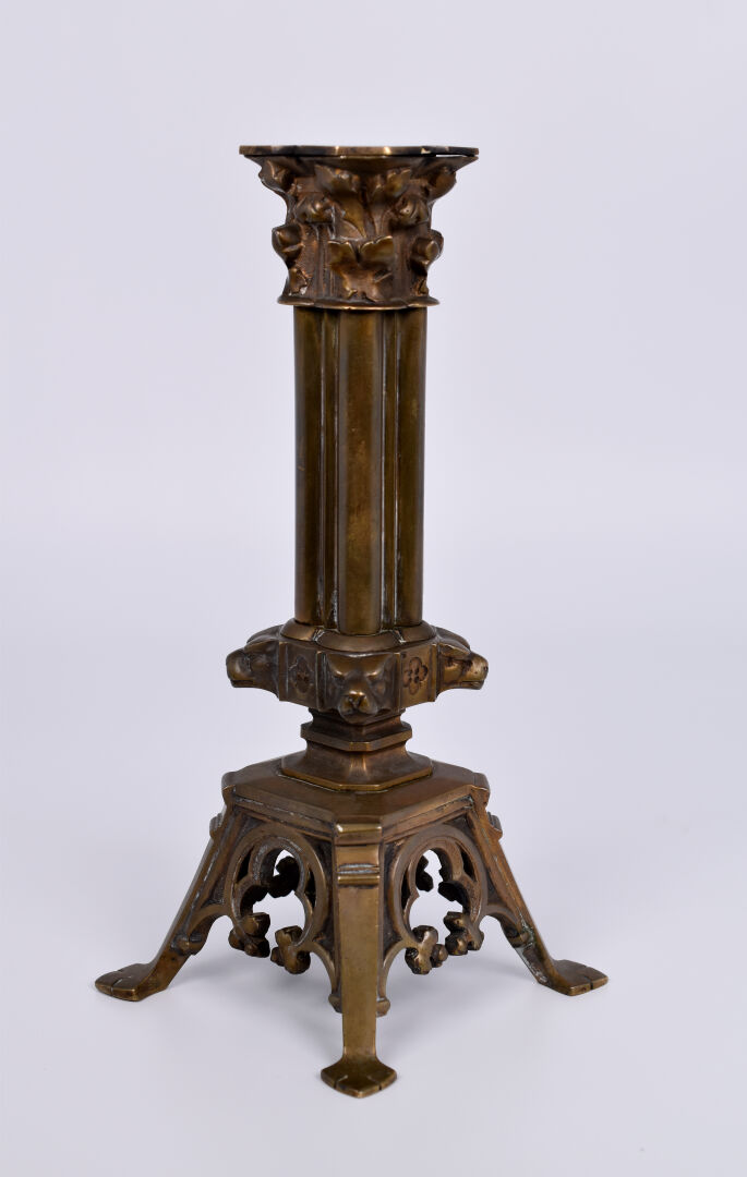 Alphonse GIROUX. Paris. Chandelier en bronze, le fût formé de quatre colonnes, le chapiteau à acanthes, décor d’animaux fantastiques. Signé. Haut. : 21 cm.