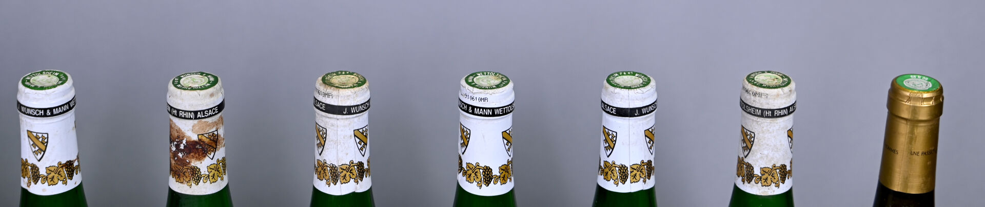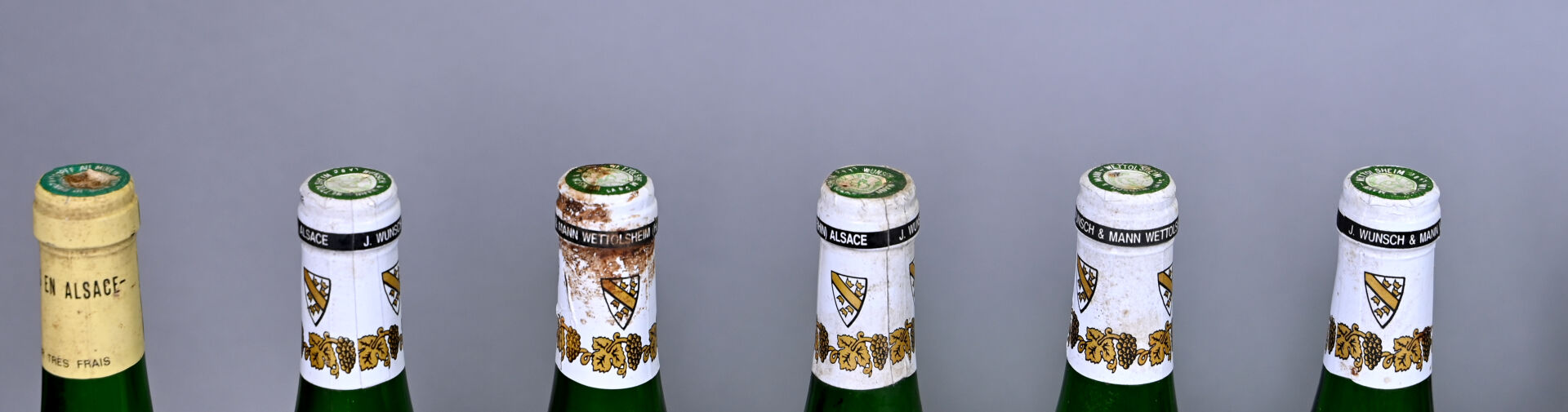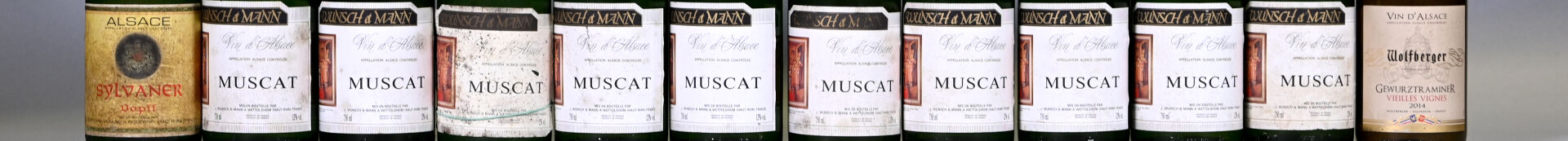 10 bouteilles, Alsace, Wunsch et Mann, Muscat, 1990. En l’état.