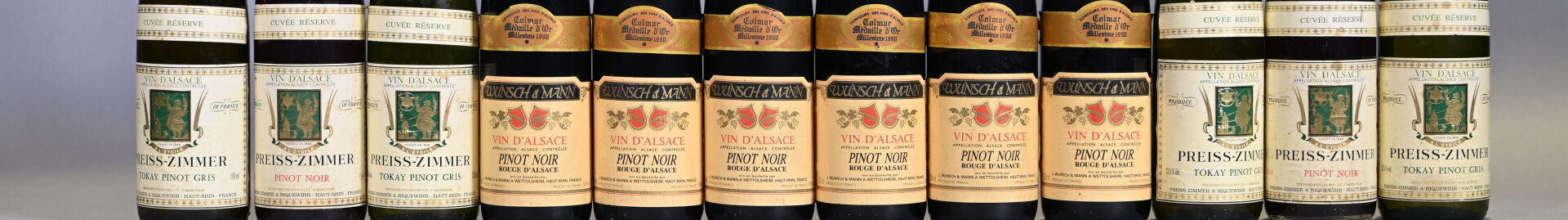 2 bouteilles, Alsace, Preiss-Zimmer, Pinot Noir, 1997. En l’état.