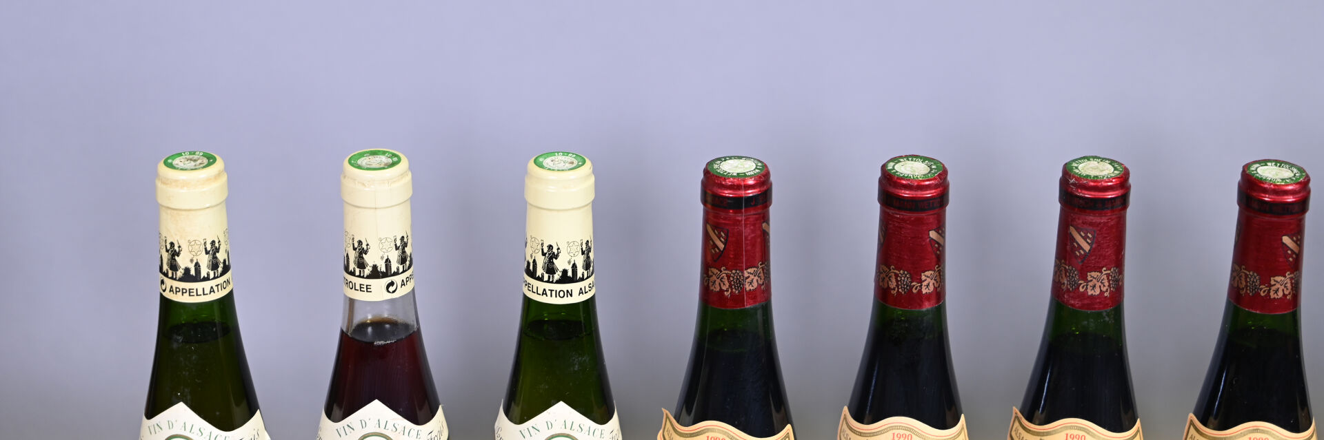 6 bouteilles, Alsace, Wunsch et Mann, Pinot Noir, 1990. En l’état.