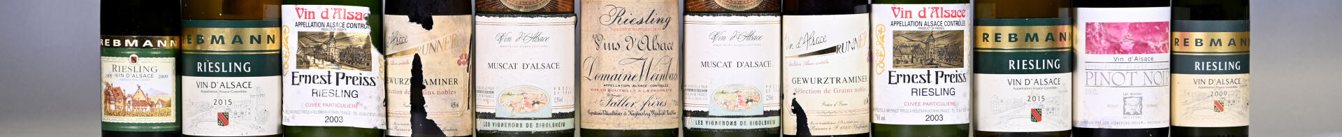 2 bouteilles, Alsace, Ernest Preiss, Riesling, Cuvée Particulière, 2003. En l’état.