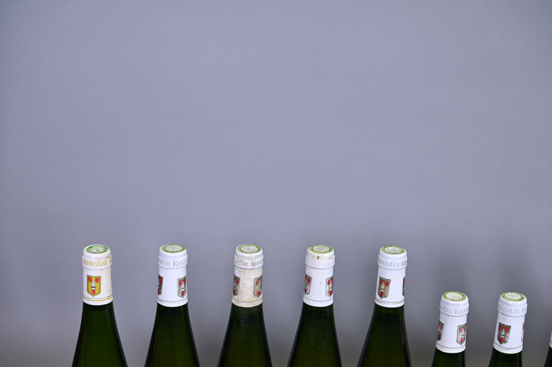 9 bouteilles, Alsace, Kientzler, Gewurztraminer, Vendange Tardive, 1988 (6) et 1994 (3). En l’état.