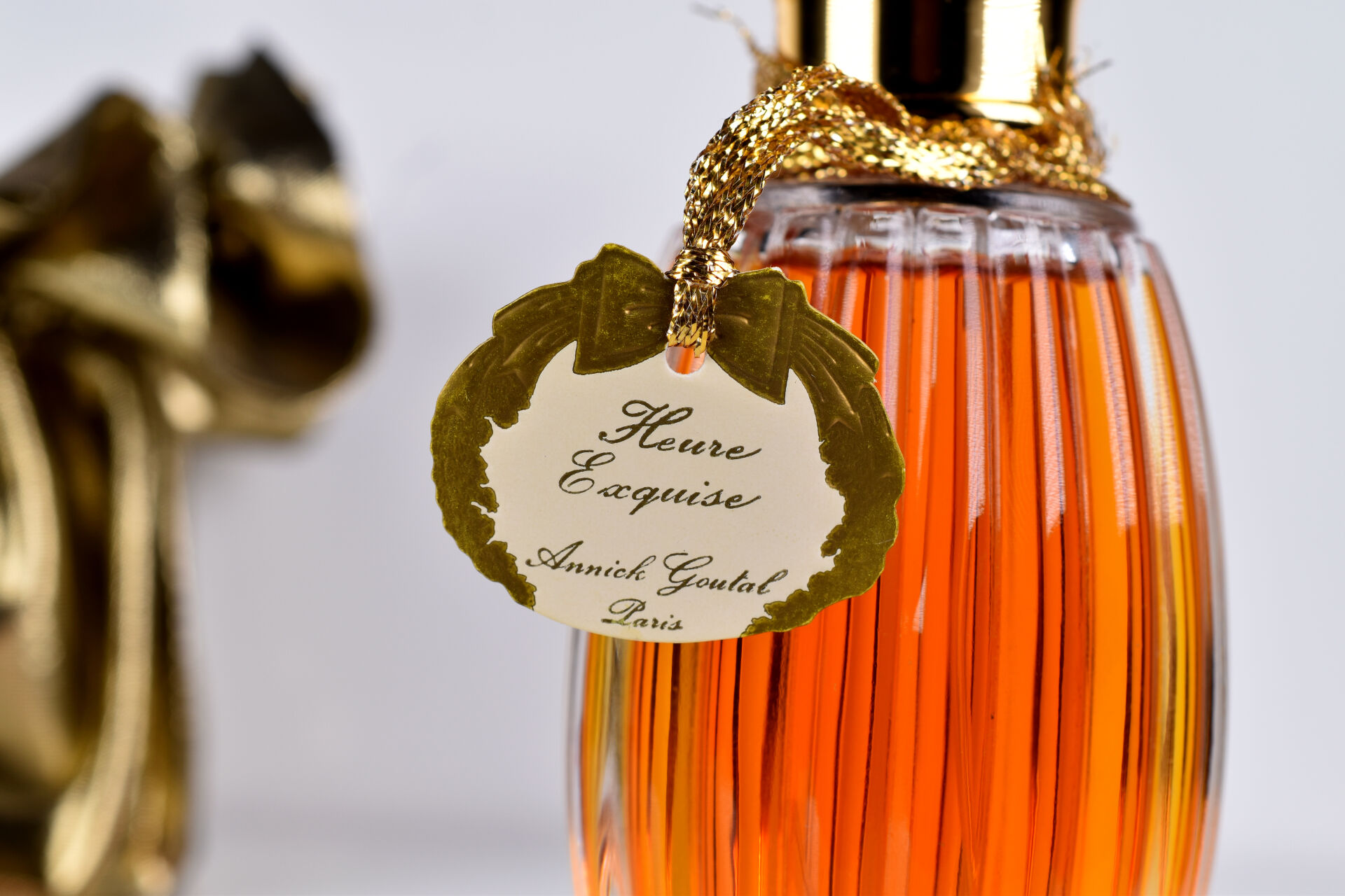Annick GOUTAL. Heure exquise. Flacon pulvérisateur en verre 100 Ml avec son contenu d’eau de parfum. Bouchon non scellé. Dans son pochon doré. On joint CHRISTIAN DIOR. Rouge n 16 (usagé).
