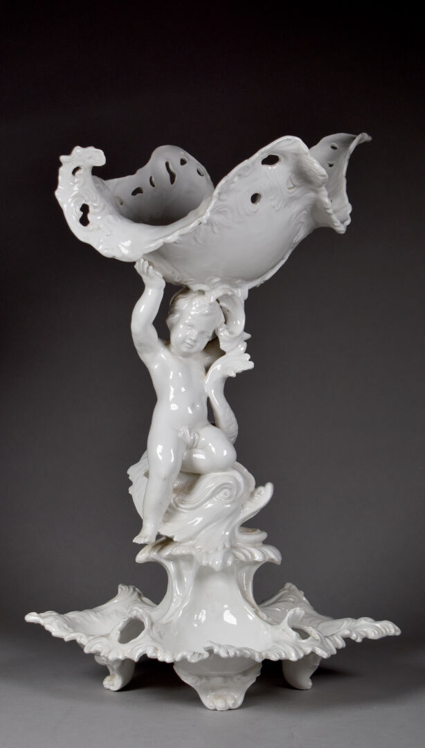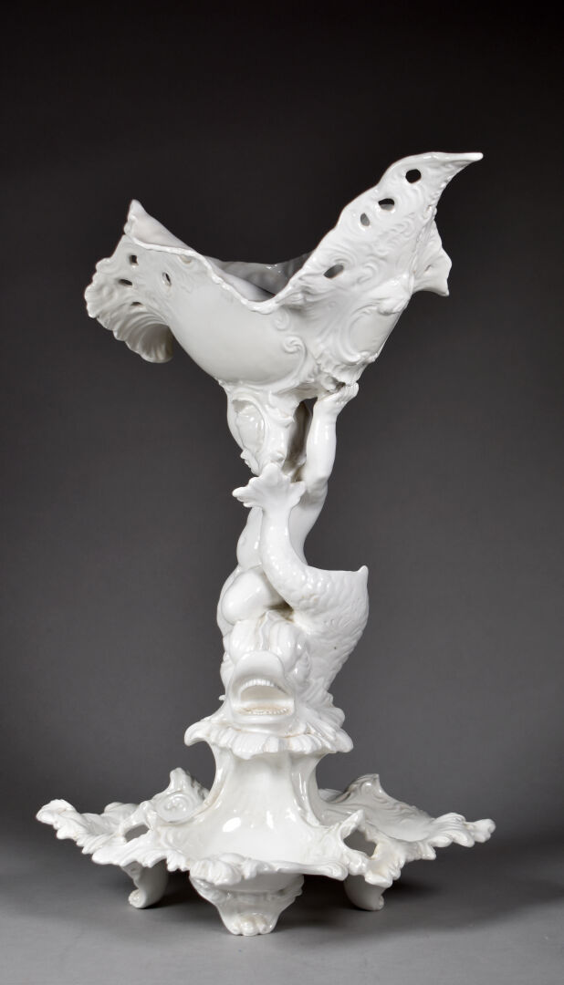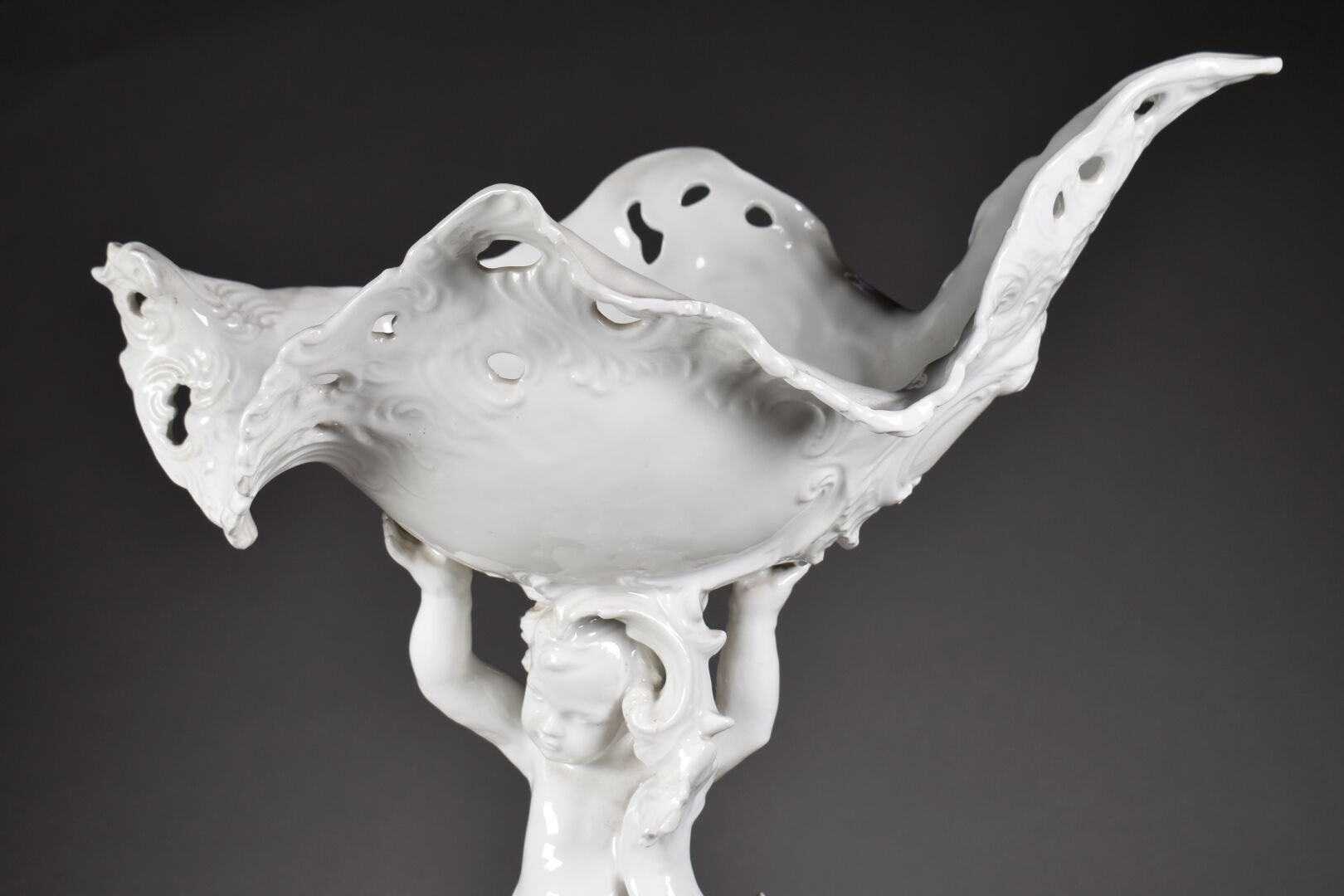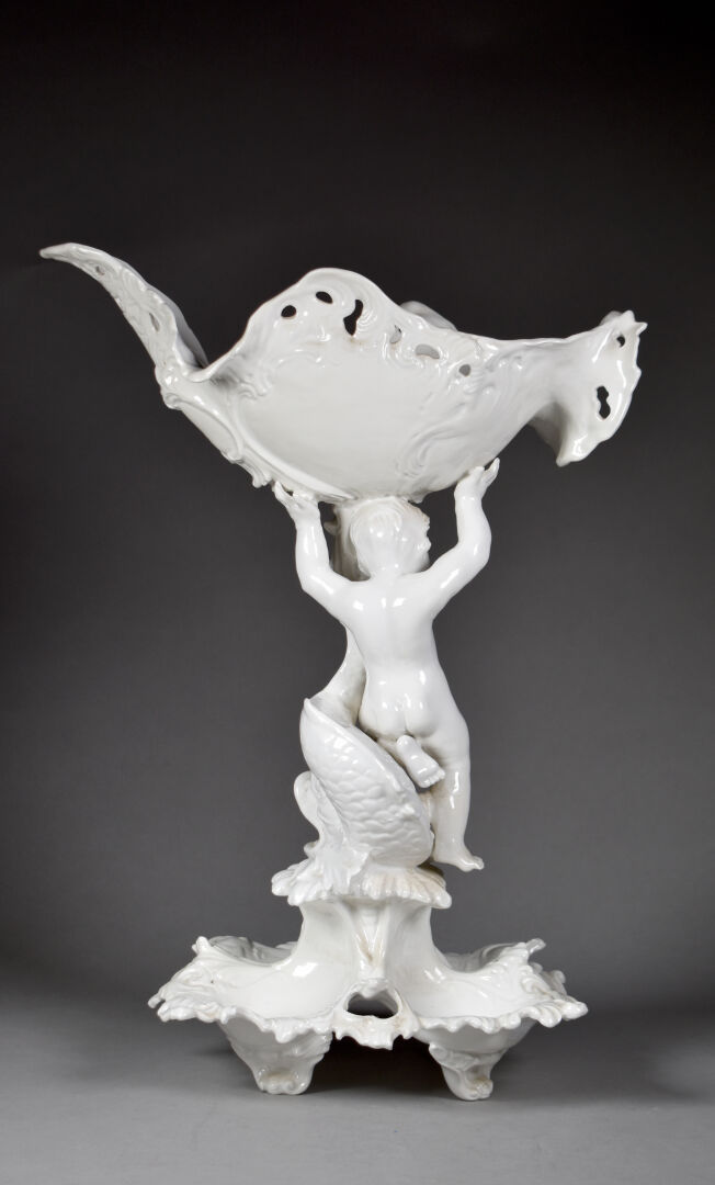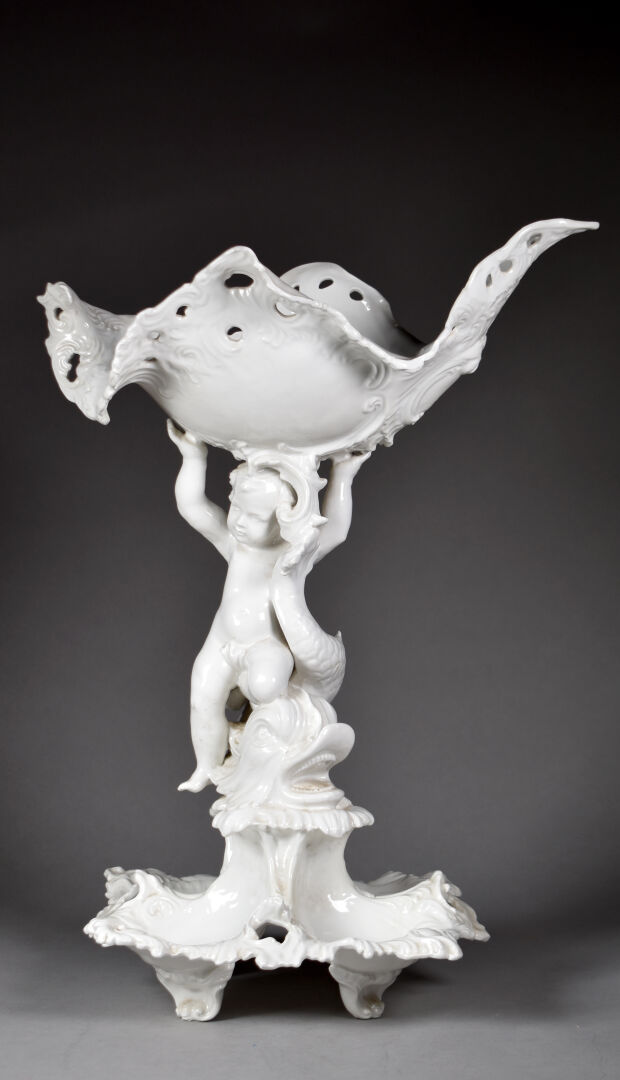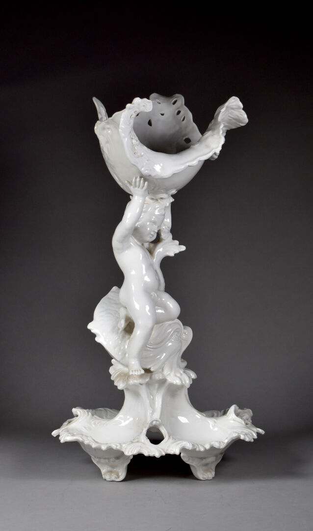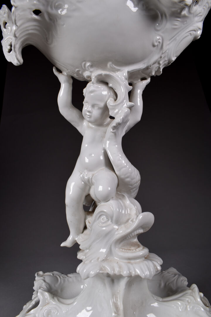 Antonio ZEN (1895-1970). Nove. Centre de table en céramique à décor d’un putto chevauchant un dauphin. Marqué sous la base. Haut. : 61,5 cm.
