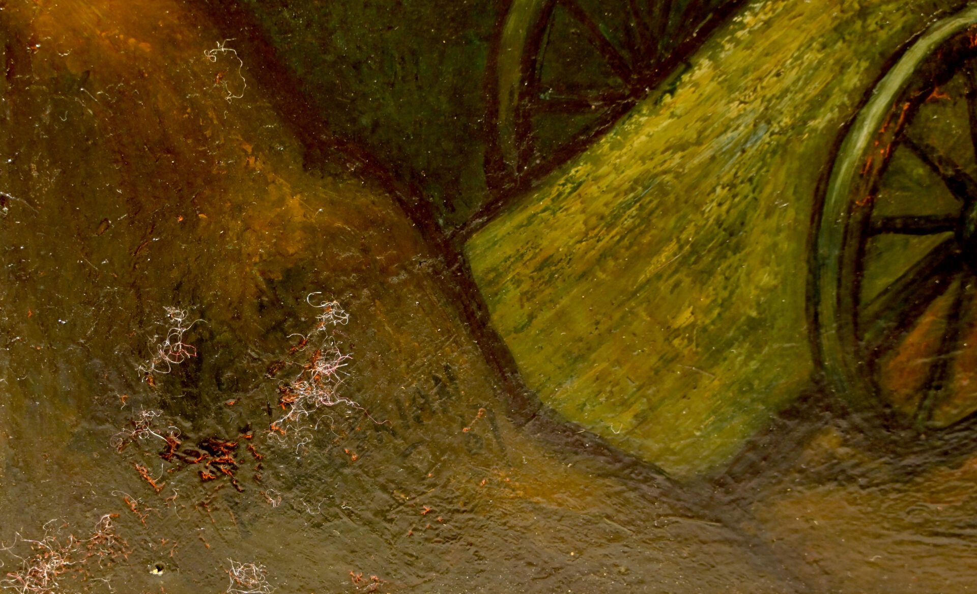 Huile sur isorel signée en bas à gauche (petits éclats et traces d’insectes xylophages).
