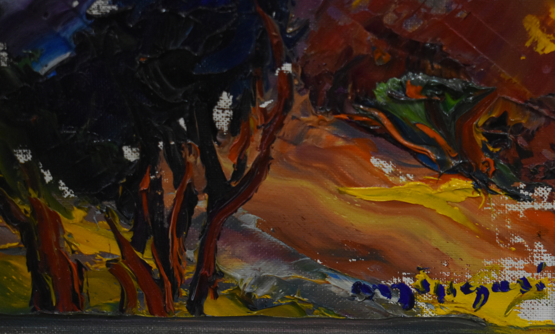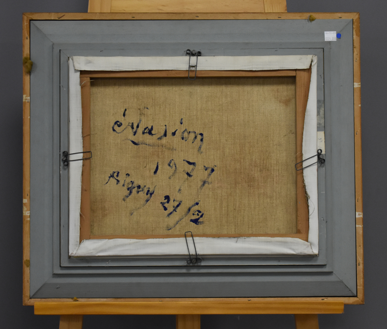 Arsène SARI (1895 à Marseille – 1995 à Aubagne). « Évasion ». Huile sur toile signée en bas en bas à droite, titrée et datée 1977 au dos. 33 x 41 cm.