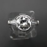 ATTENTION LOT JUDICIAIRE REGLEMENT EXIGE SOUS 10 JOURS SOUS PEINE D’ANNULATION DU BORDEREAU ET POURSUITES. Bague en or gris 18K 750/1000e ornée de trois diamants, le principal d’environ 1,90 carat épaulé de part et d’autre de deux petits diamants baguette. Pas d’inclusion visible à la loupe x 10. TDD. : 55/56. Poids brut : 7,15 g. réf. : B022101260S