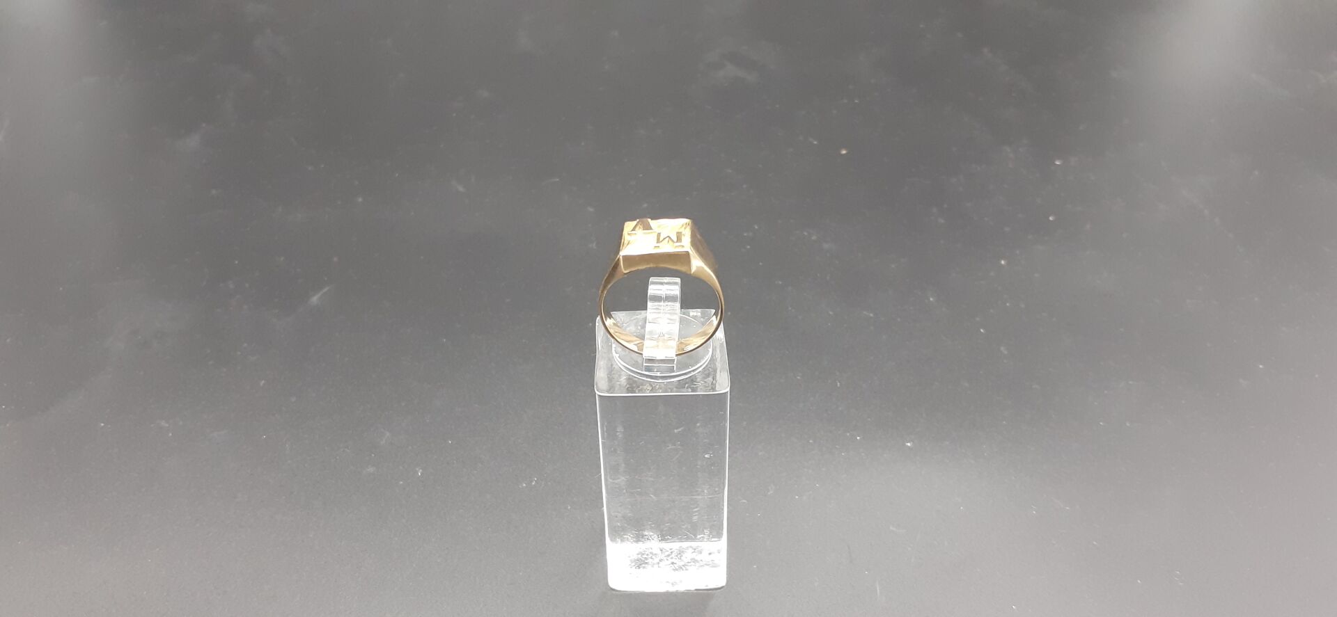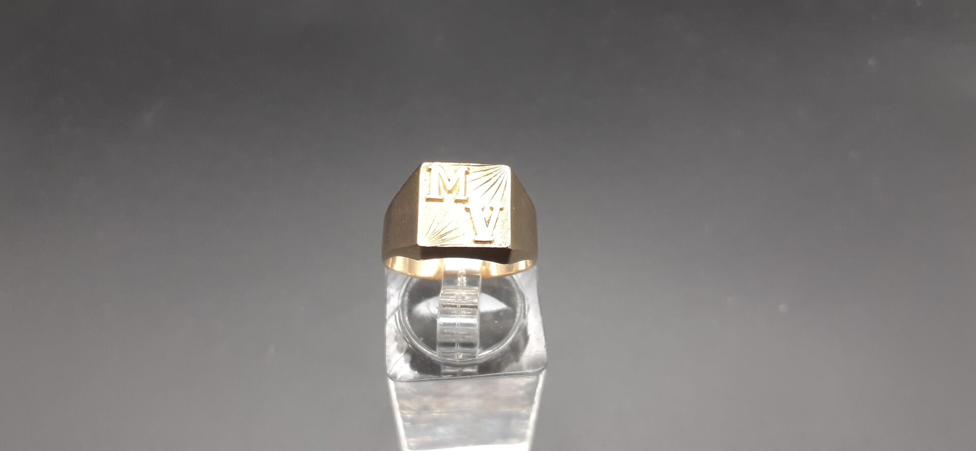 ATTENTION LOT JUDICIAIRE REGLEMENT EXIGE SOUS 10 JOURS SOUS PEINE D’ANNULATION DU BORDEREAU ET POURSUITES. Chevalière en or jaune 18K 750/1000e le chaton monogrammé MV. Poids : 4,40 g. réf B021901270 G