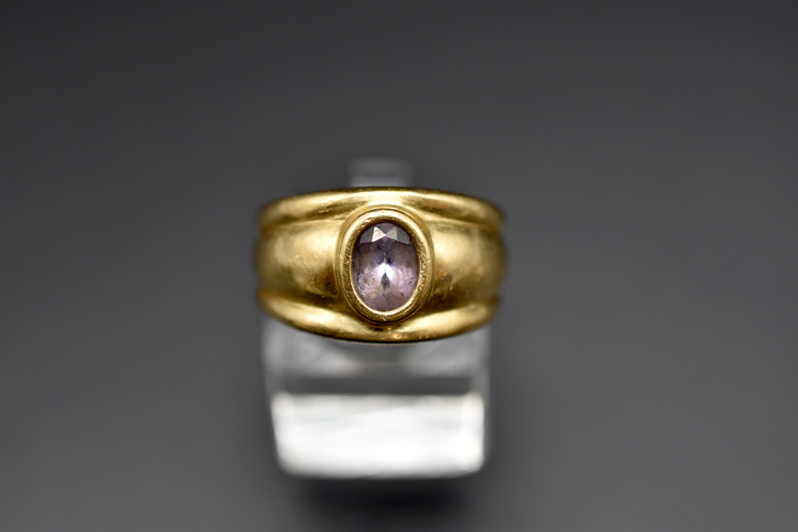 ATTENTION LOT JUDICIAIRE REGLEMENT EXIGE SOUS 10 JOURS SOUS PEINE D’ANNULATION DU BORDEREAU ET POURSUITES. Deux bagues en or jaune 18K 750/1000e, l’une ornée d’une pierre mauve (usures et déformations). Poids bruto total :11,85 g. réf. B022100726 L