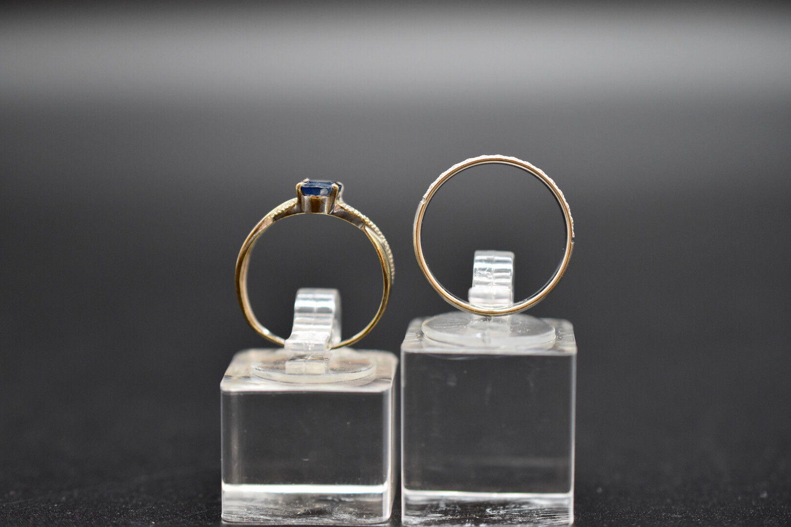 ATTENTION LOT JUDICIAIRE REGLEMENT EXIGE SOUS 10 JOURS SOUS PEINE D’ANNULATION DU BORDEREAU ET POURSUITES. Ensemble soit un anneau en or gris 18K 750/1000e serti de petites pierres blanches et une bague en or jaune 9K 375/1000e ornée d’une pierre bleue (usures). TDD. : 54. Poids brut : 3,75 g. réf. :B022100708Q