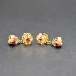 ATTENTION LOT JUDICIAIRE REGLEMENT EXIGE SOUS 10 JOURS SOUS PEINE D’ANNULATION DU BORDEREAU ET POURSUITES. Une paire de pendants d’oreilles en or jaune 18K 750/1000e ornée de pierres blanches et rouges. Poids brut : 5,50 g. Réf. B021901091D
