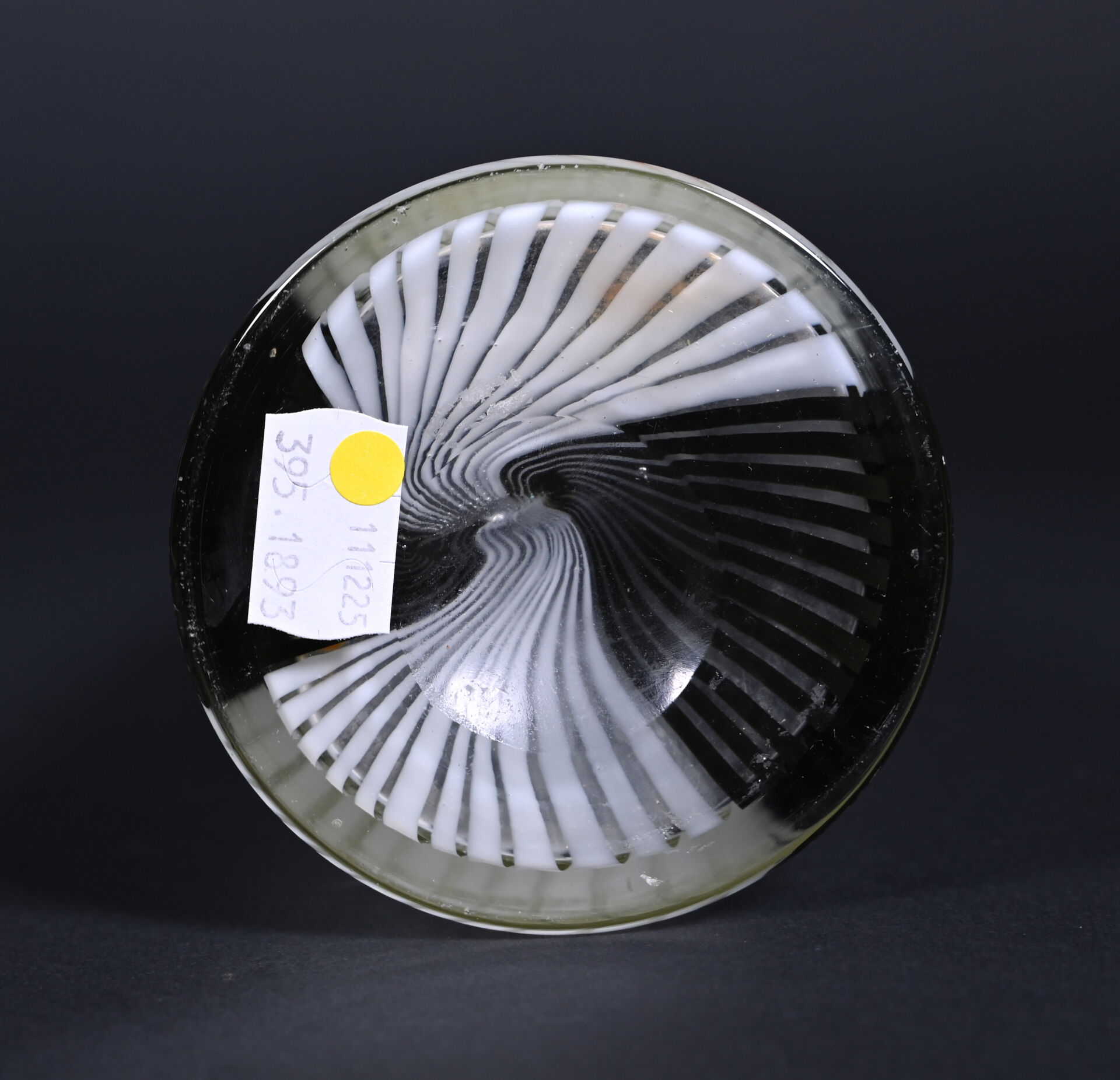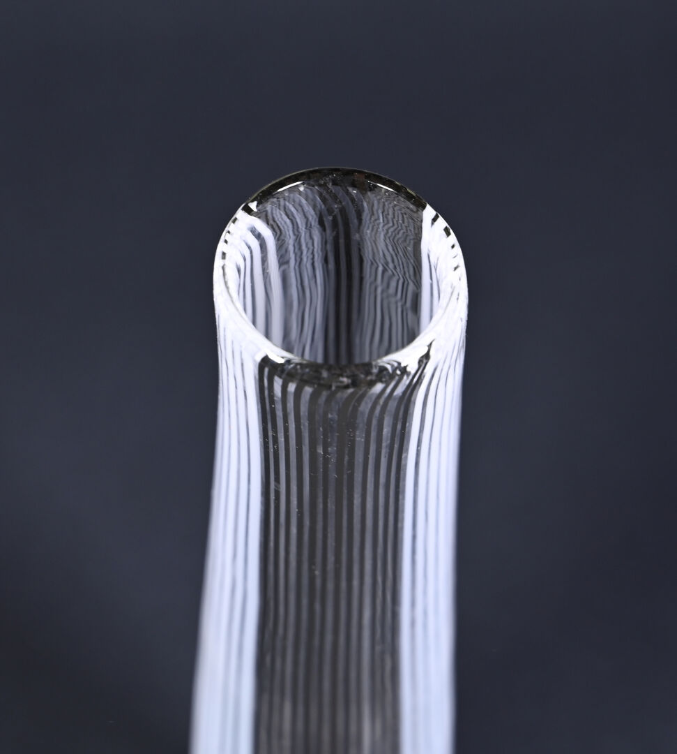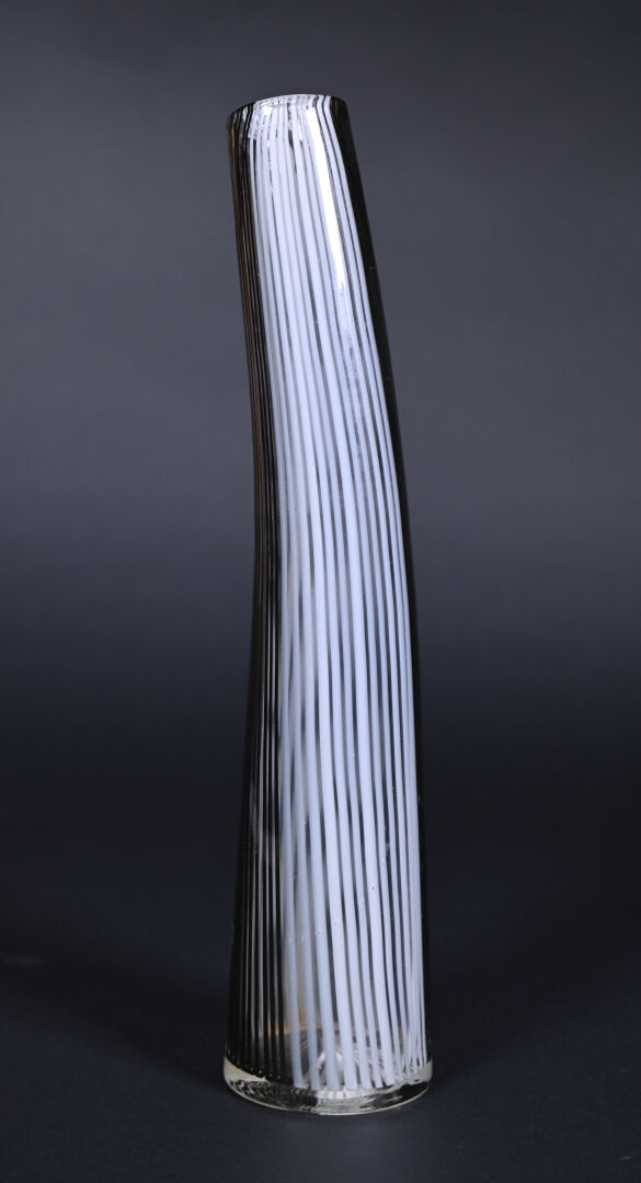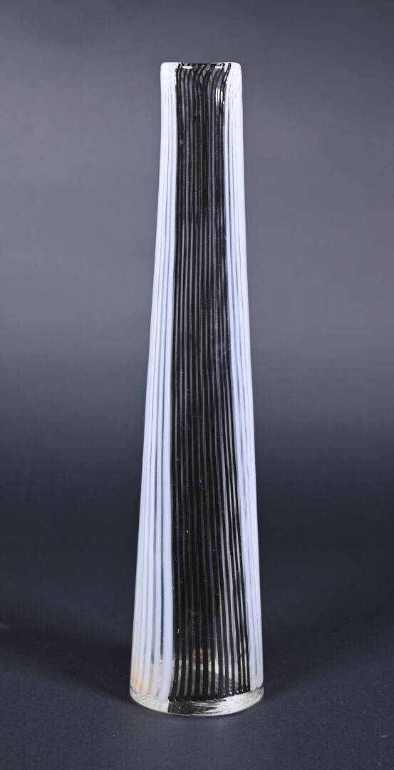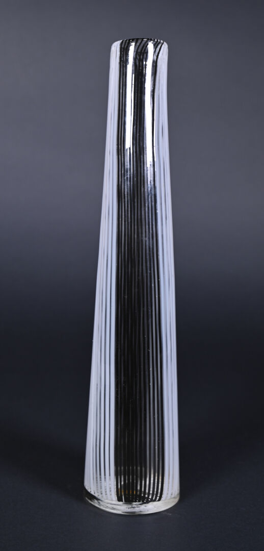 Attribué à Dino MARTENS 1(894 – 1970). Vase fuselé en verre à décor filigranné en noir et blanc. Haut. : 40,5 cm.