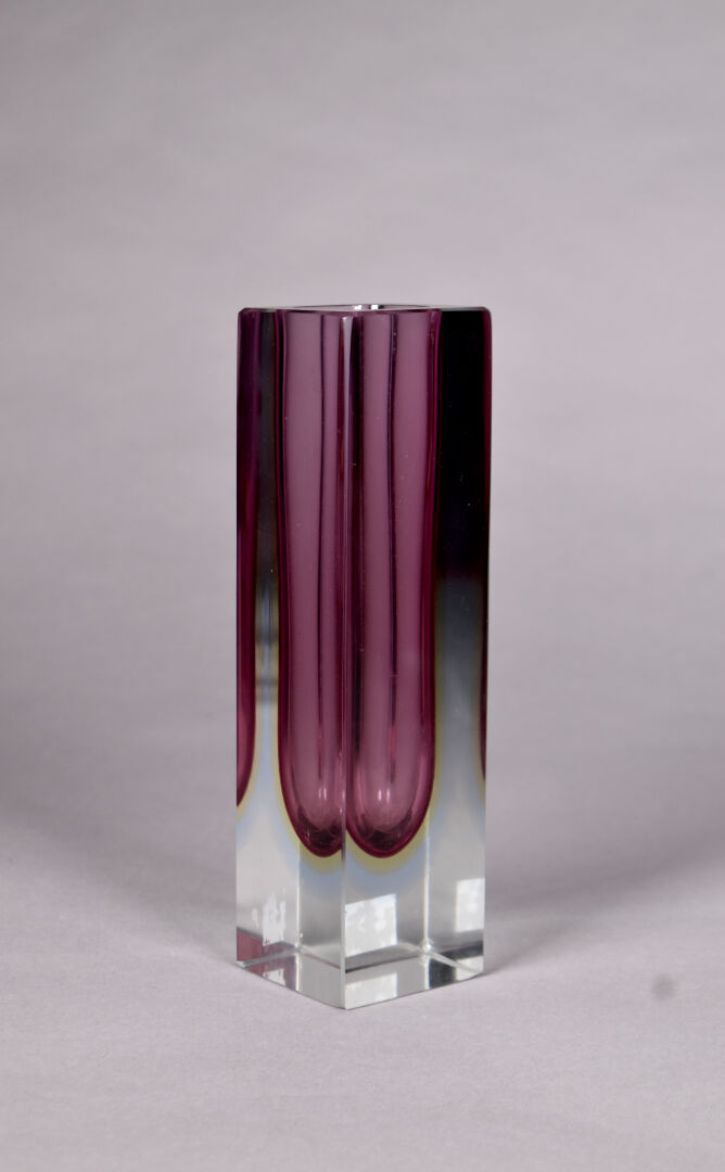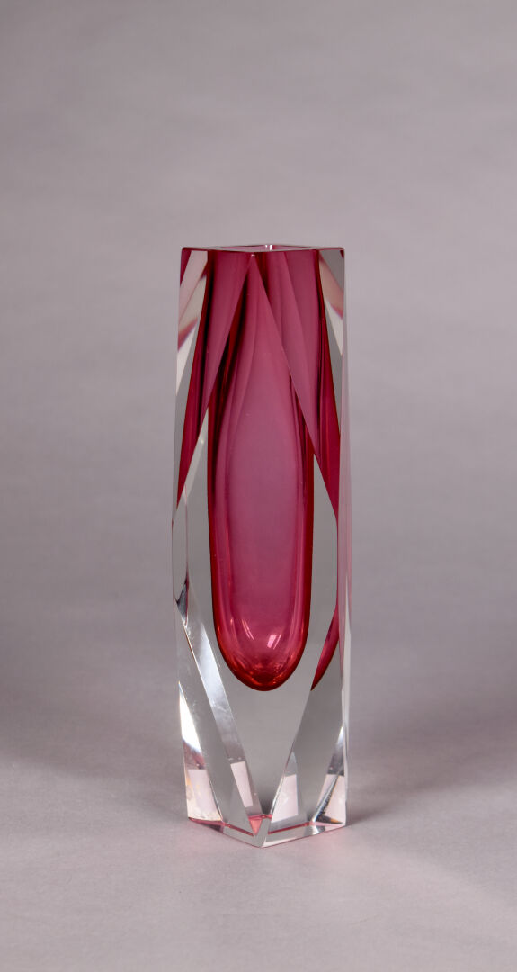 Attribué à Flavio POLI (1900-1984) pour Archimede SEGUSO. Vase somerso en verre à panse facetée et intérieur doublé rose. Haut. : 21 cm. On joint un autres vase somerso (petites égrenures). Probablement Murano.