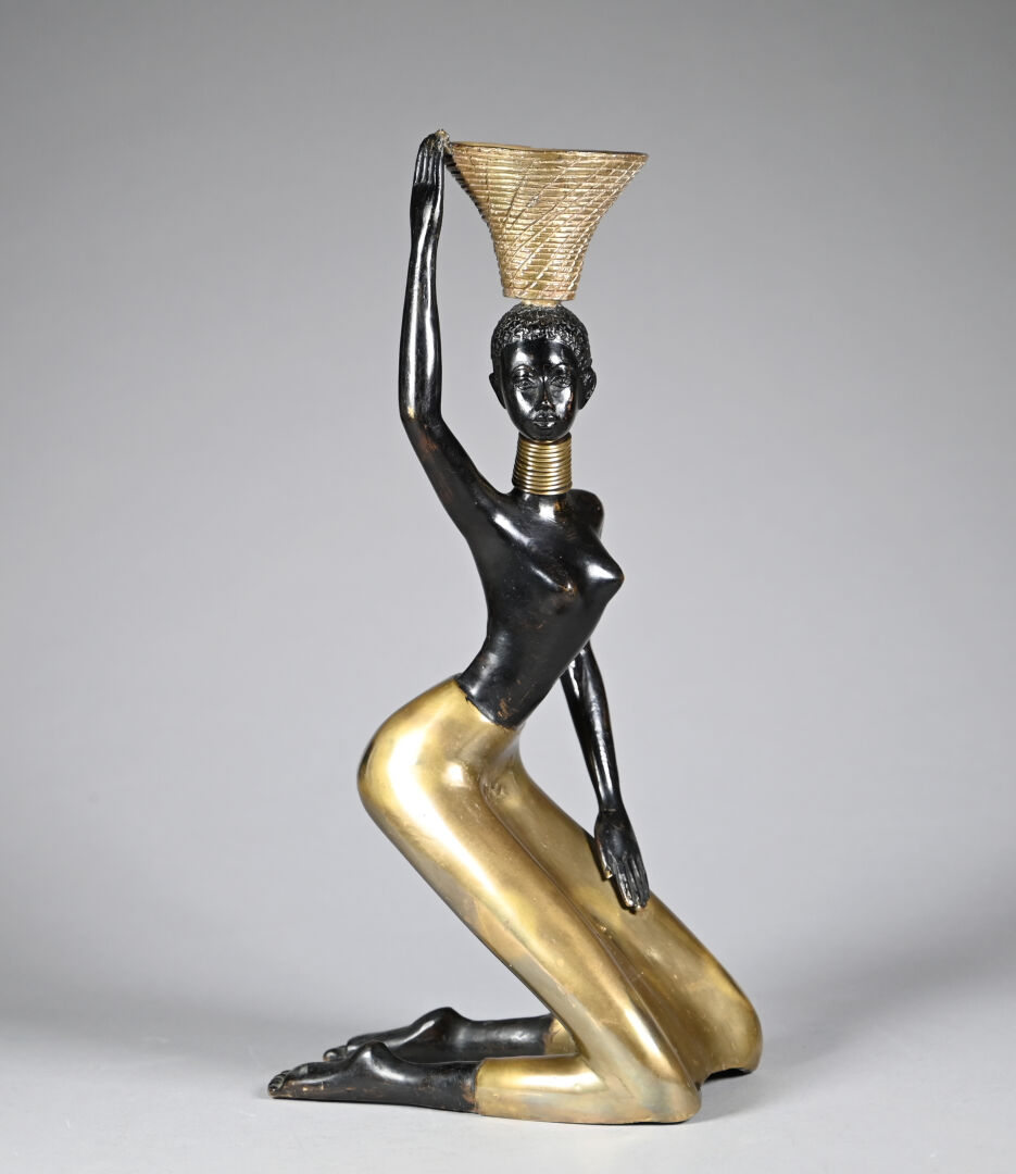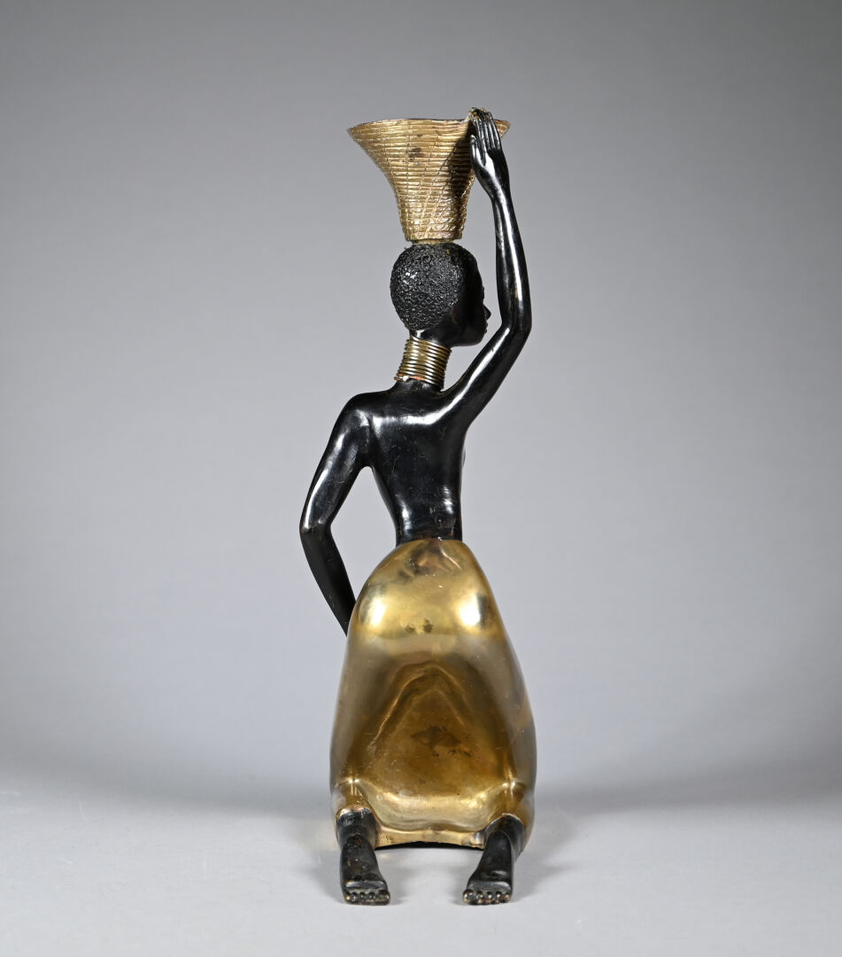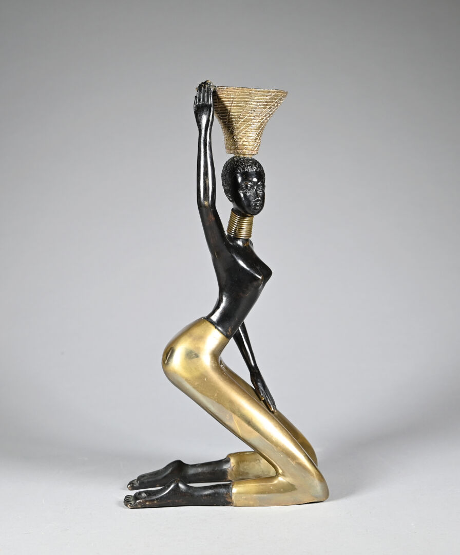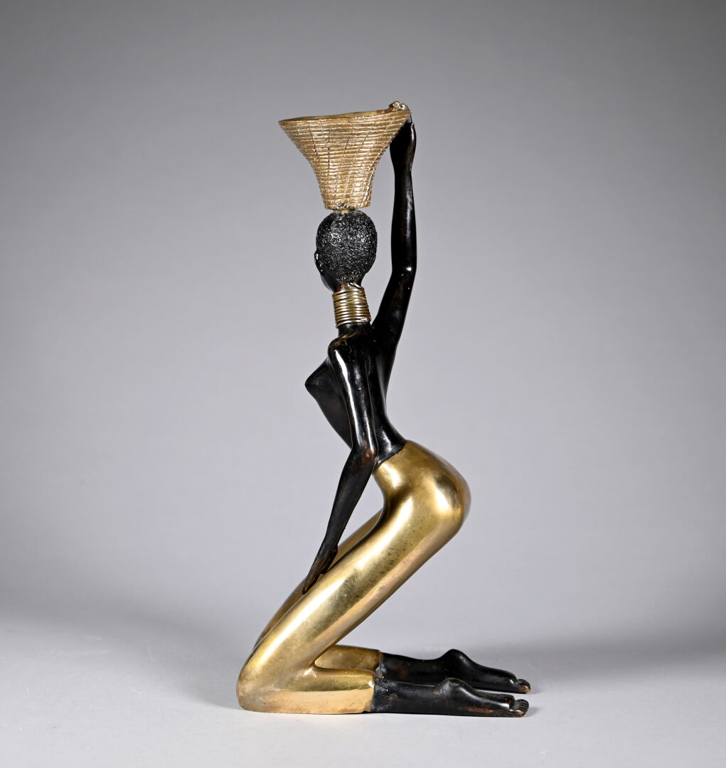 Attribué à Karl HAGENAUER (1898 – 1956). Porteuse d’eau à genoux en bronze à patine brun et doré. Haut. : 47 cm.
