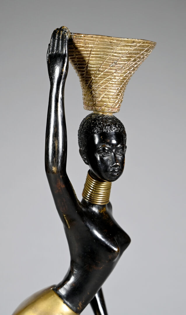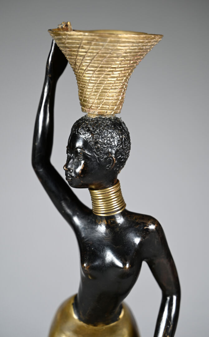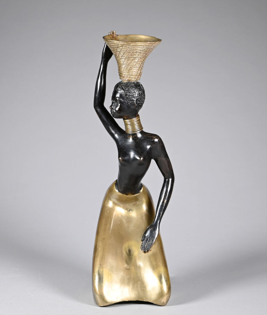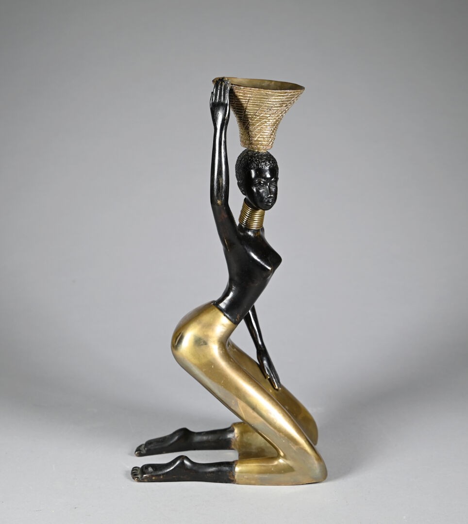 Attribué à Karl HAGENAUER (1898 – 1956). Porteuse d’eau à genoux en bronze à patine brun et doré. Haut. : 47 cm.