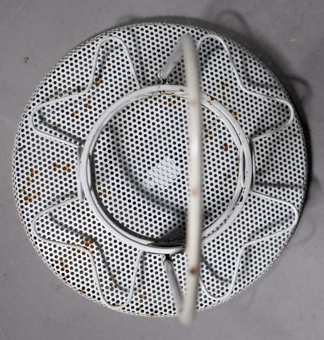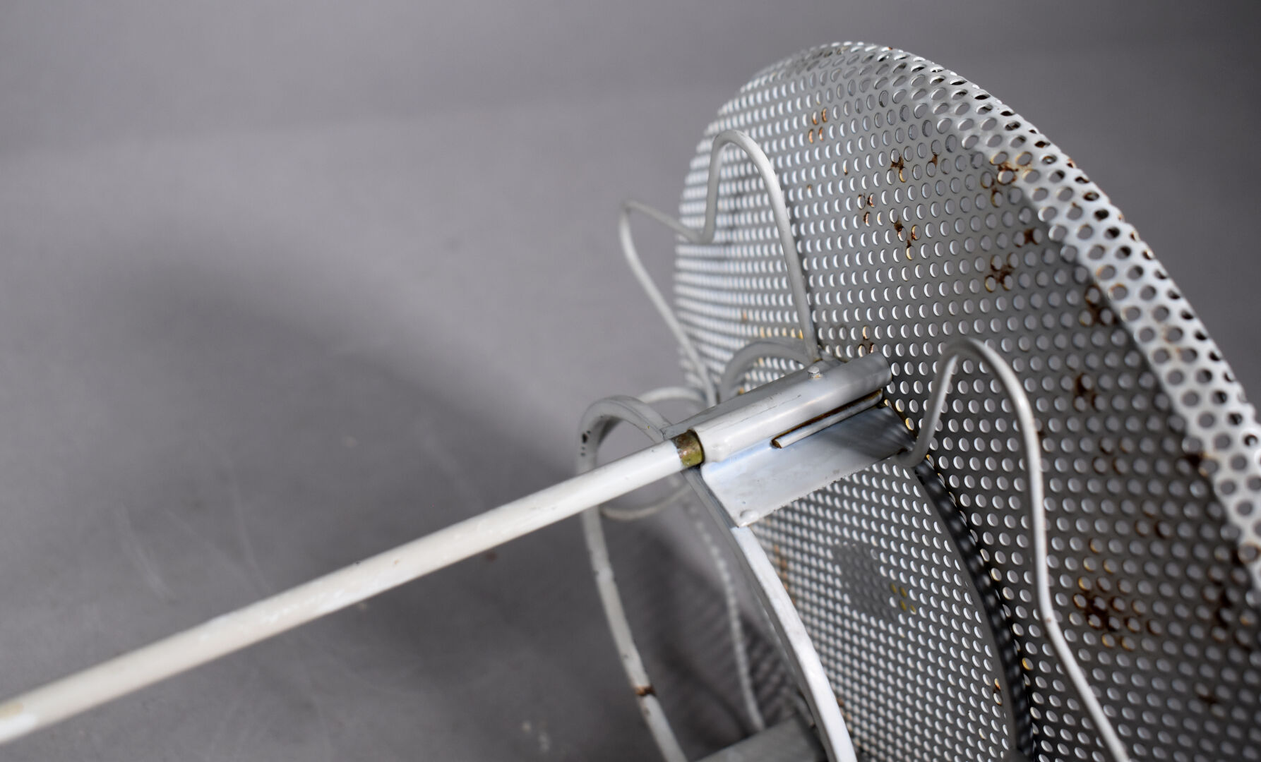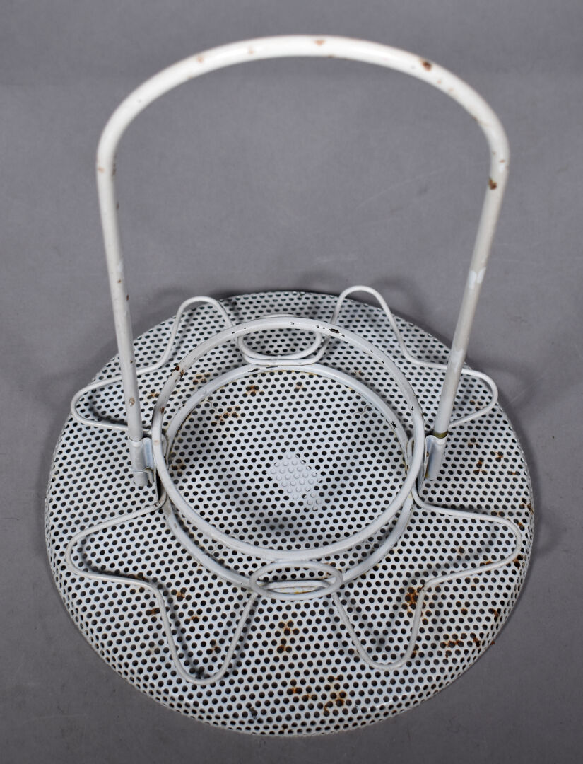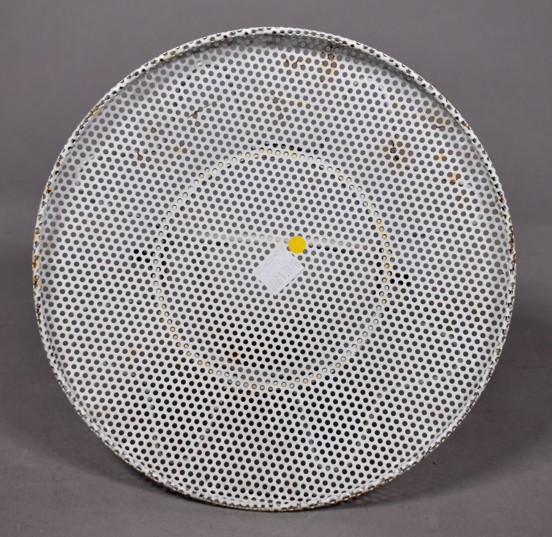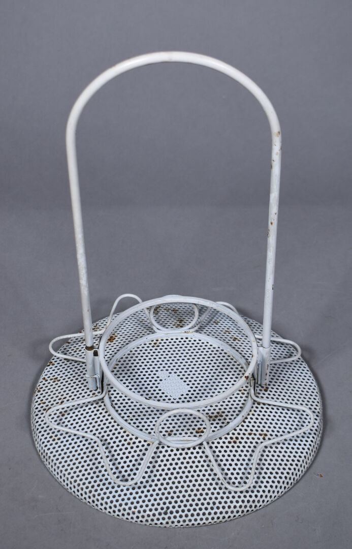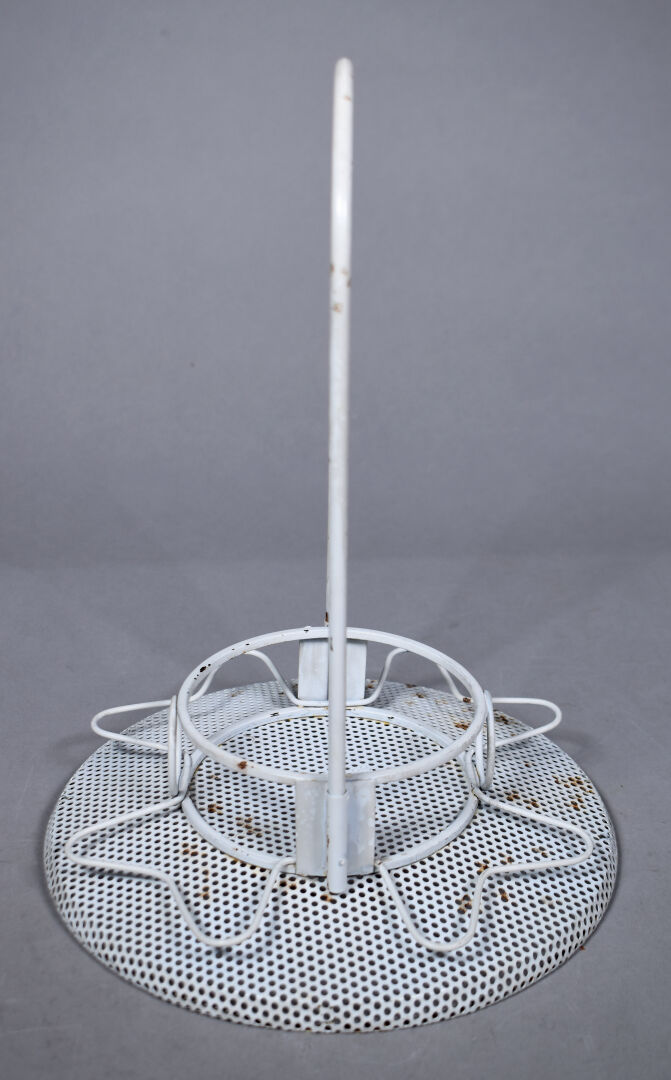 Attribué à Mathieu MATEGOT (1910-2001). Support de service à orangeade en métal relaqué crème perforé (traces de rouille). Haut. : 32,5 cm.