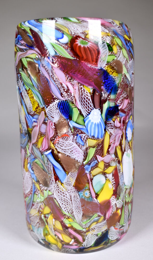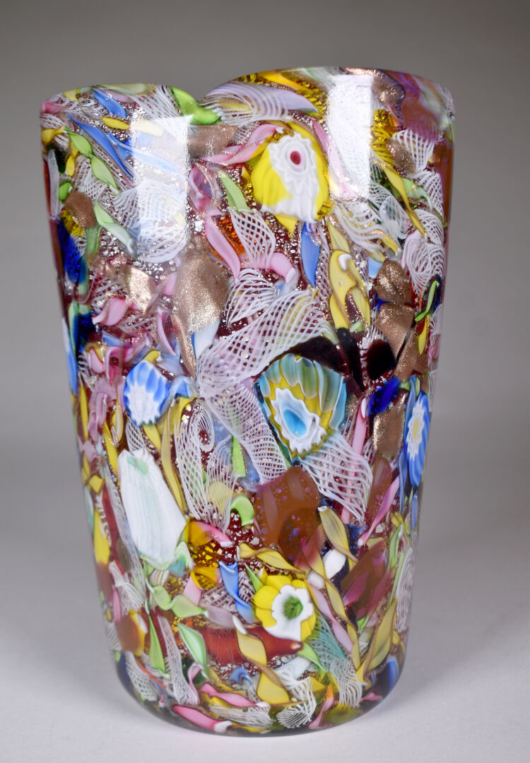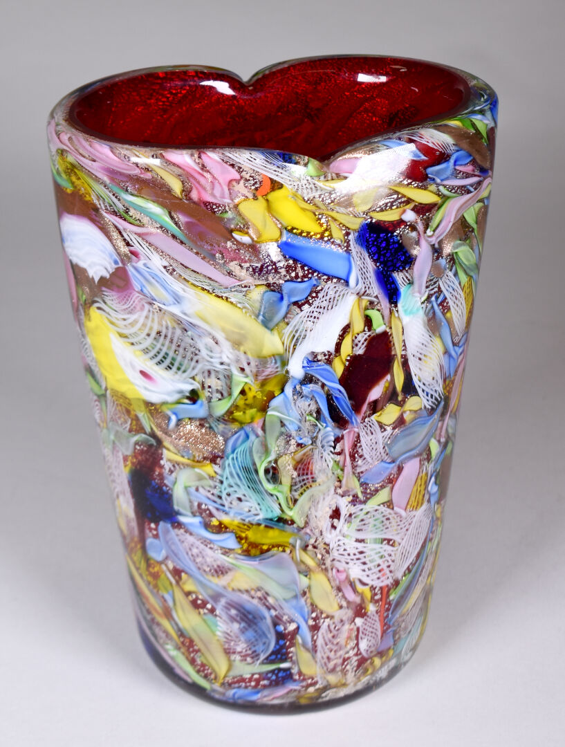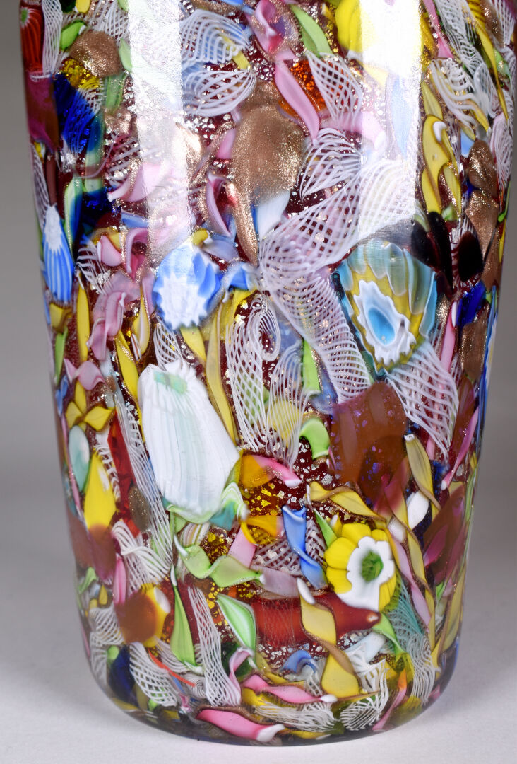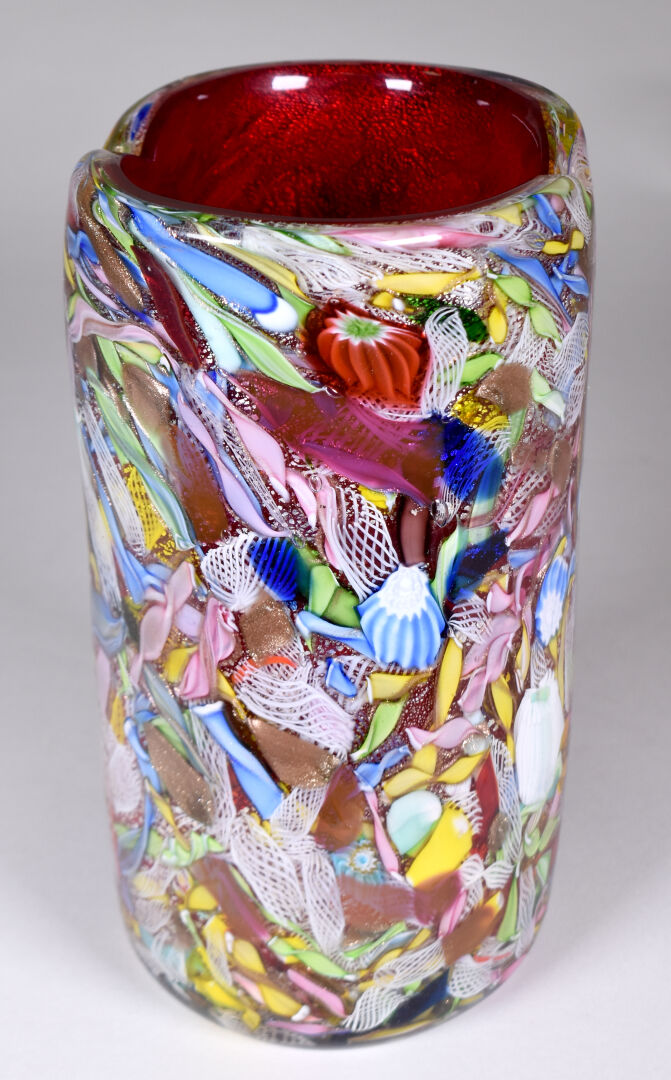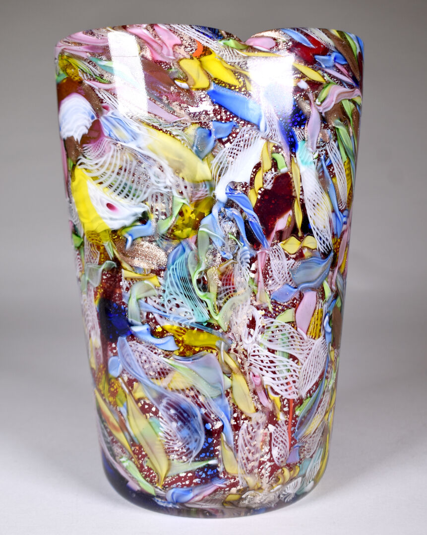 AVEM – Murano. Vase en verre à décor dit « tutti frutti ». Haut. : 25 cm.