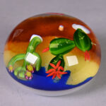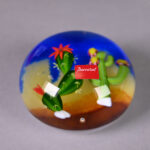 BACCARAT. Boule presse-papier sulfure à décor en polychromie de cactus dans un désert. Marquée et numérotée 65/100 et datée 1999 au dessous. Écrin et certificat.