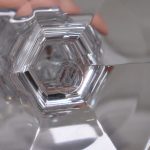 BACCARAT. Partie de service de verres à pied en cristal taillé modèle « Harcourt 1841 » comprenant 13 verres à eau (Haut. : 15,9 cm), 13 verres à vin blanc (Haut. : 13,9 cm), 13 flûtes à champagne (Haut. : 17,9 cm, 1 accident restauré et un éclat), 1 carafe de service (Haut. : 22 cm). Tampon « BACCARAT FRANCE » au-dessous. On joint un dessous de bouteille non marqué (plusieurs éclats).