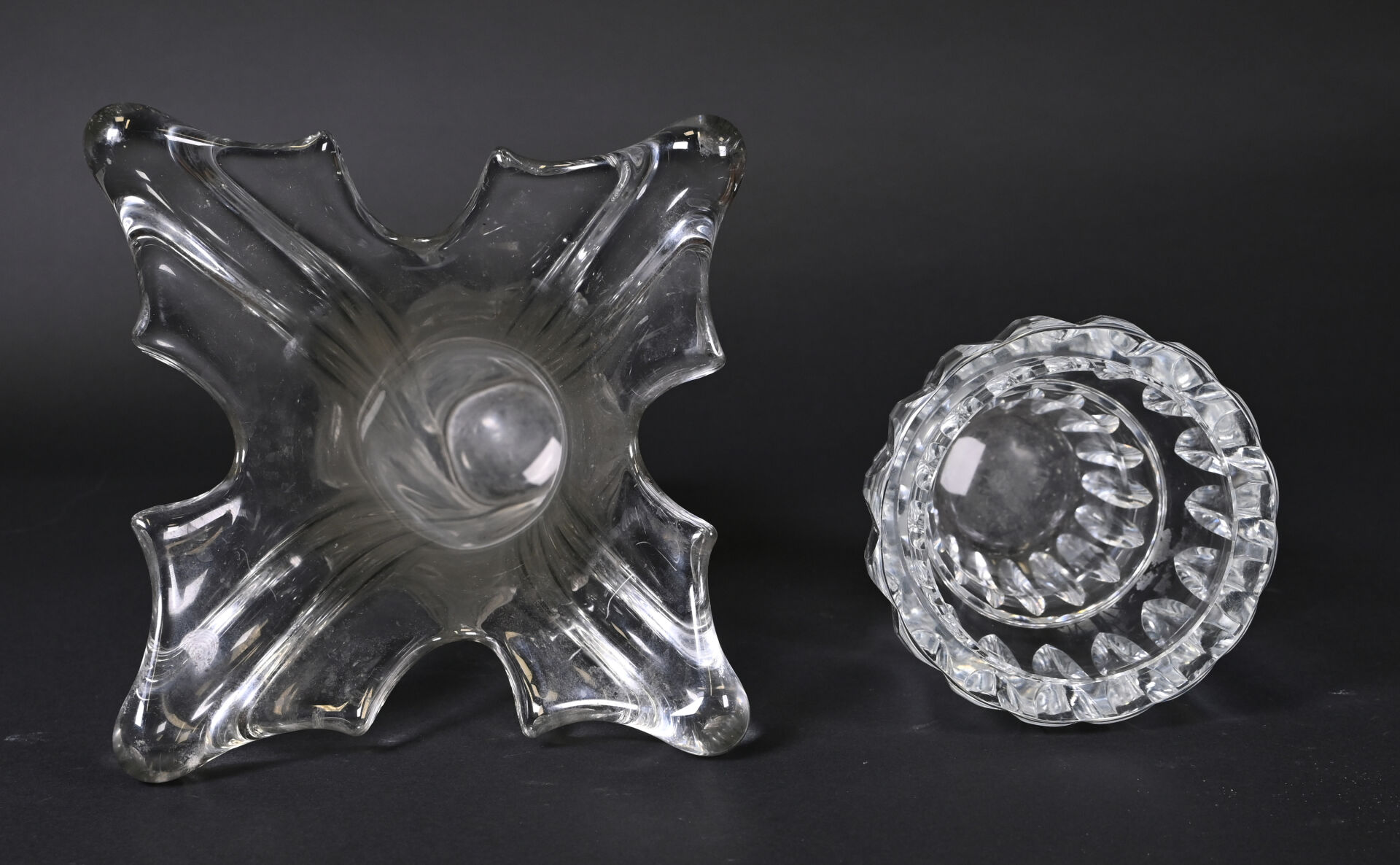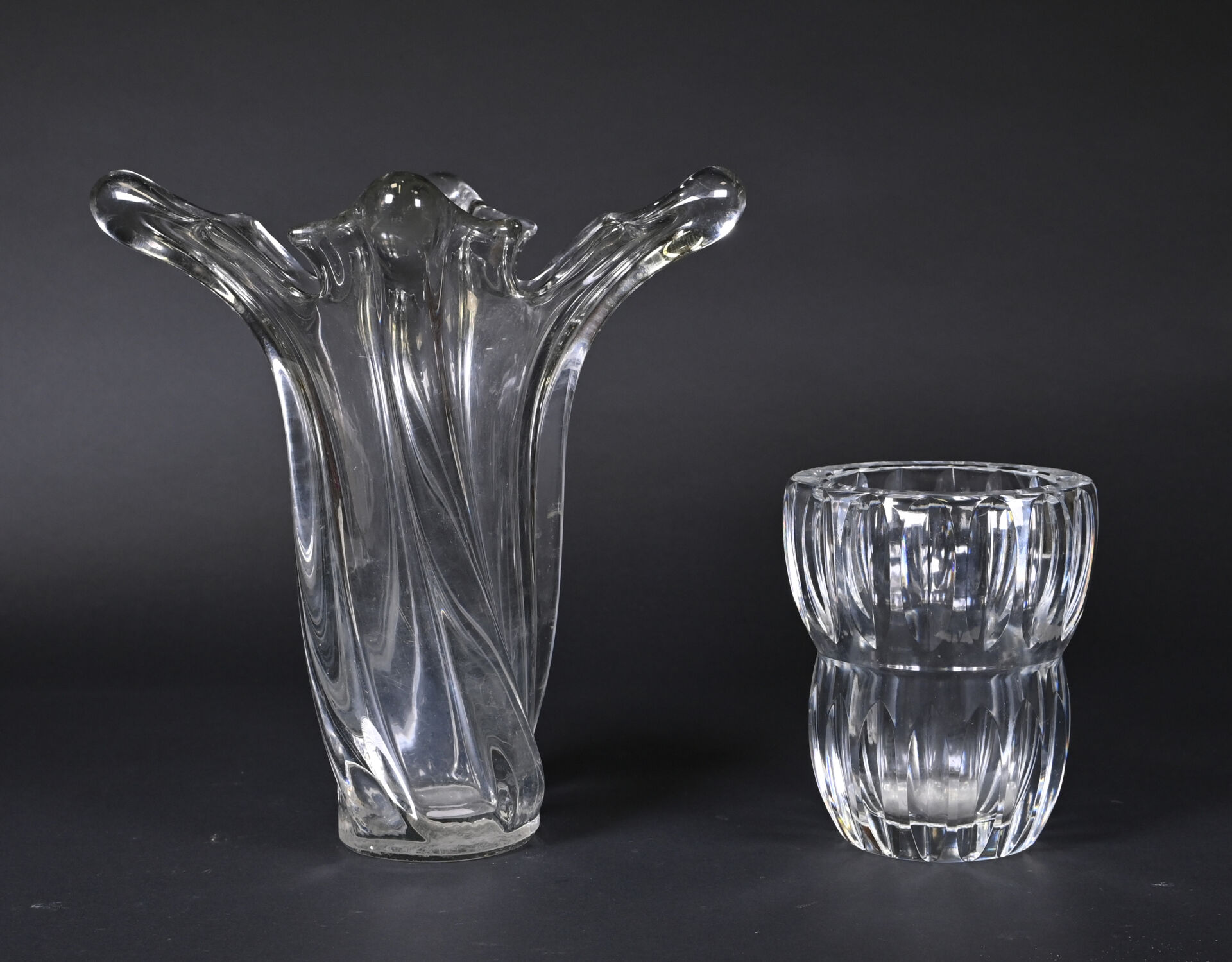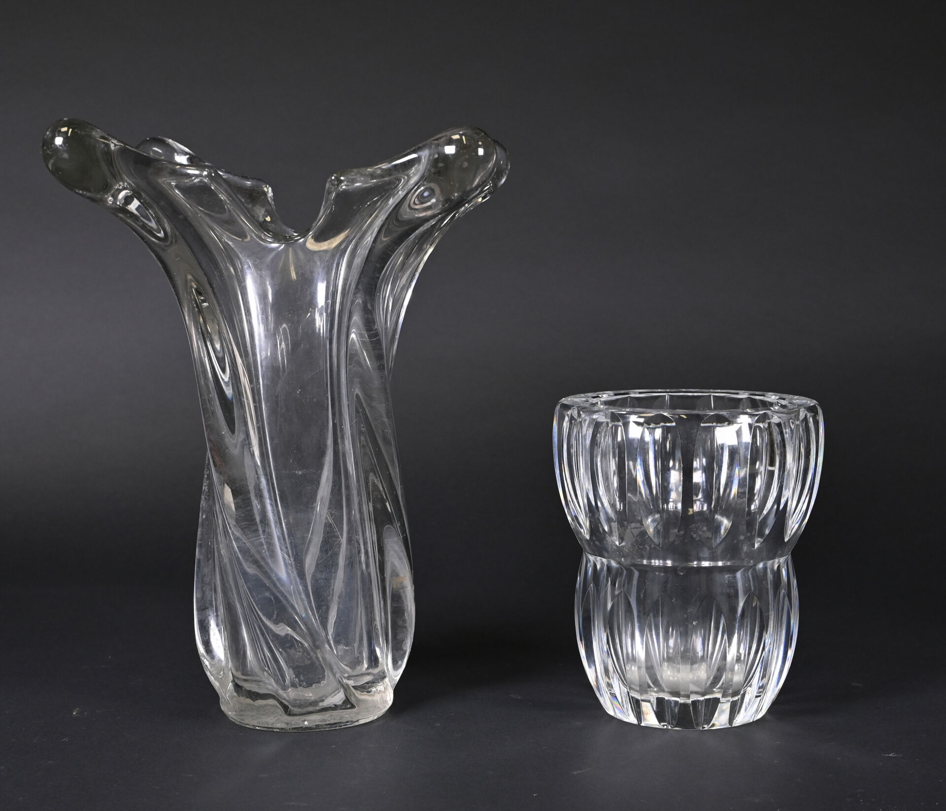 BACCARAT. Vase double bulbe en cristal taillé. Marqué. Haut. : 16,5 cm. On joint un autre vase en cristal moulé, vers 1960. Haut. 31 cm.