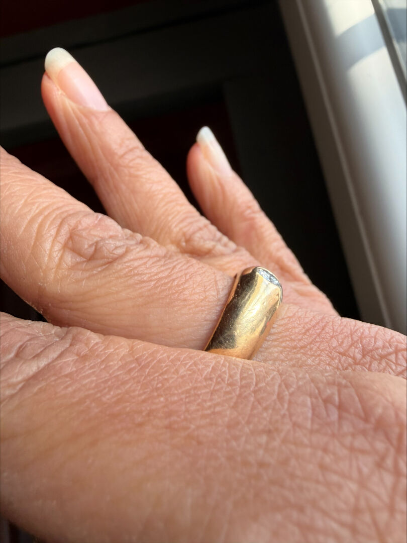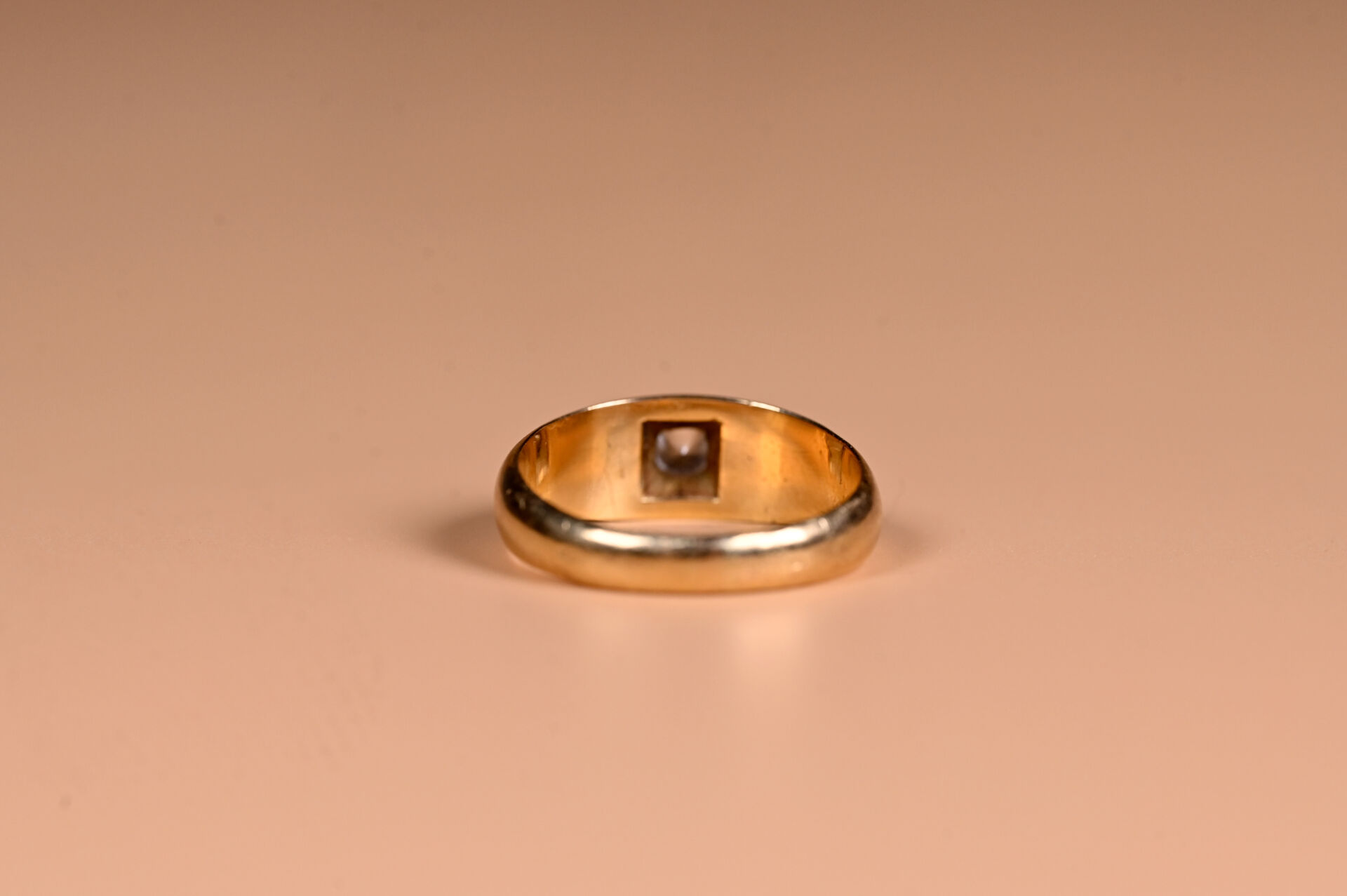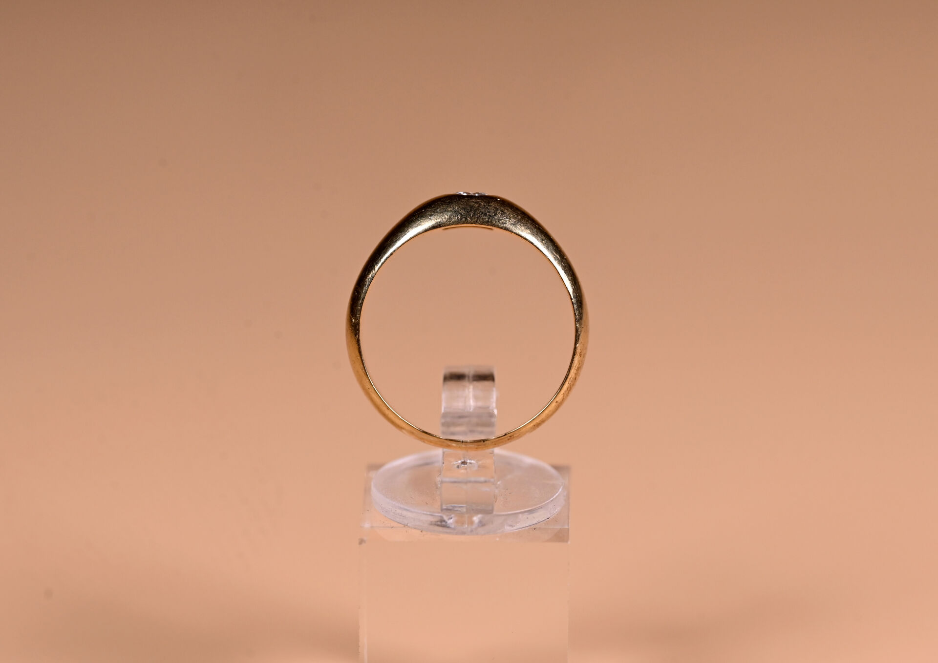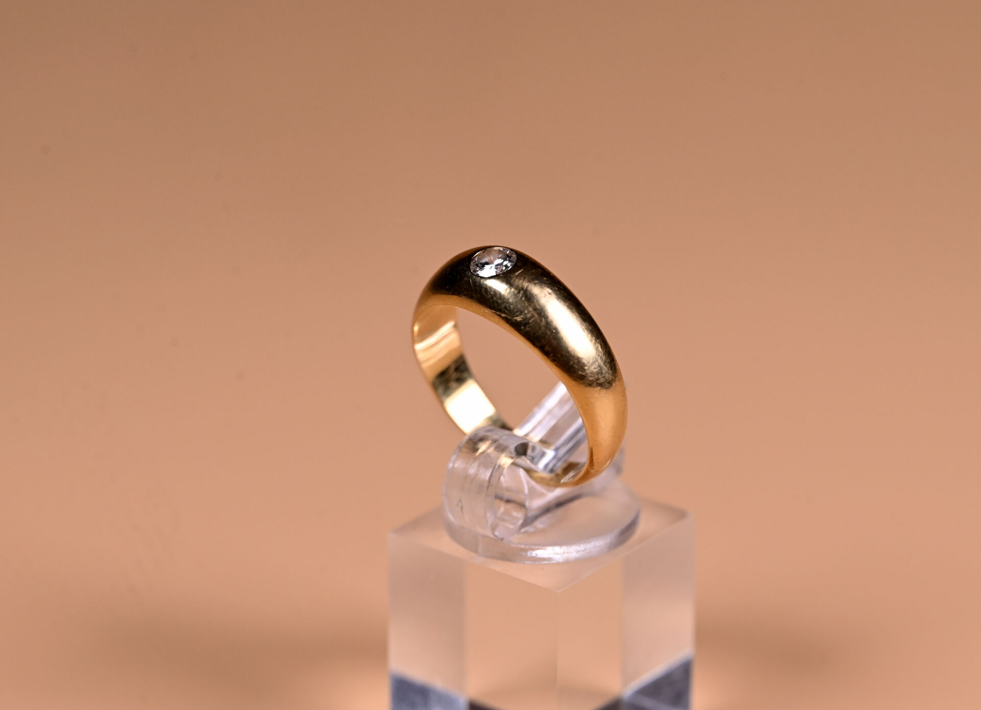 Bague dite « jonc anglais » en or jaune 18K 750/1000e et diamant taille moderne d’environ 0,20 ct. Qualité estimée : IJ-VS2. TDD 61. Poids brut. : 7,3 g.