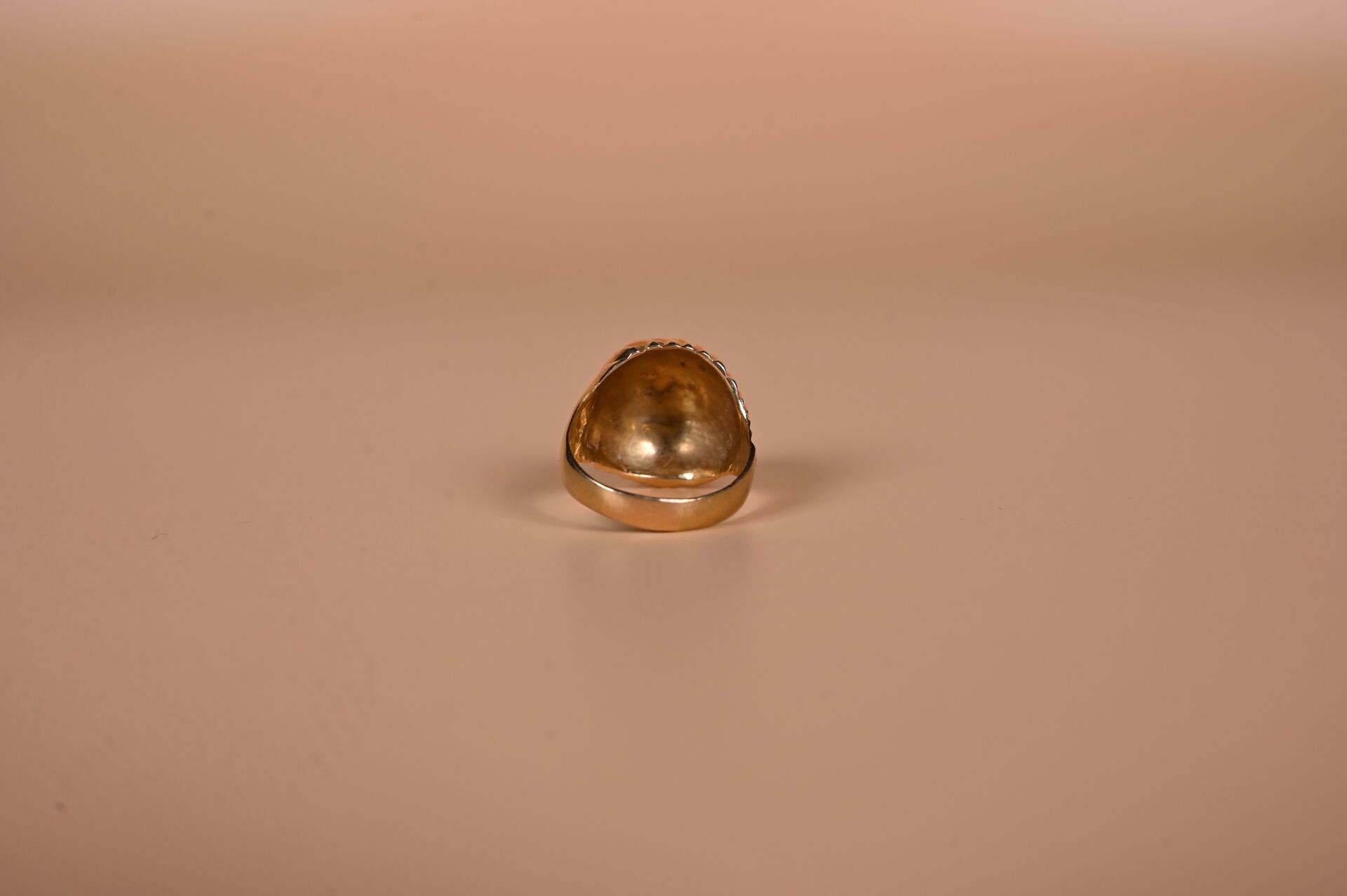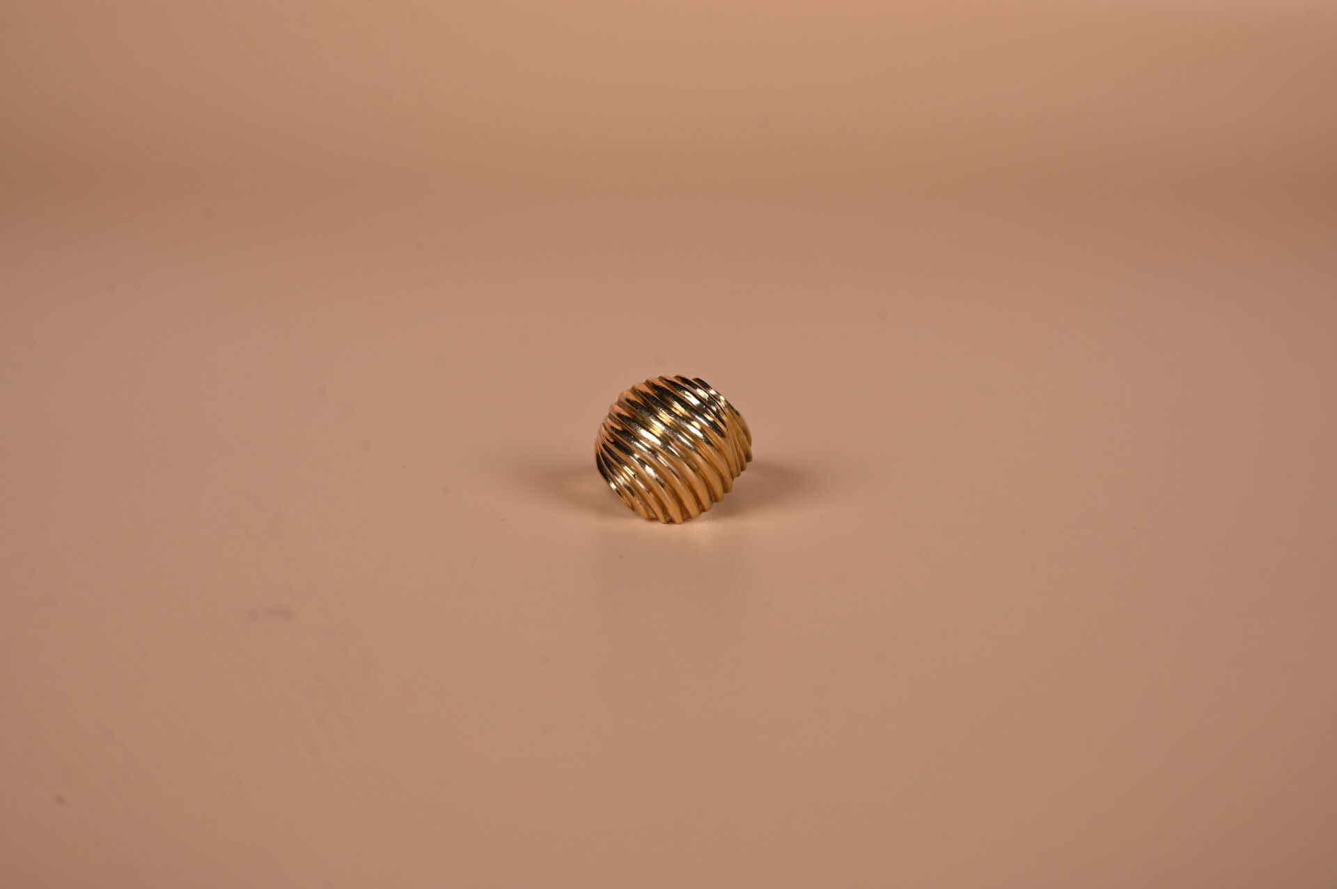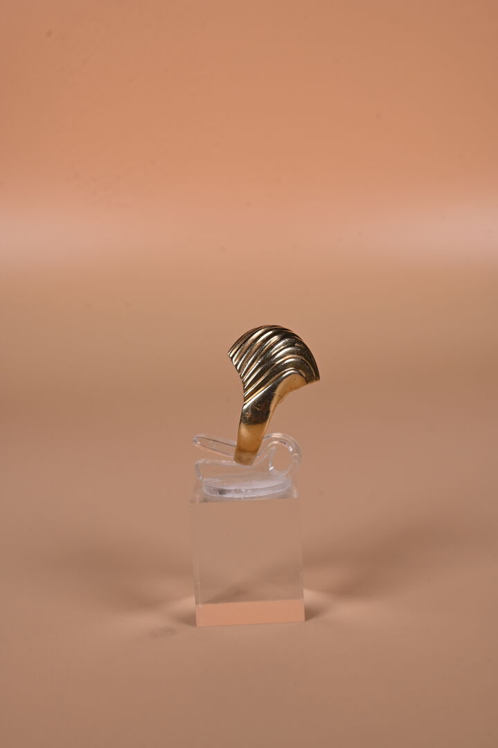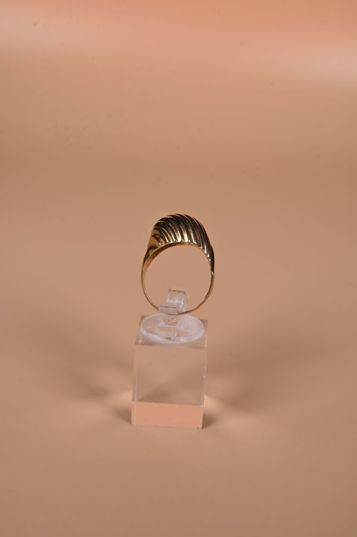 Bague dôme en or jaune 18K 750/1000e à godrons (anneau déformé, usures). TDD. : 58 Poids. : 10,54 g.