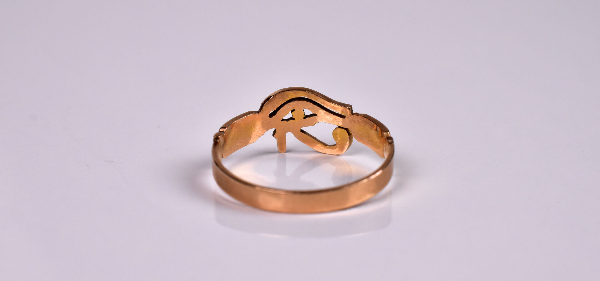 Bague égyptienne en or jaune 18K 750/1000e. TDD. : 54. Poids. : 1,8 g.