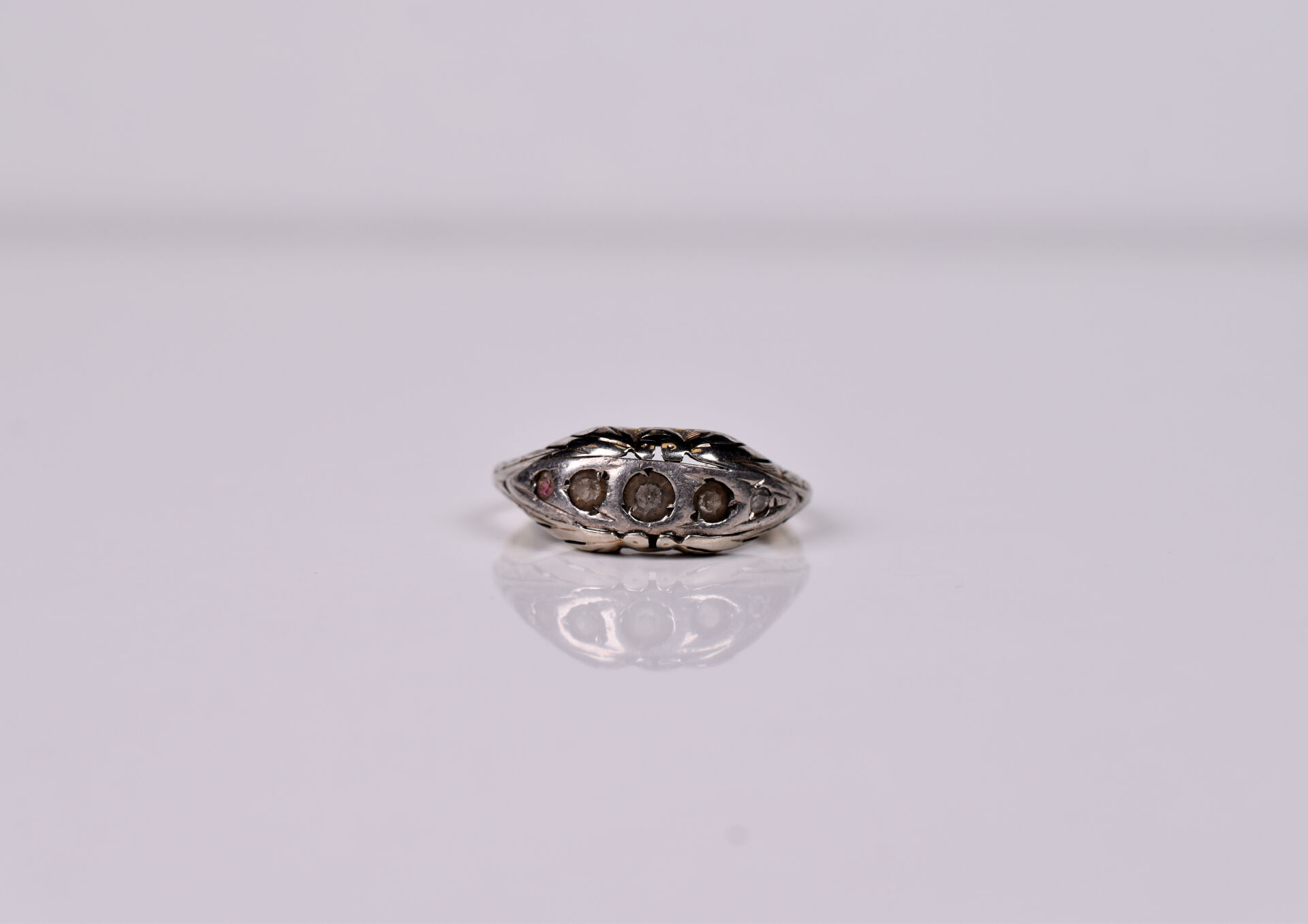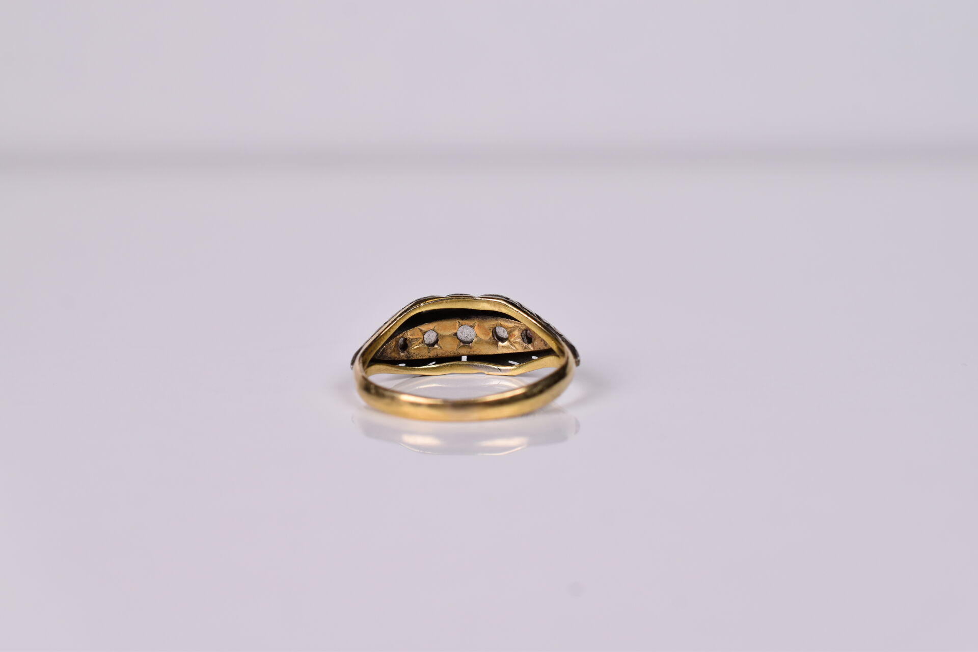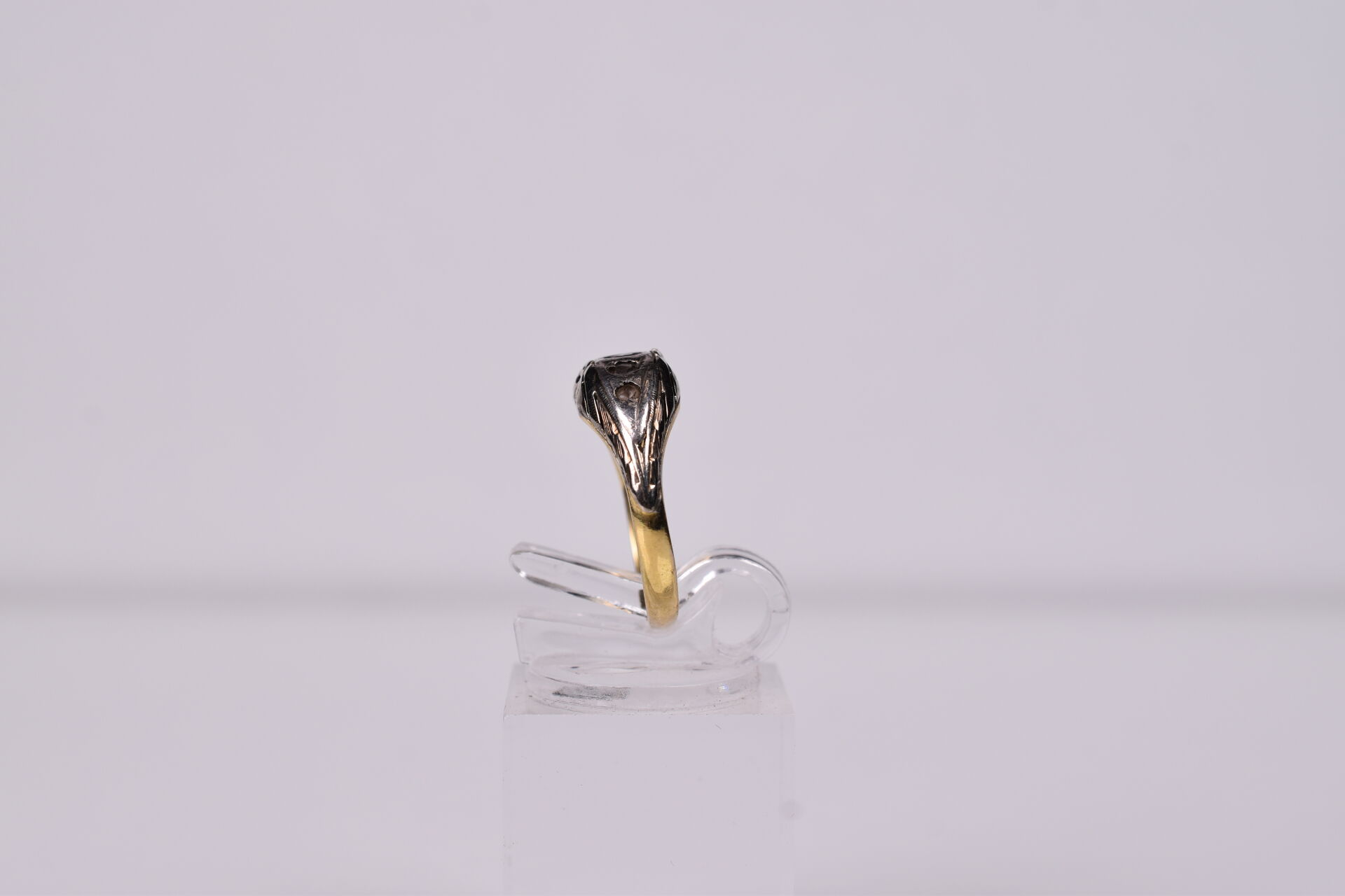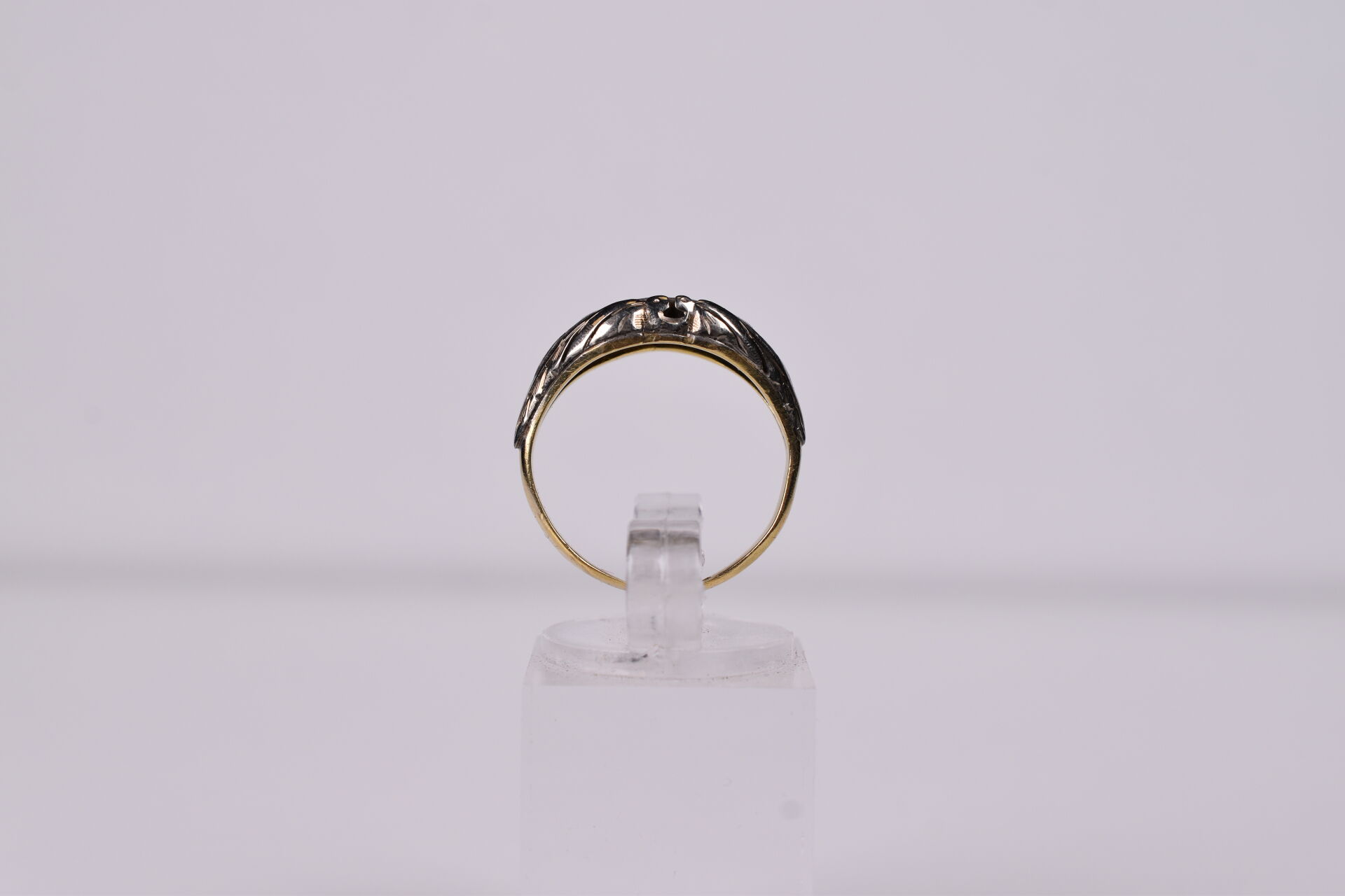 Bague en deux tons d’or 18K 750/1000e et pierres blanches. TDD 53. Poids brut. : 3,3 g.