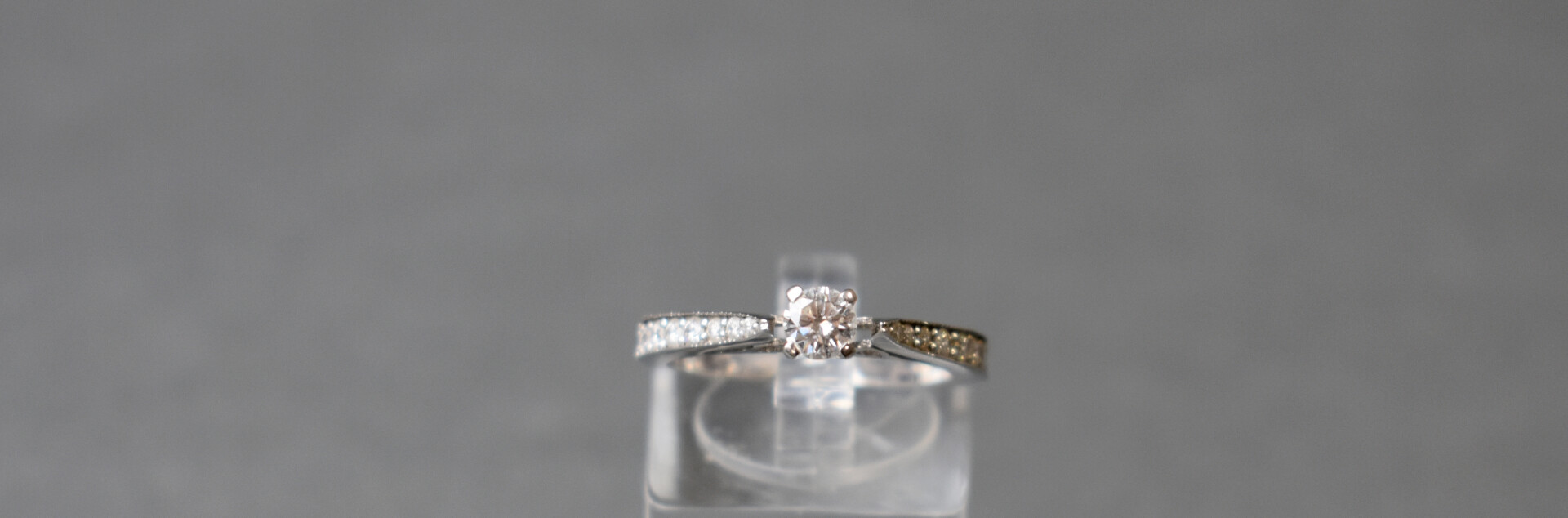 Bague en or gris 18K 750/1000e ornée en serti griffe d’un diamant de taille brillant d’environ 0,22 carat épaulé de part et d’autre de petits diamants de taille brillant. TDD : 56. Poids brut : 3,25 g.