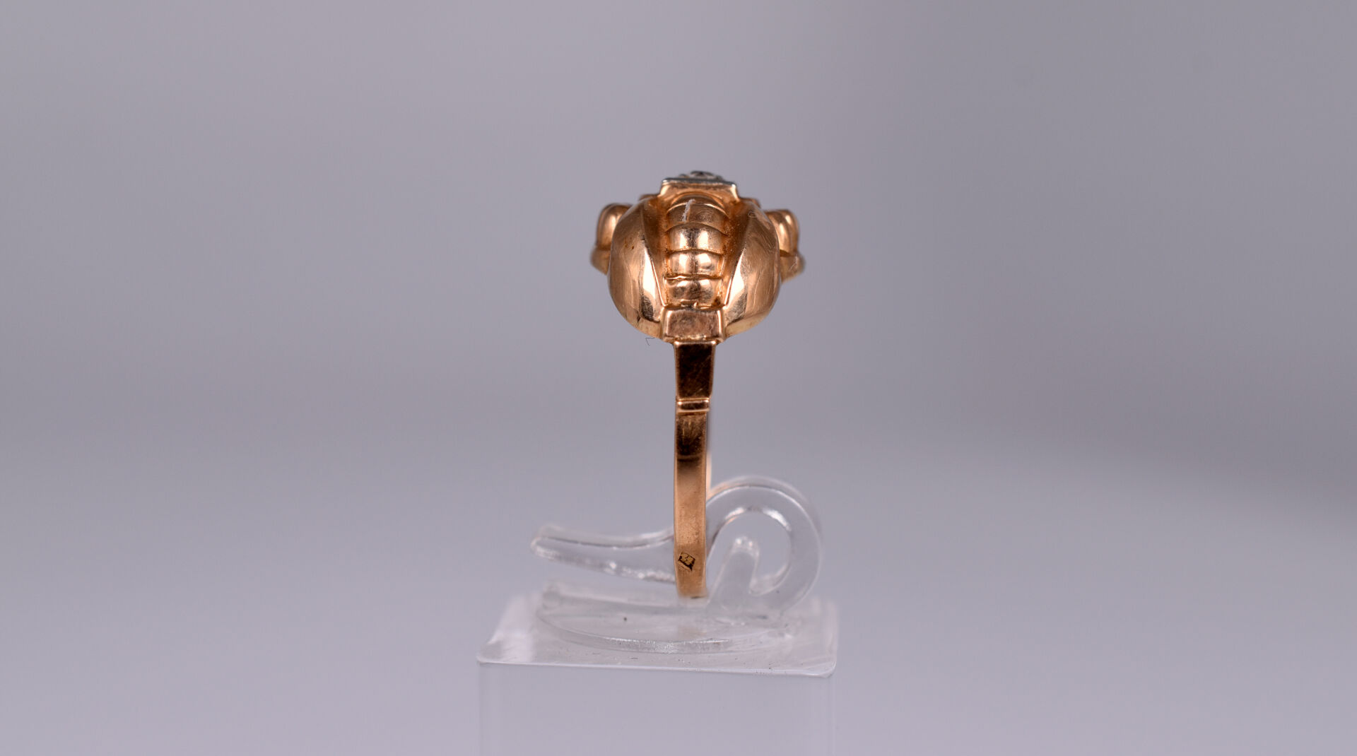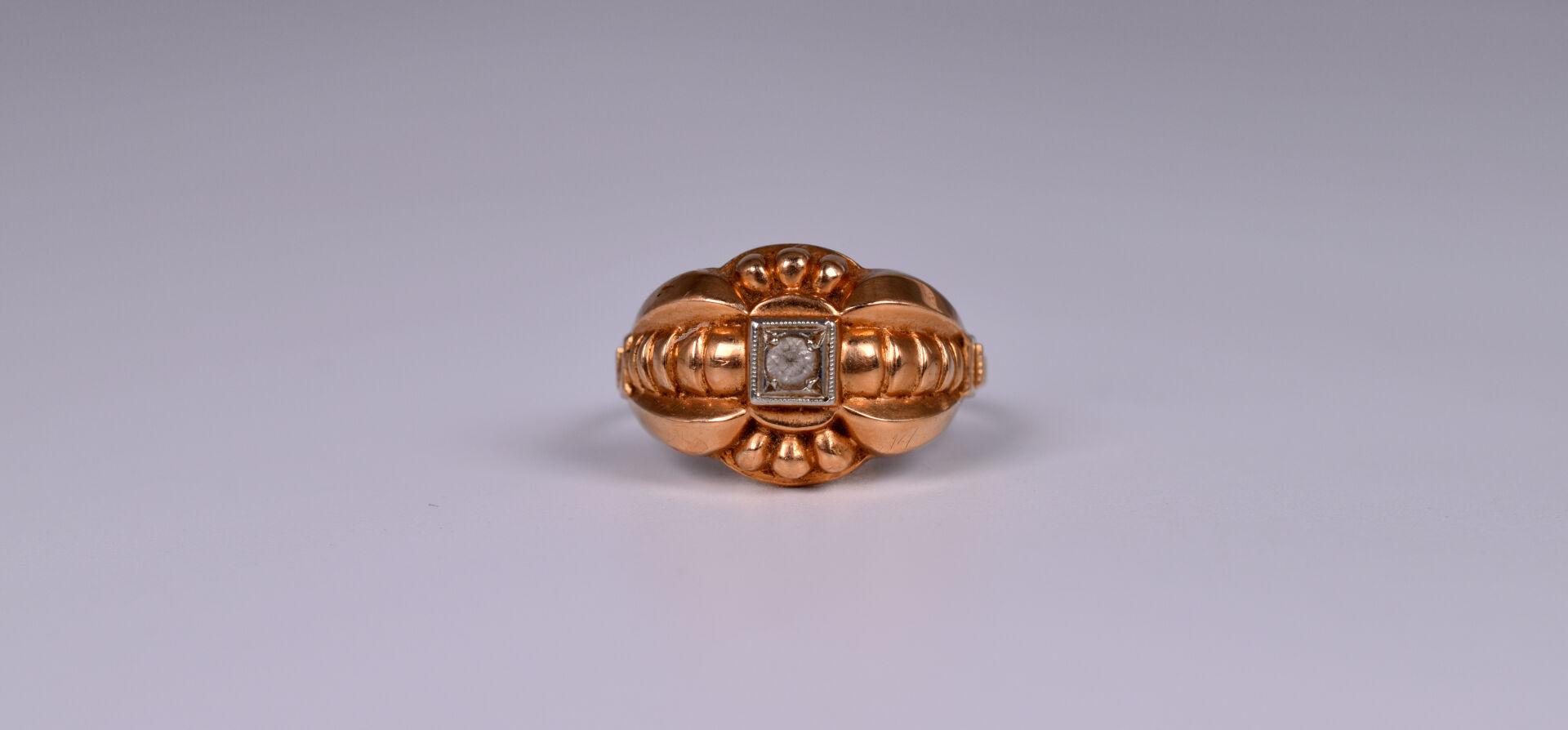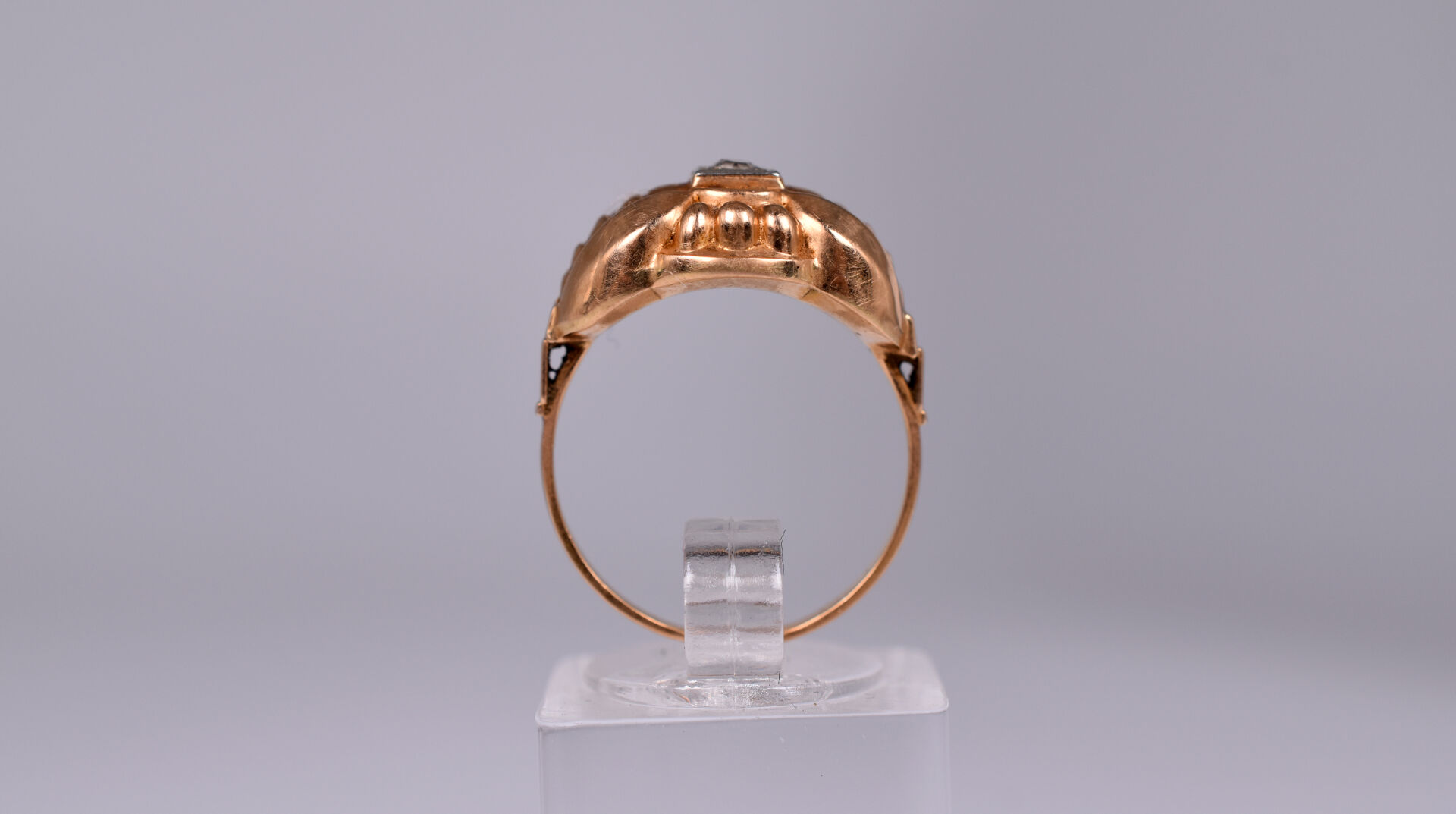 Bague en or jaune 18K 750/10000e et pierre blanche. TDD 56. Poids brut : 2,02g.