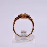 Bague en or jaune 18K 750/1000e à décor d’une intaille sur pierre verte (fond fermé). TDD. : 50. Poids brut. : 4,1 g.