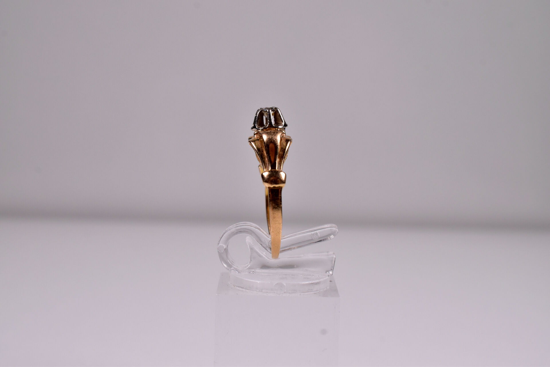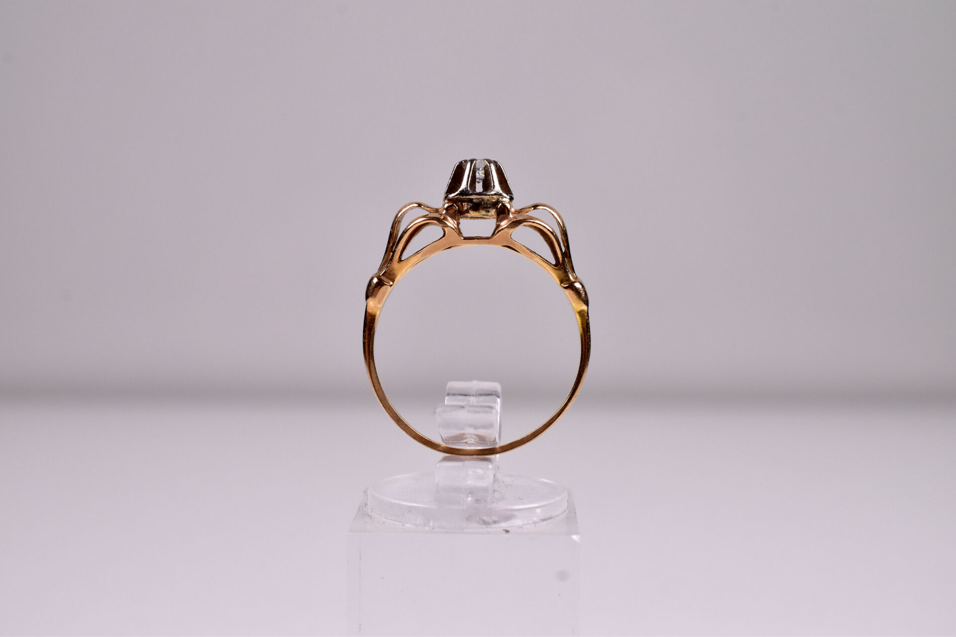 Bague en or jaune 18K 750/1000e et diamant taille moderne, de 0,08 carat. TDD 58. Poids brut. : 3,8 g.