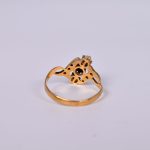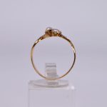 Bague en or jaune et gris 18K 750/1000e orné en son centre d’un éclat de diamant, de part et d’autre deux petites perles. Début du XXe siècle. TDD. : 57. Poids brut. : 2,48 g.