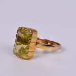 Bague et pendentif en or 14K 585/1000e et verres verts. TDD. : 55. Poids brut total. : 9,3 g.
