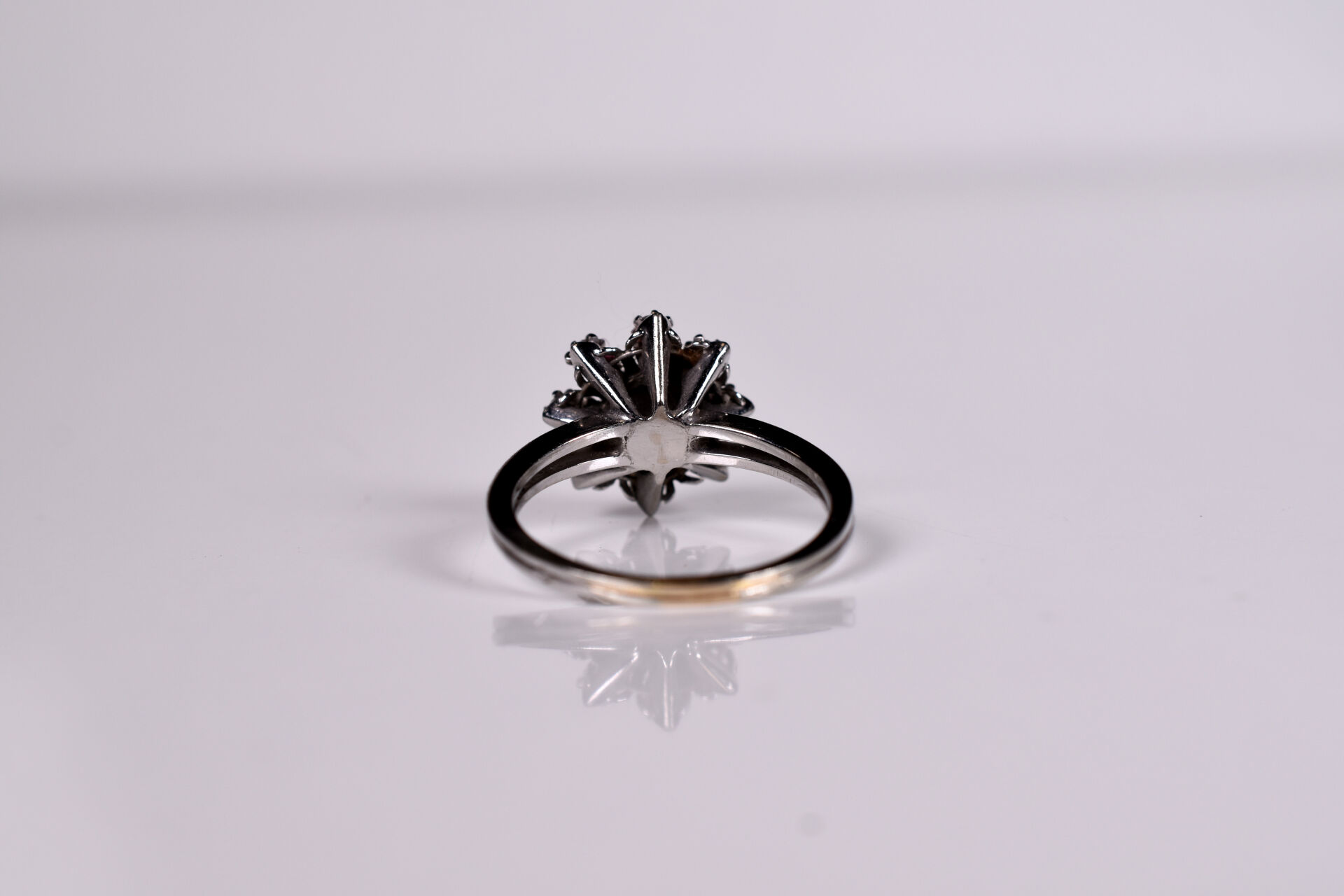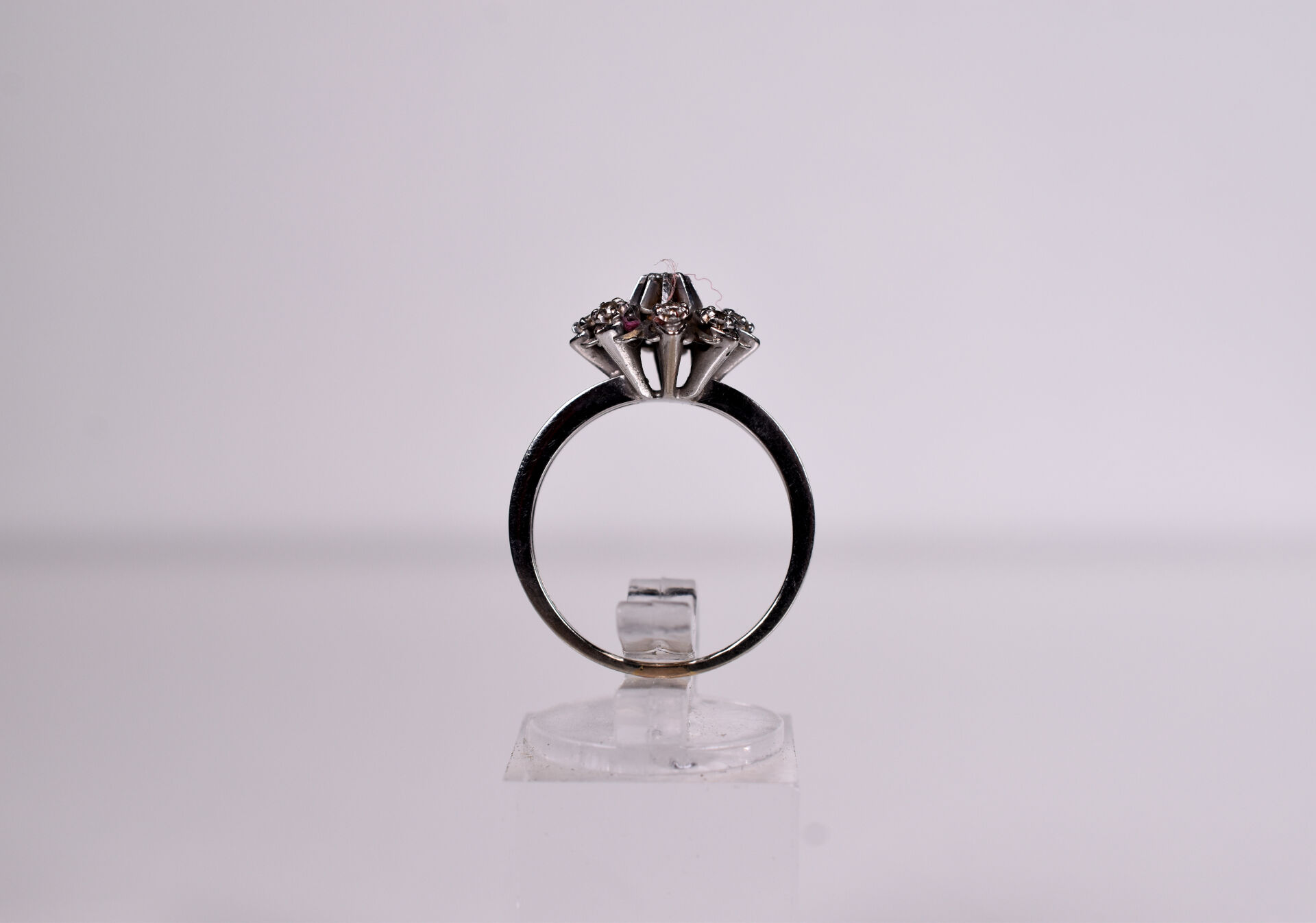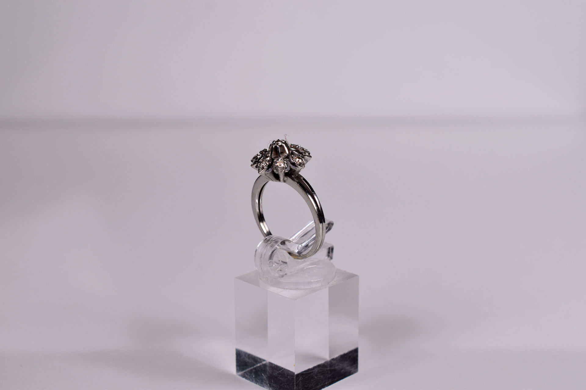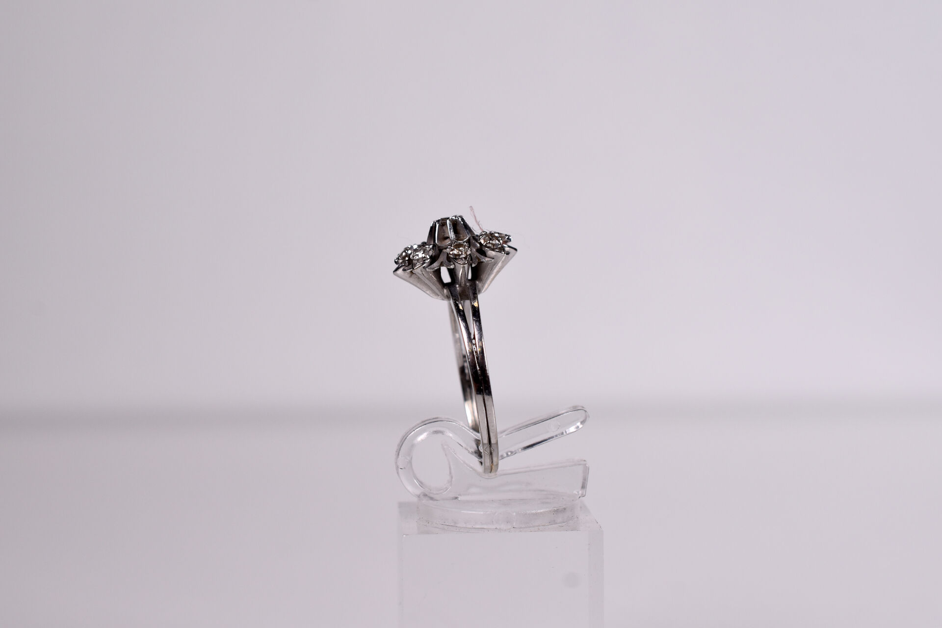 Bague fleur en or gris 18K 750/1000e et petits diamants. TDD. 57. Poids brut. : 5 g.