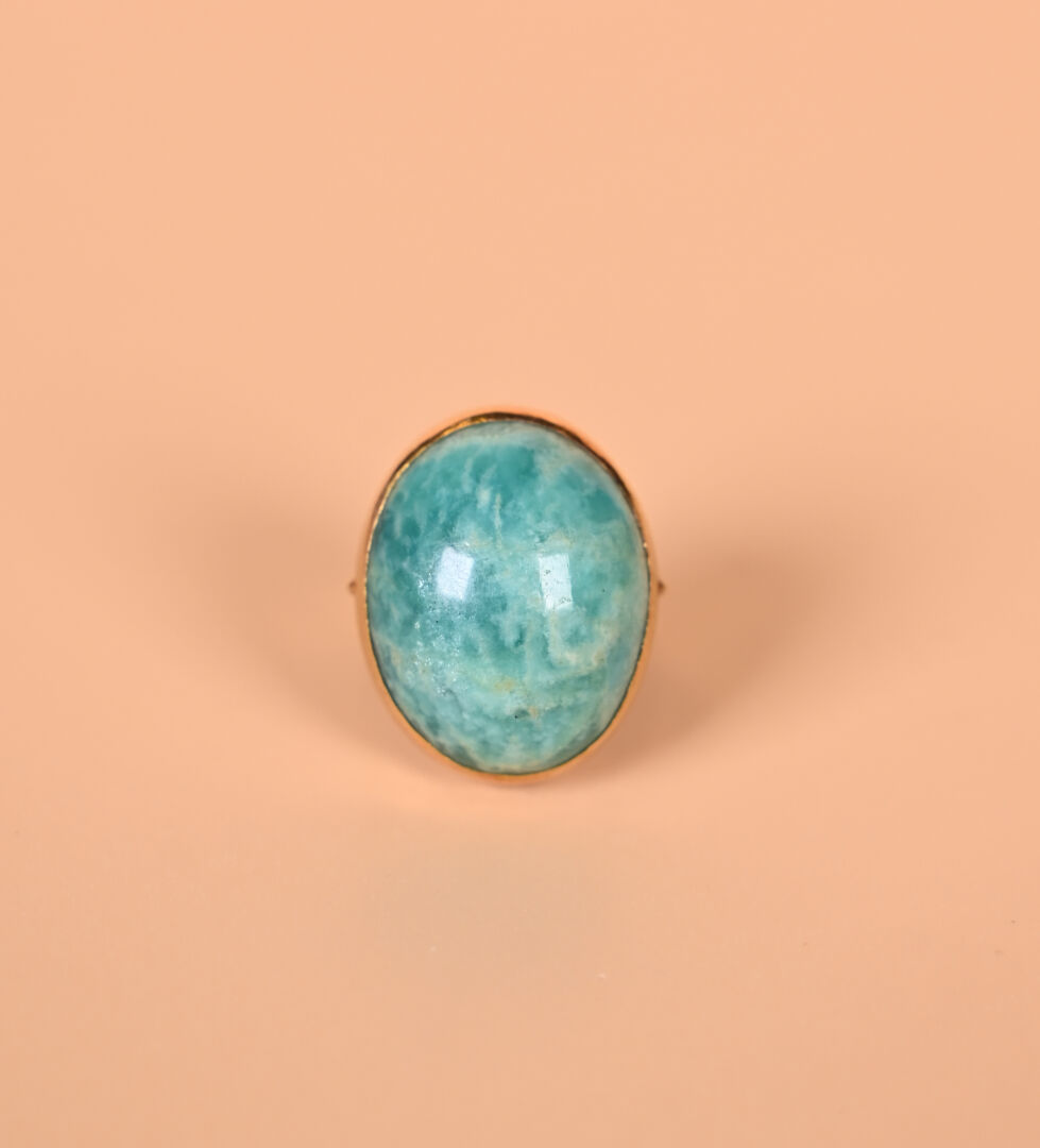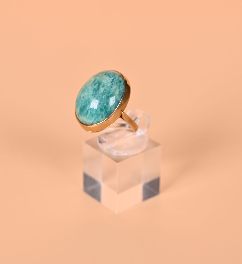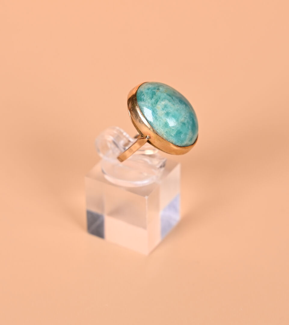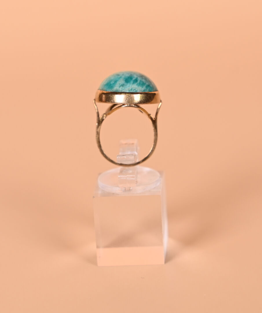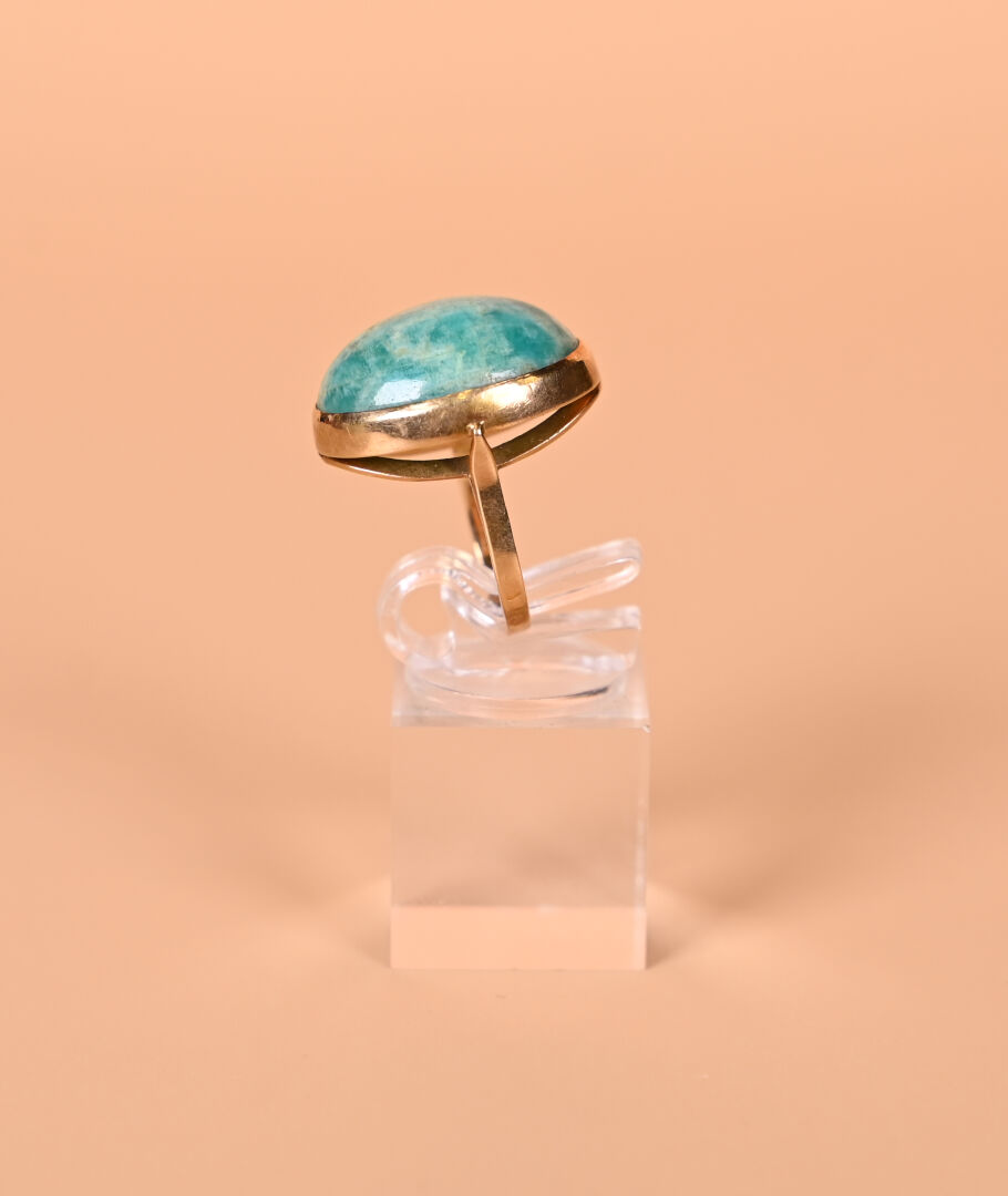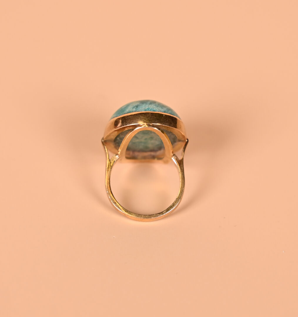 Bague or et cabochon d’amazonite. Poids brut : 9,5 g.