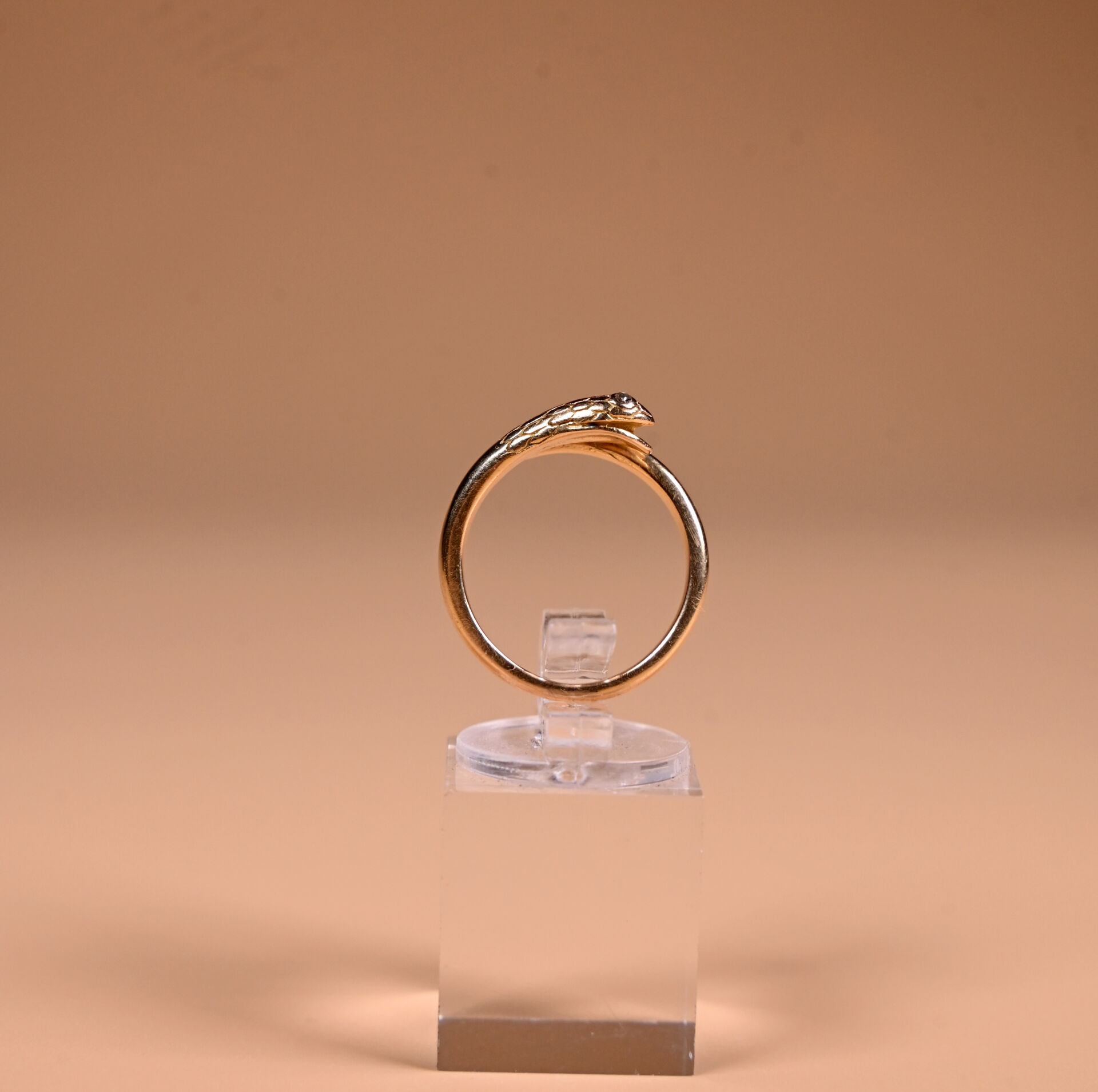 Bague serpent en or jaune 18K 750/1000e, les yeux en petits diamants. TDD 5. Poids brut. : 5,3 g.