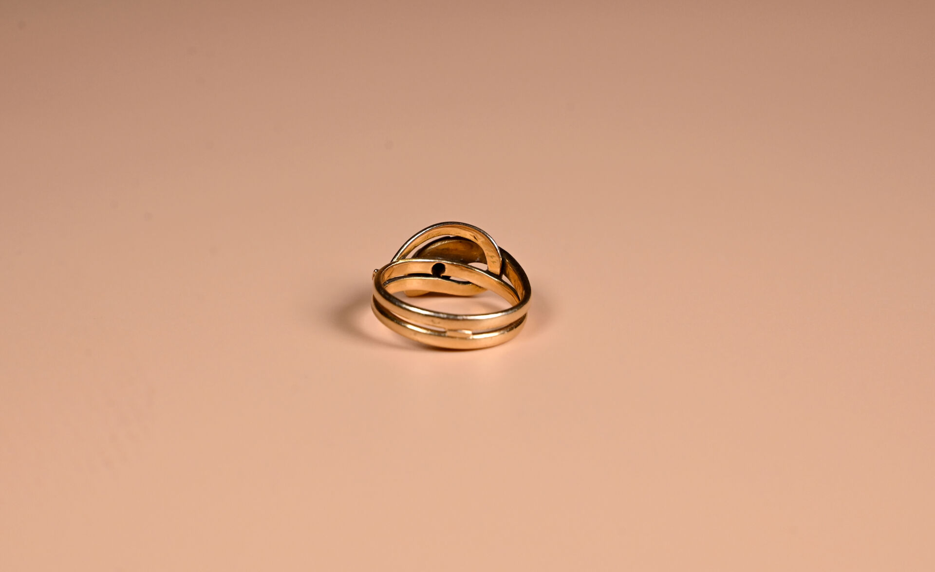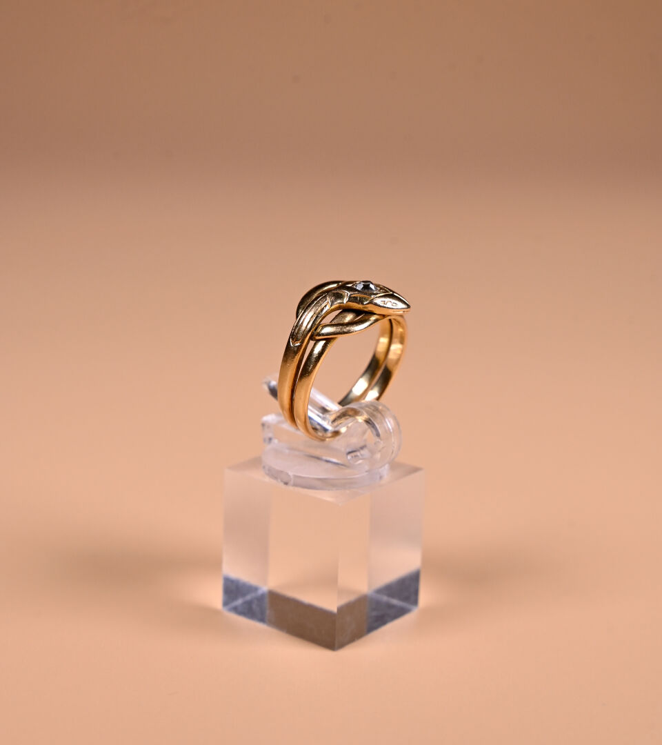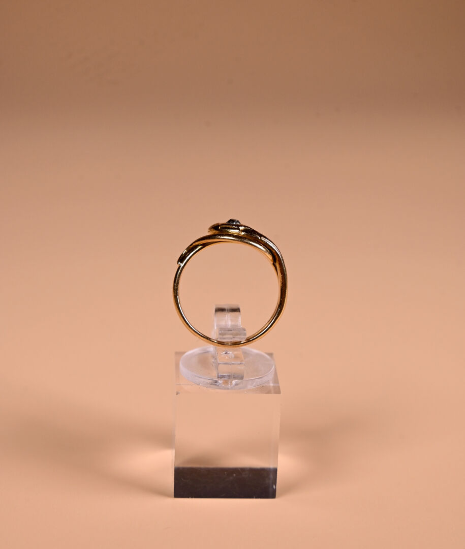Bague serpent en or jaune 18K 750/1000e ornée d’un diamant taille ancienne sur la tête. TDD 58. Poids brut. : 7,1 g.