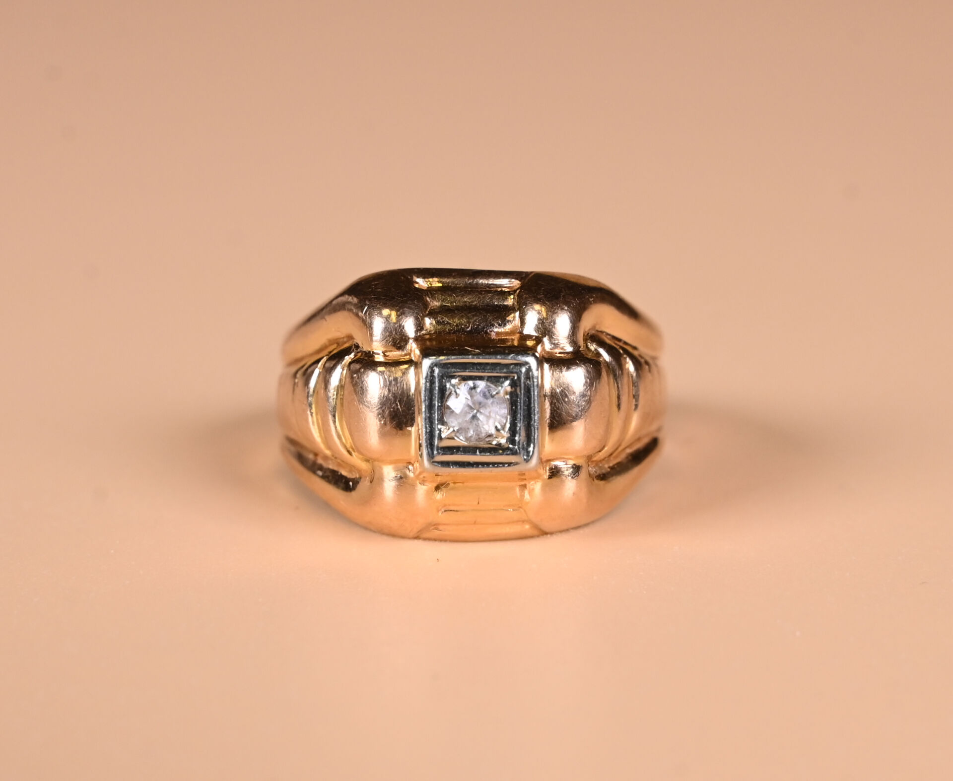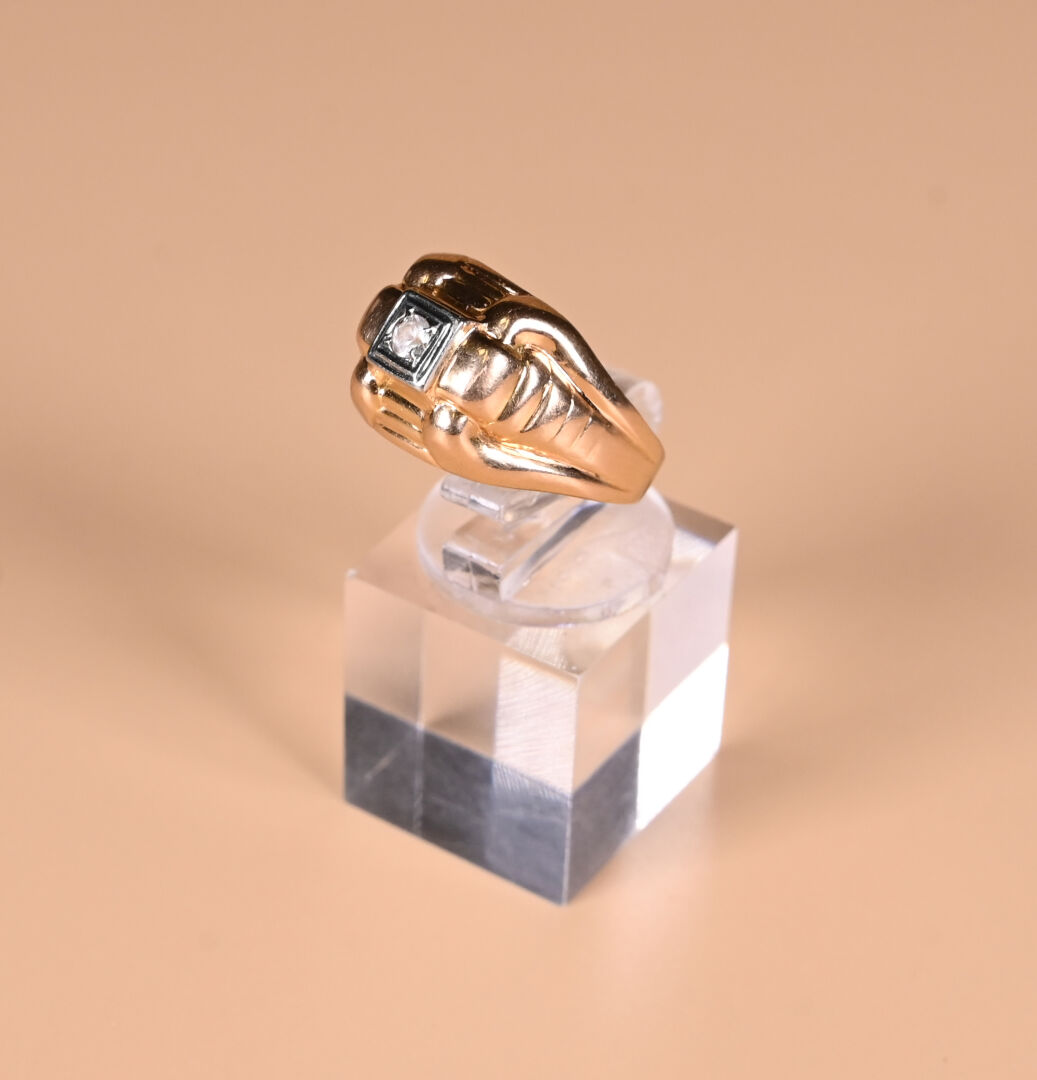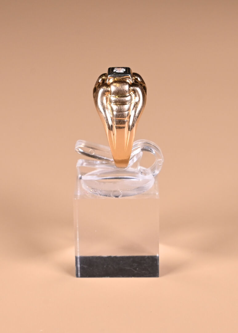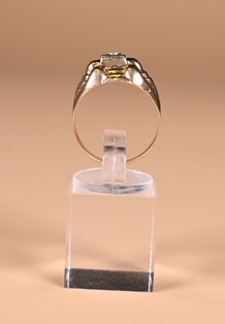 Bague tank en or jaune 18K 750/1000e ornée d’une pierre blanche. TDD : 58. Poids brut. : 2,91 g.