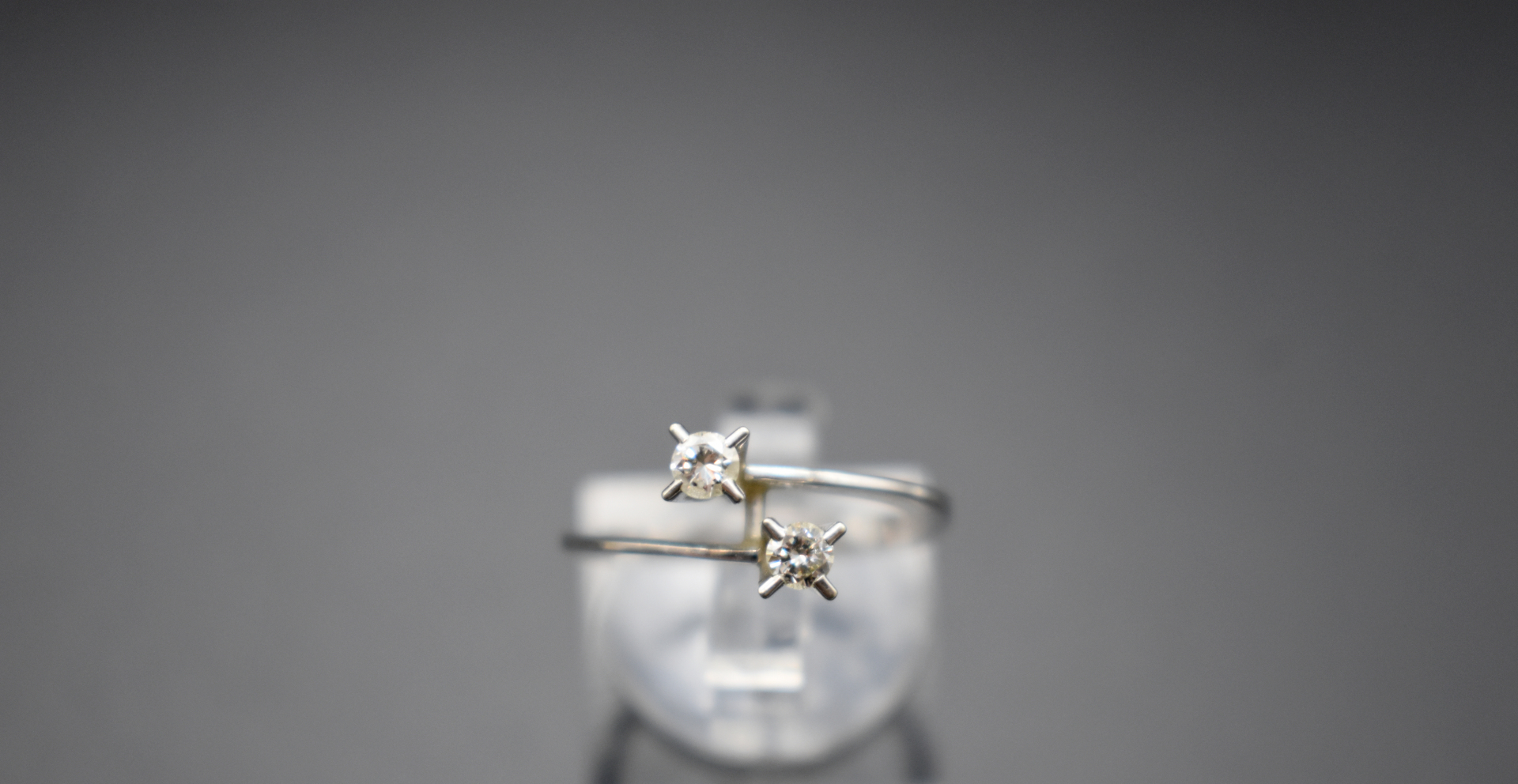 Bague toi et moi en or gris 18K 750/1000e ornée de deux diamants de taille brillant d’environ 0,10 carat chaque. TDD : 52. Poids brut :2,50 g. Réf. : B022000514J