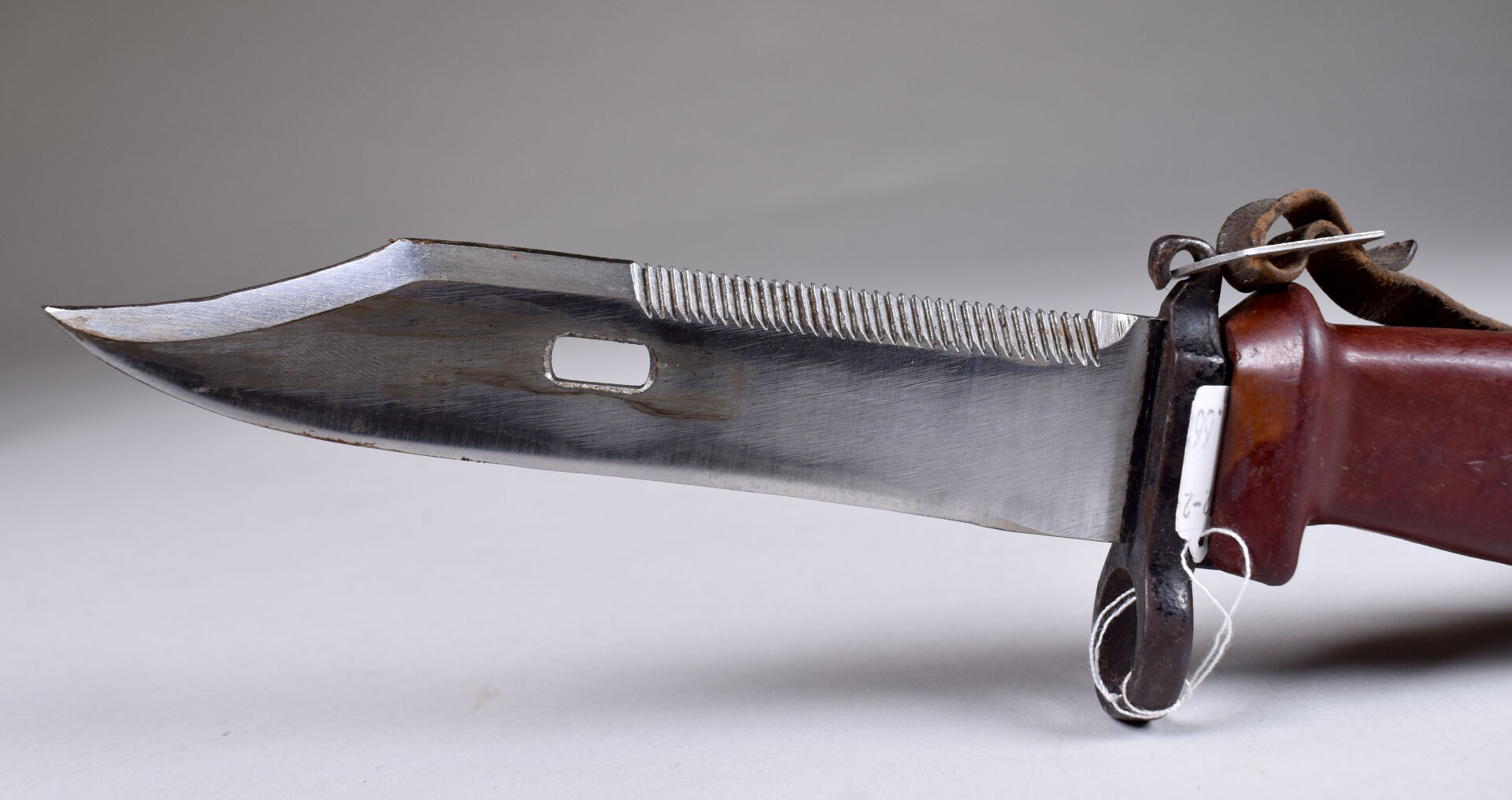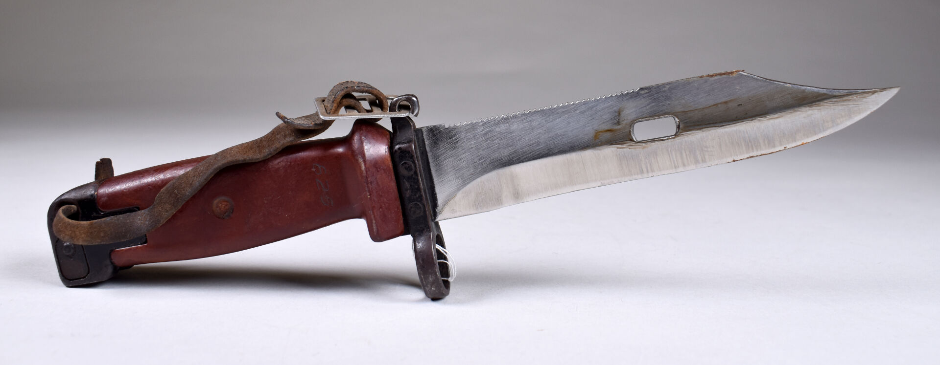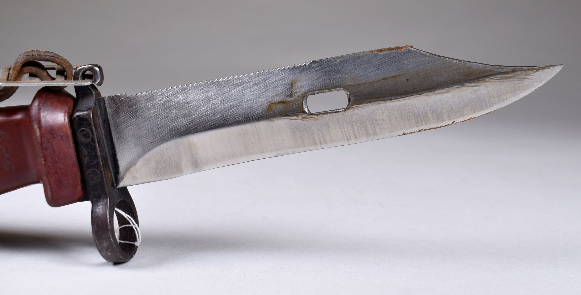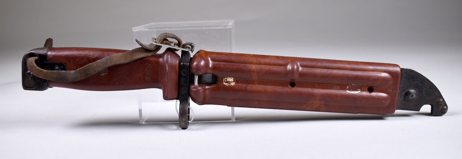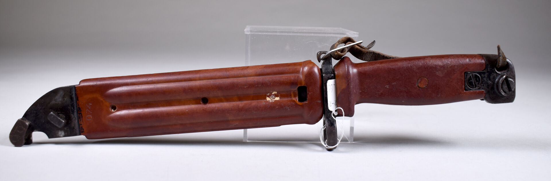 Baïonnette règlementaire soviétique AKM type 2. Fabrication Toula. Avec son fourreau isolé par de la bakélite brune. Etat 1.